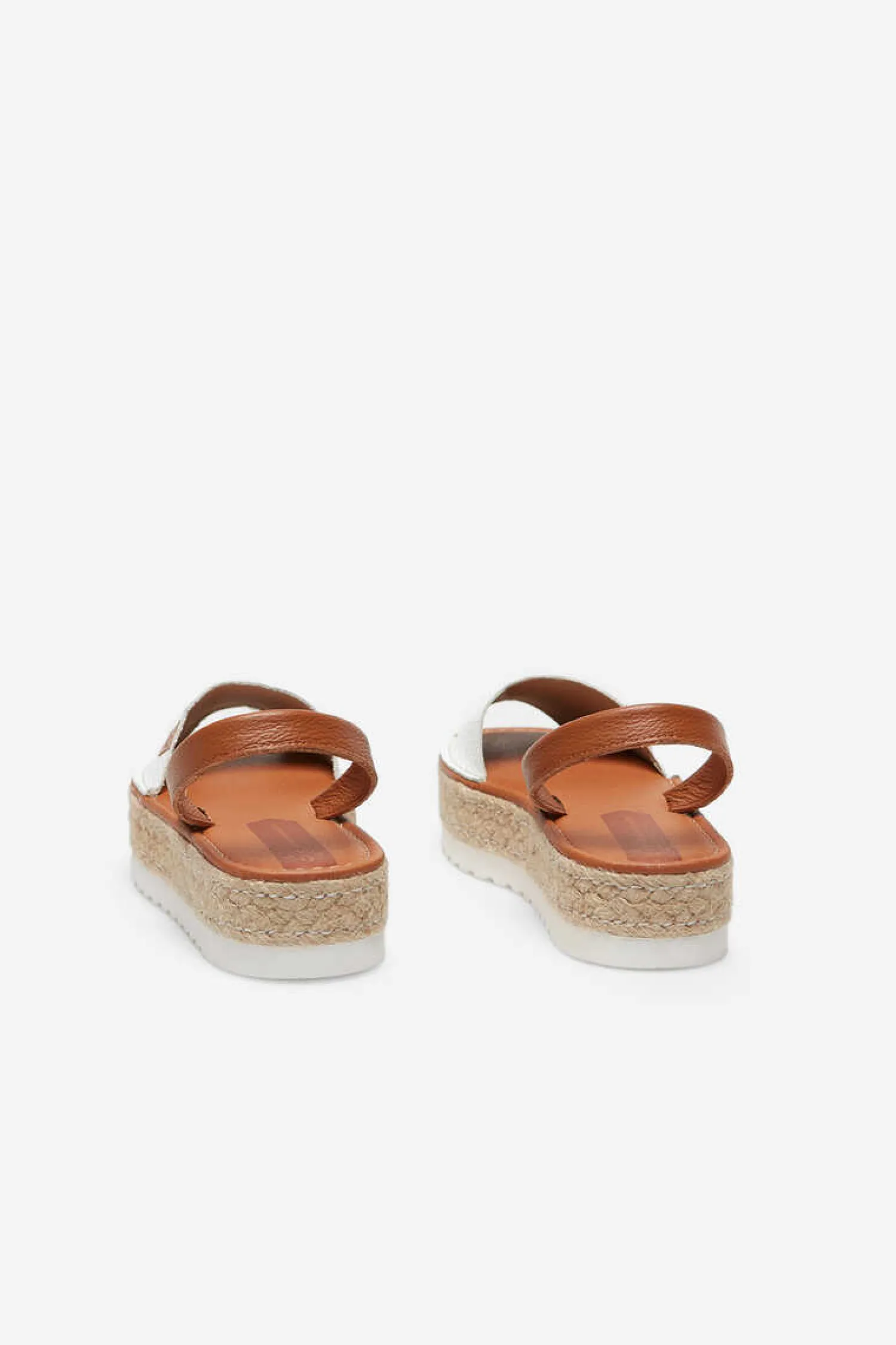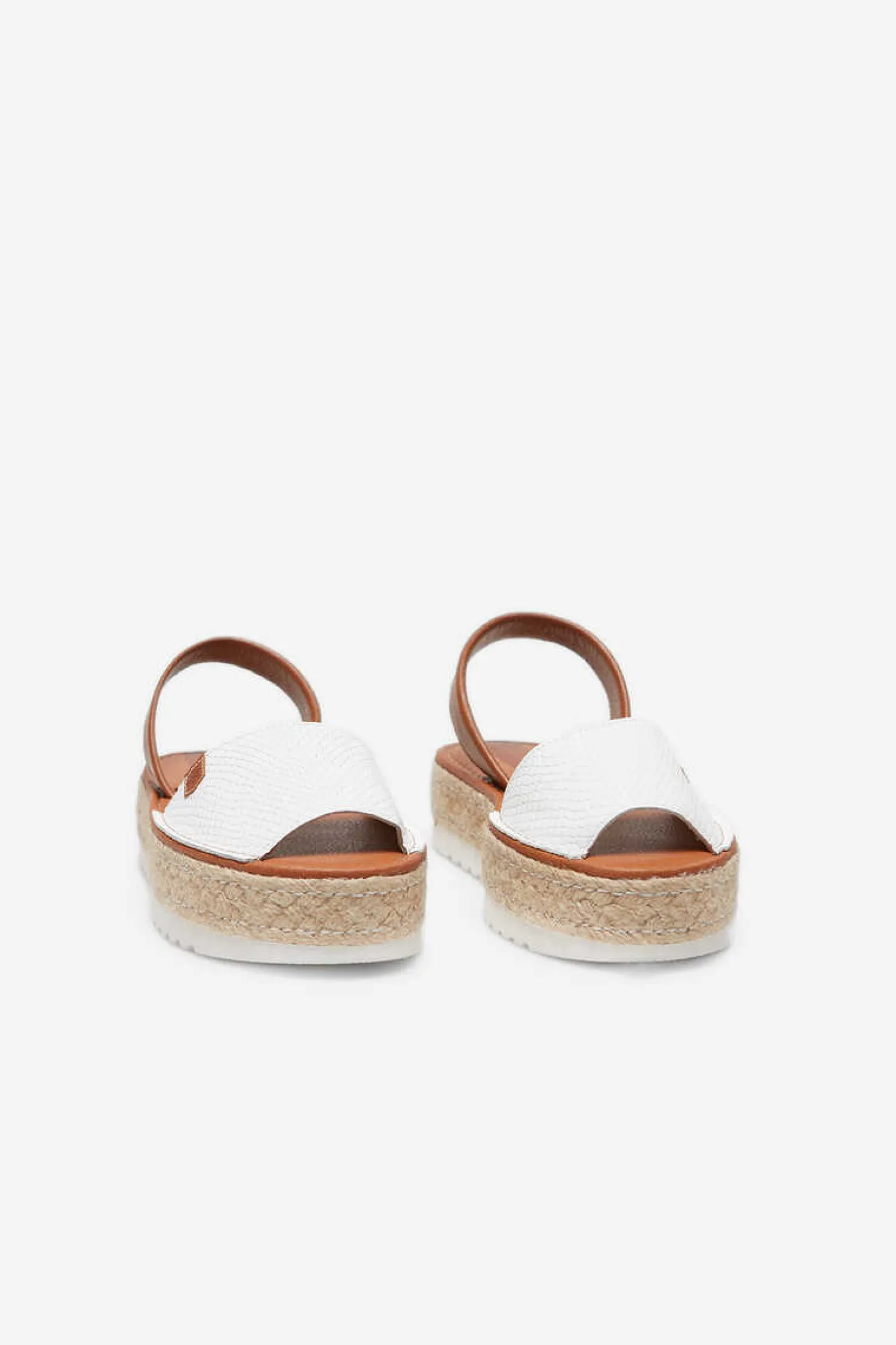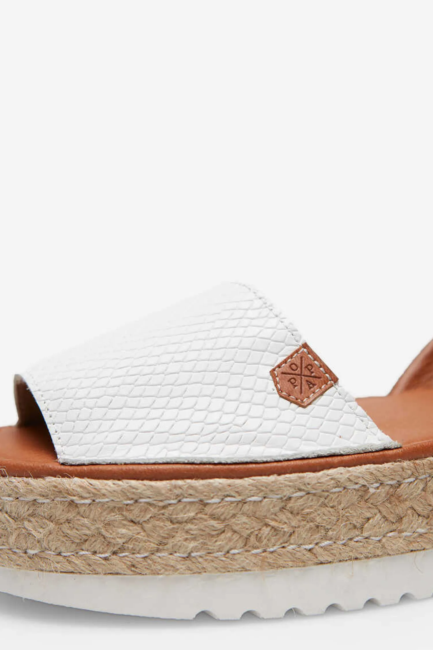 O Modelo Iconico De Popa Volta Por Mais Uma Estacao. Em Cor Branca E Couro E Com A Sua Plataforma Tao Carateristica Que Combina Juta Com Detalhes Brancos.