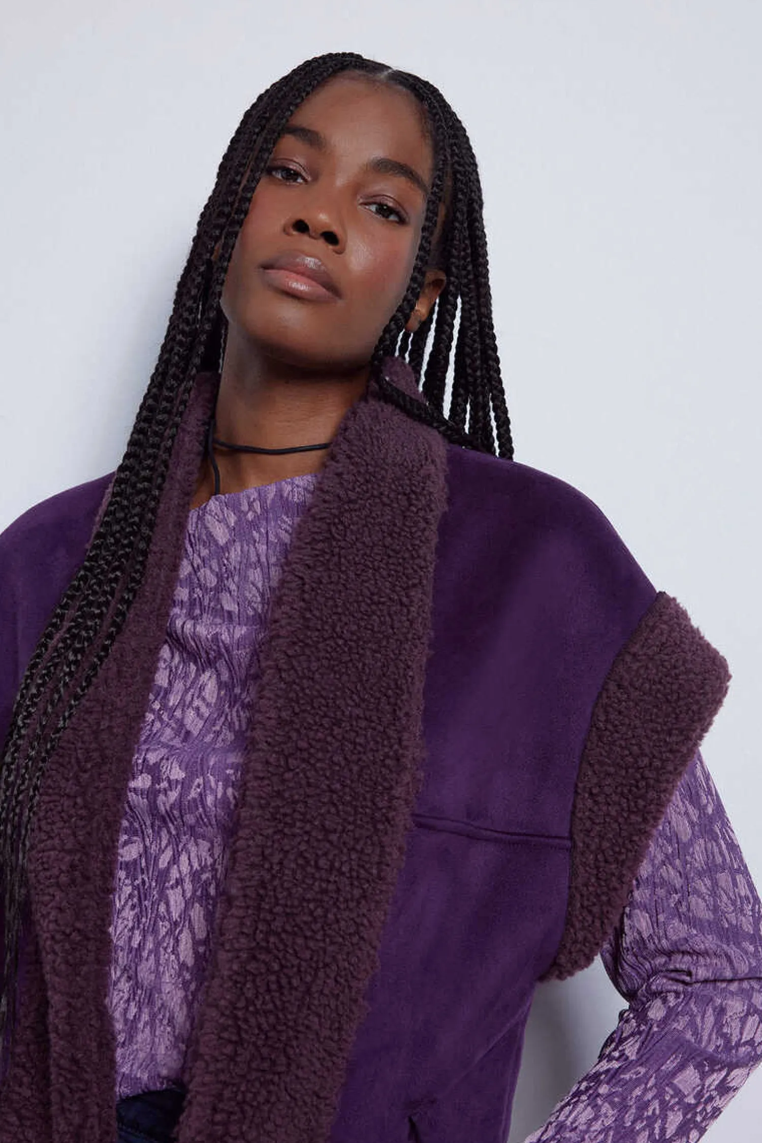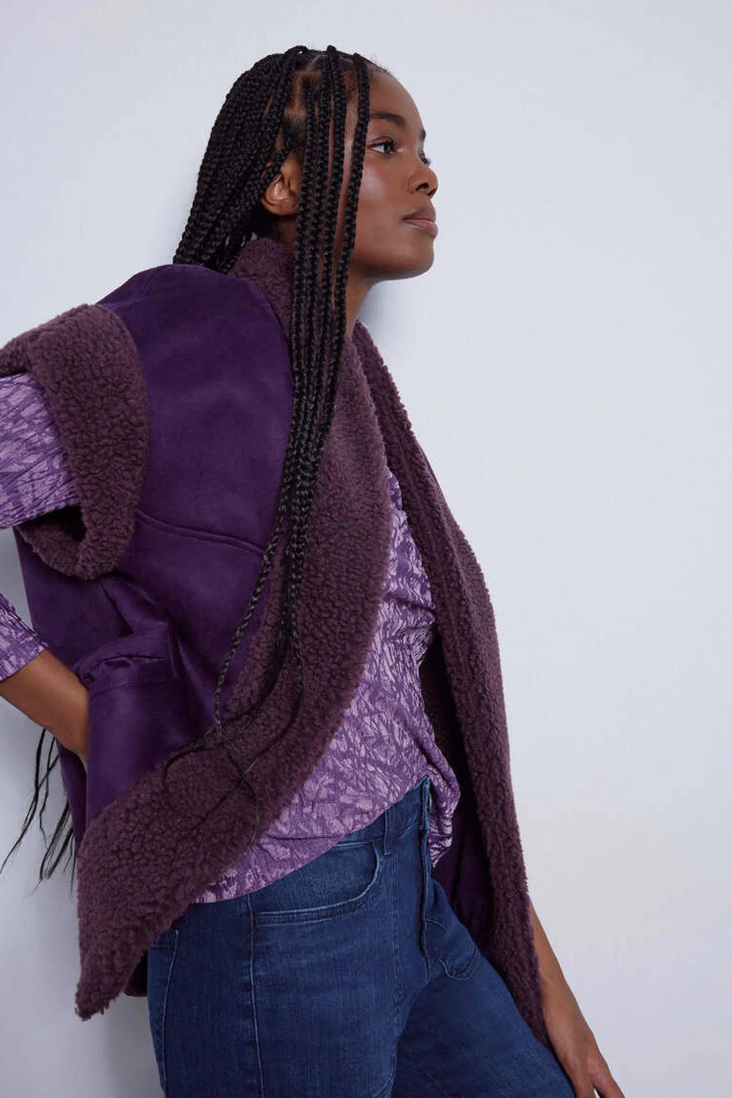 Colete Oversized Em Dupla Face Efeito Pelo. Bolsos Laterais.