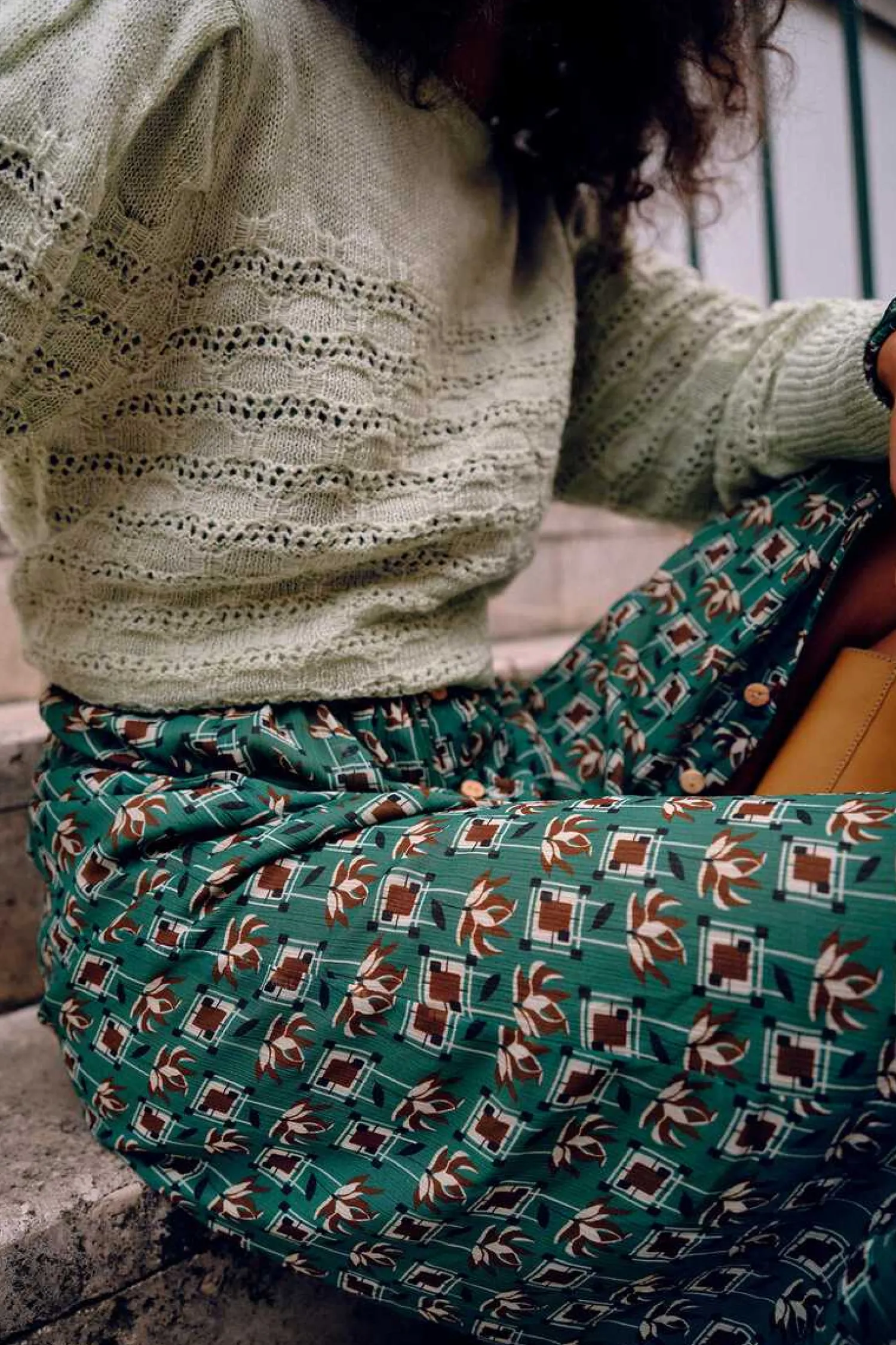 Jersey De Punto Fantasia Calado Con Hilatura Sostenible. Manga Larga Con Pliegues En Copa. Cuello Caja Amplio . Acabados Acanalados.