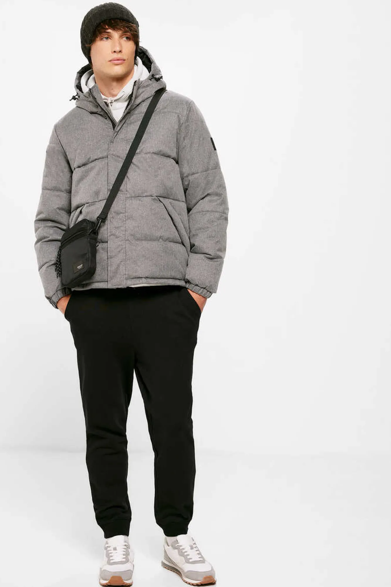 Blusao Curto Acolchoado Com Capuz Em Tecido De Poliester Textura E Enchimento Termico De Poliester Reciclado. Com Fecho-Eclair, Bolsos Laterais Com Fecho De Bot … Ao Automatico, Punhos Elasticos E Capuz E Parte De Baixo Ajustaveis. Projeto Reconsider.Ver Mais