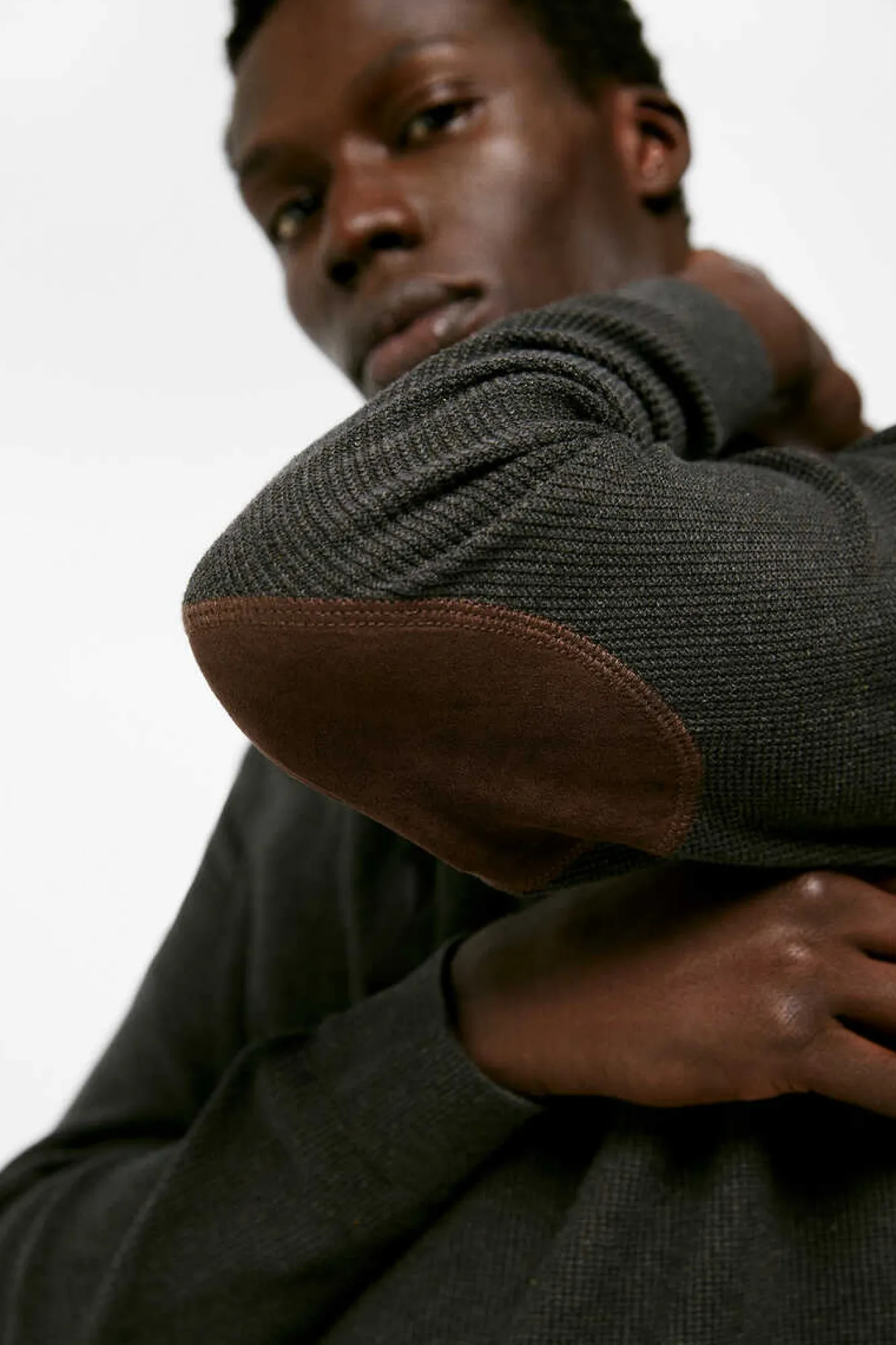 Camisola Com Gola Redonda 100% Algodao, Estrutura Fantasia. Gola, Punhos E Bainha Canelados. Cotoveleiras Com Efeito De Pele.