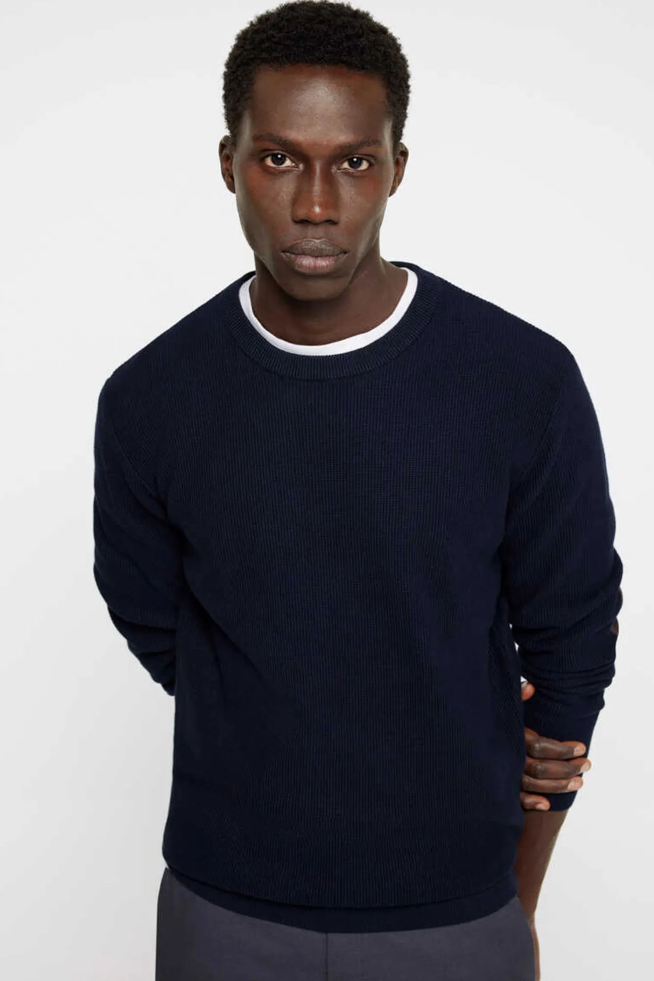 Camisola Com Gola Redonda 100% Algodao, Estrutura Fantasia. Gola, Punhos E Bainha Canelados. Cotoveleiras Com Efeito De Pele.