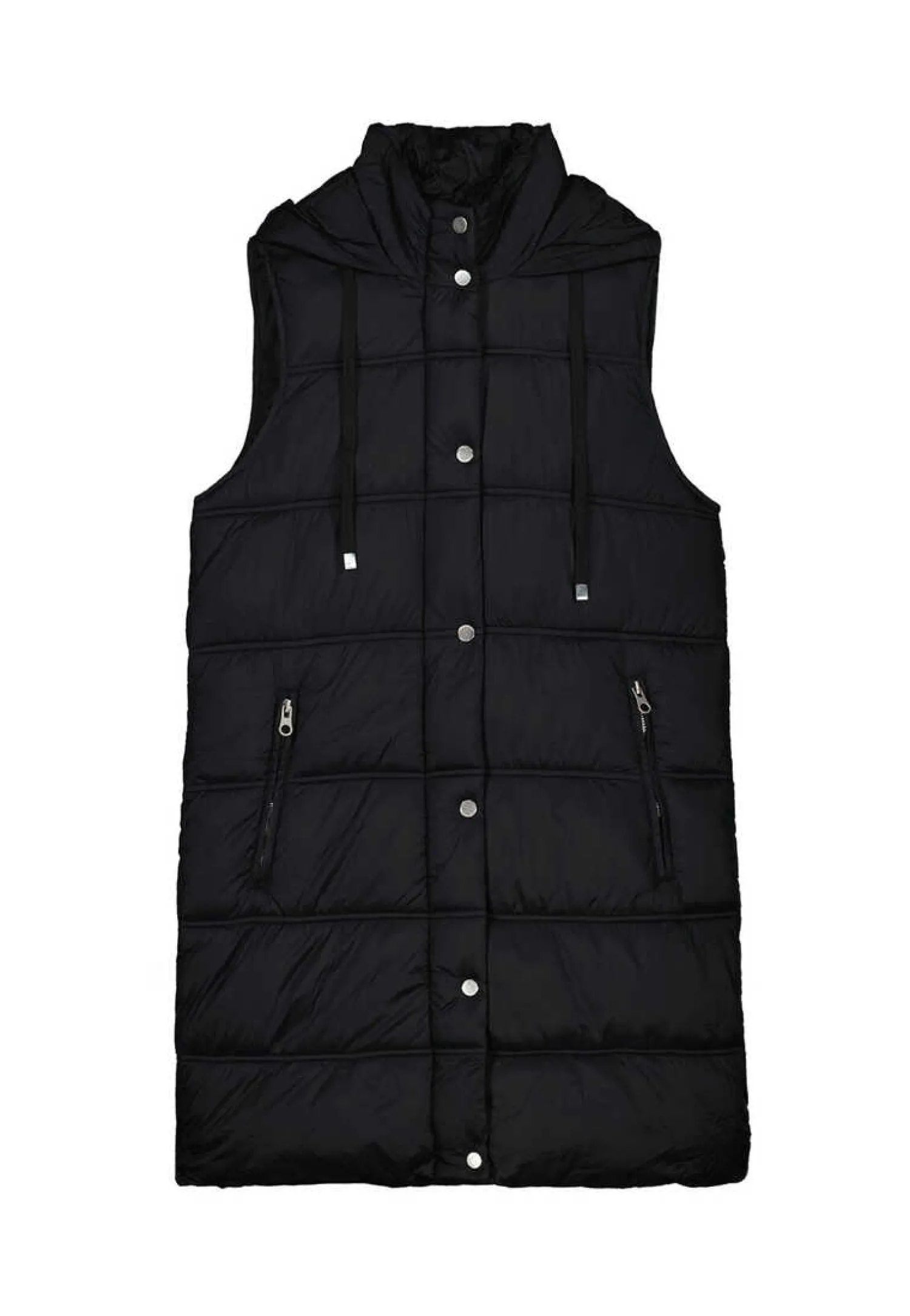 Colete Comprido Acolchoado Com Capuz Com Cordoes, Com Bolsos Laterais Com Fecho-Eclair, Fecho De Botoes De Pressao Na Frente, Com Enchimento De Poliester Recicl … Ado.Ver Mais