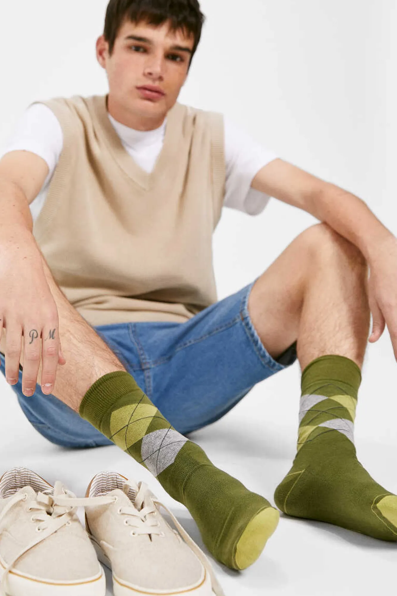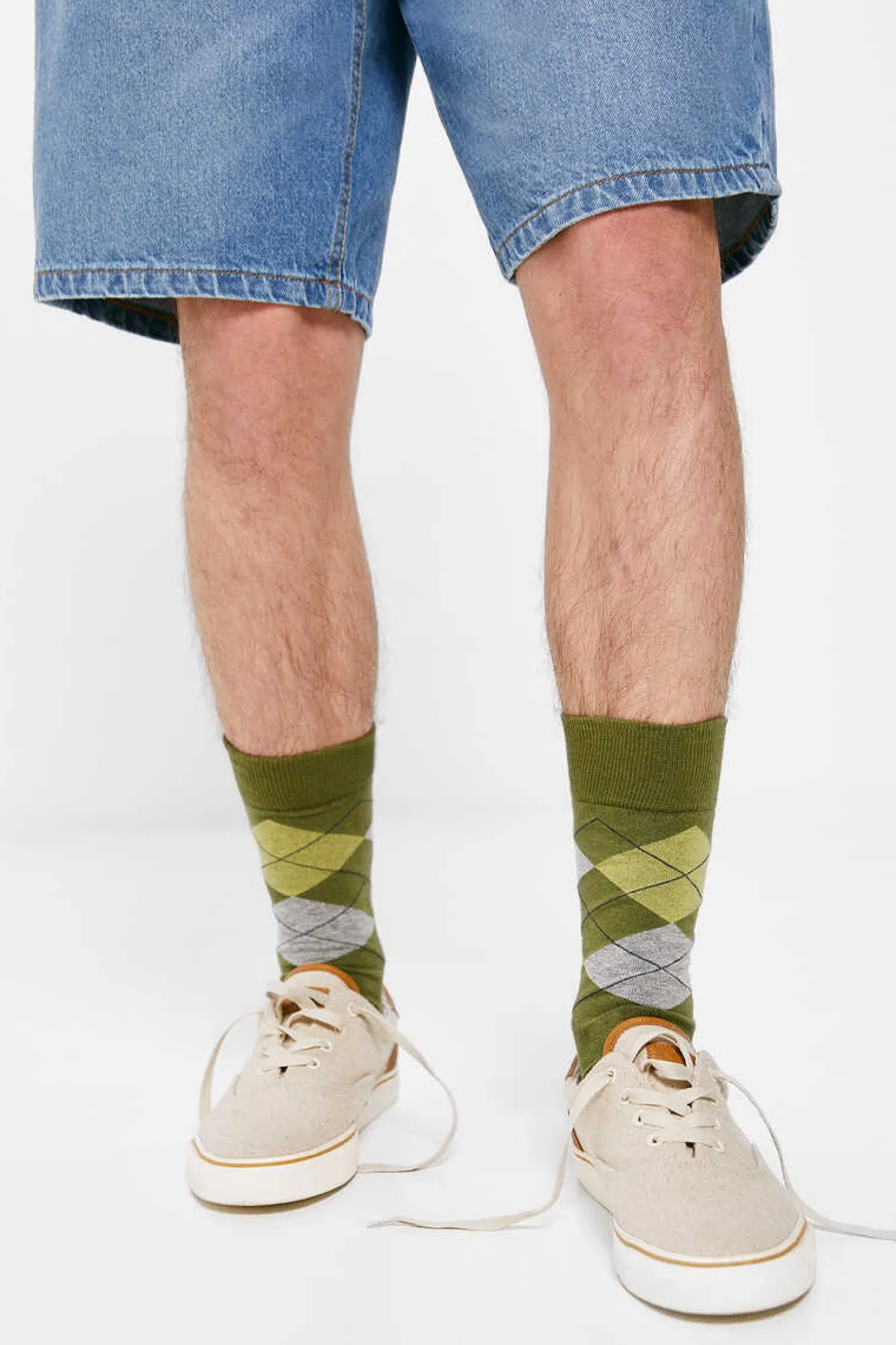 Meia Com Jacquard De Losangos De Algodao. Colecao Reconsider.