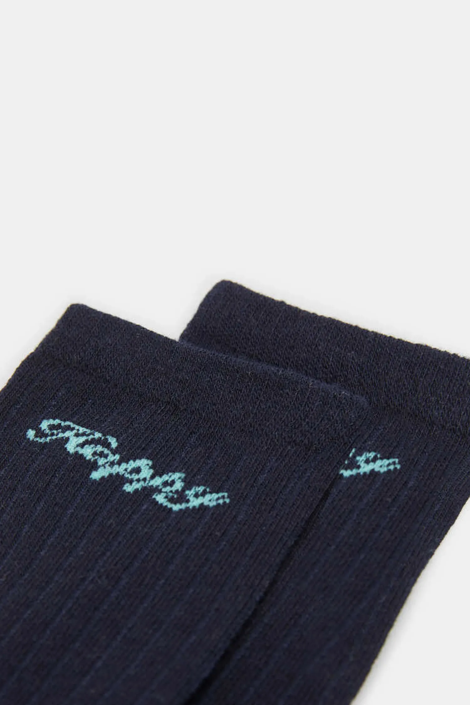 Meia Comprida Com Canelado, Com Texto Lateral, Com Biqueira E Calcanhar Em Contraste De Cor.