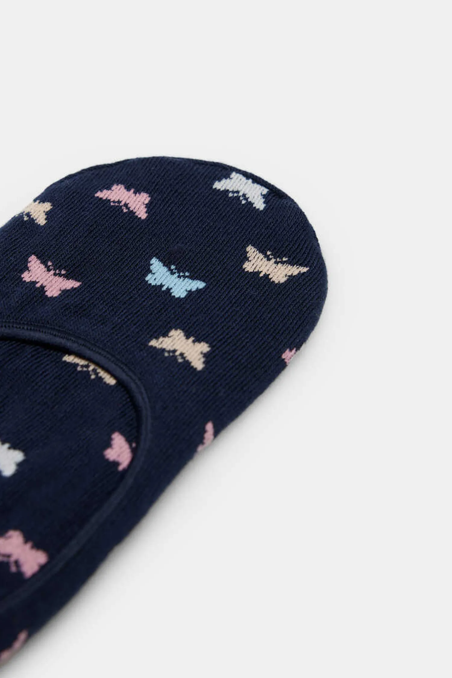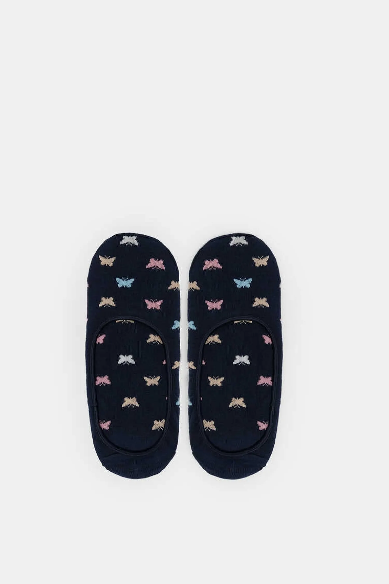 Meia Invisivel Com Desenho De Borboletas Multicolor.