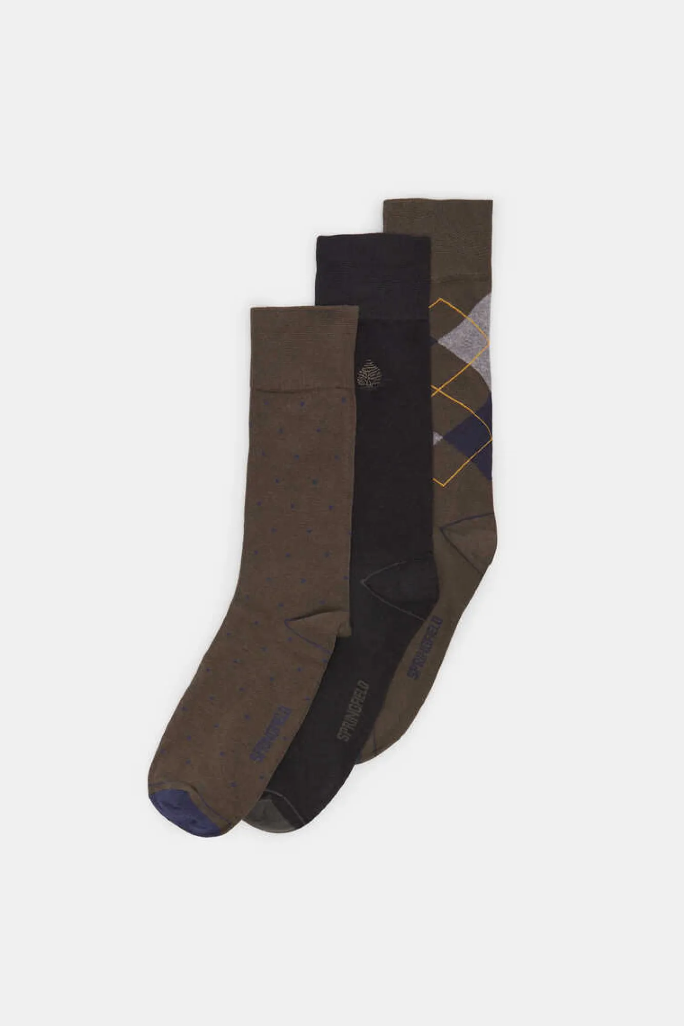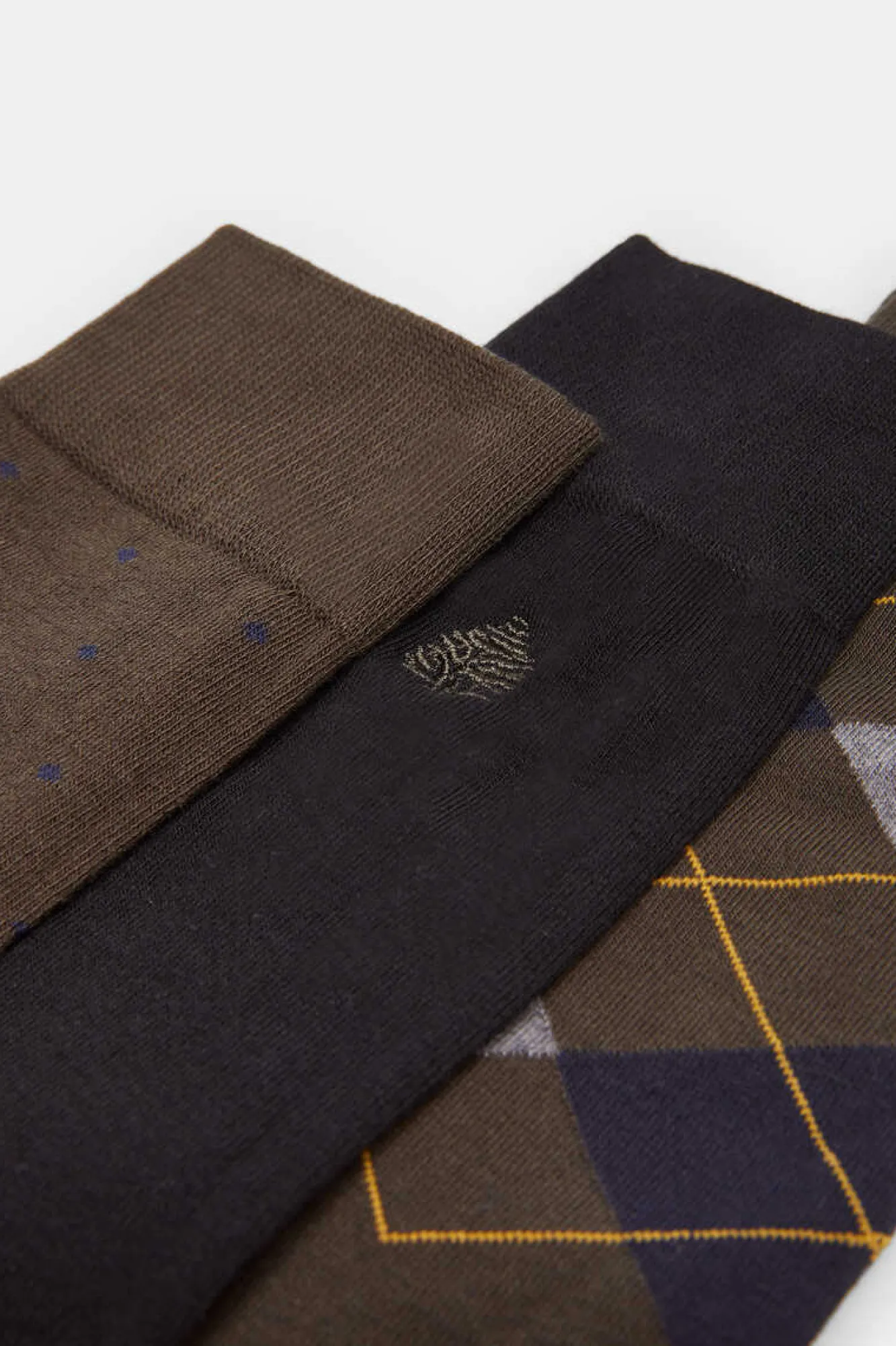 Pack 3 Meias De Algodao Em Liso, Bolinhas E Losangos. Colecao Reconsider.