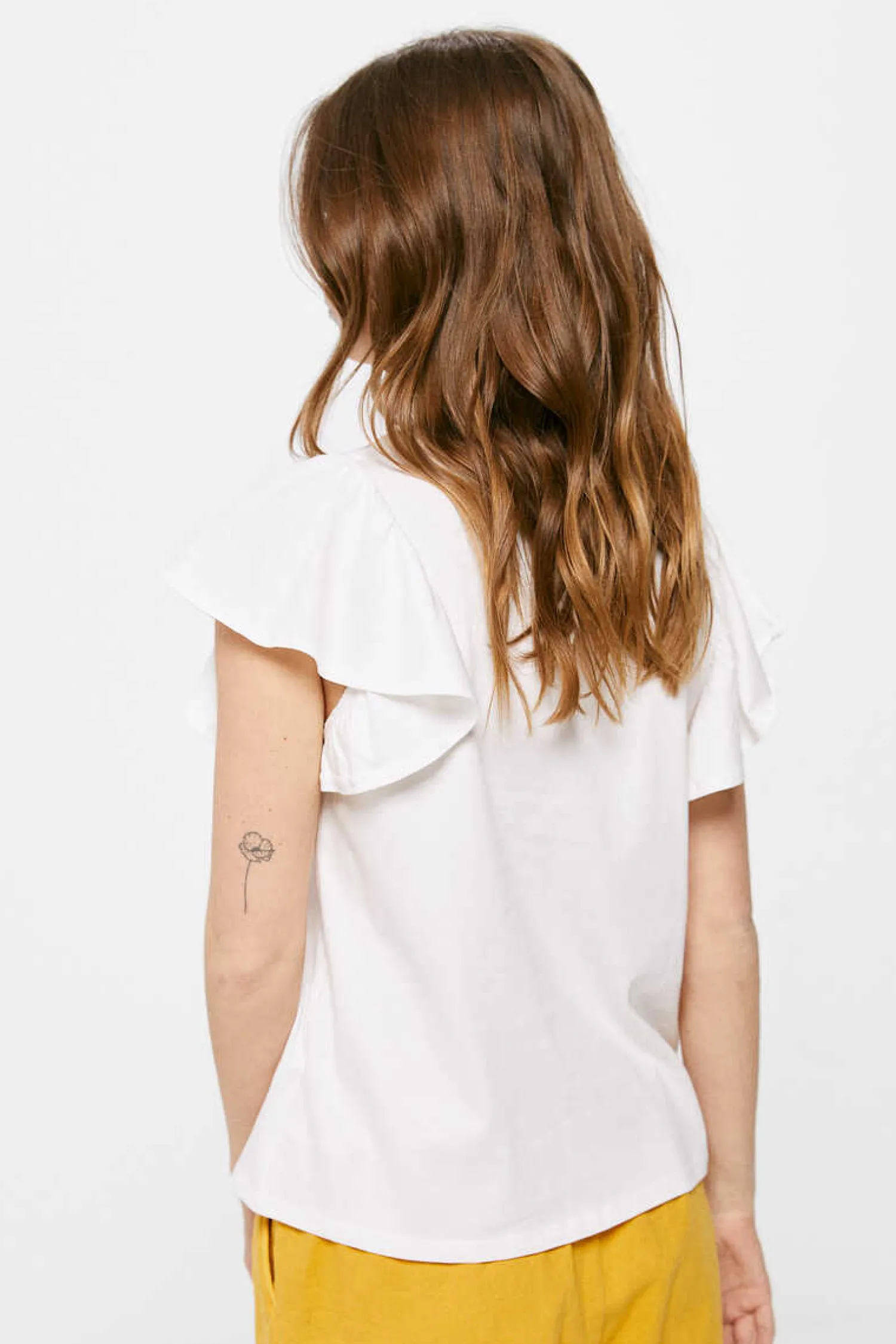 T-Shirt De Manga Curta Com Folho Dobrado, Gola Redonda, Estampado Grafico Posicional De Desenho E Texto A Frente.