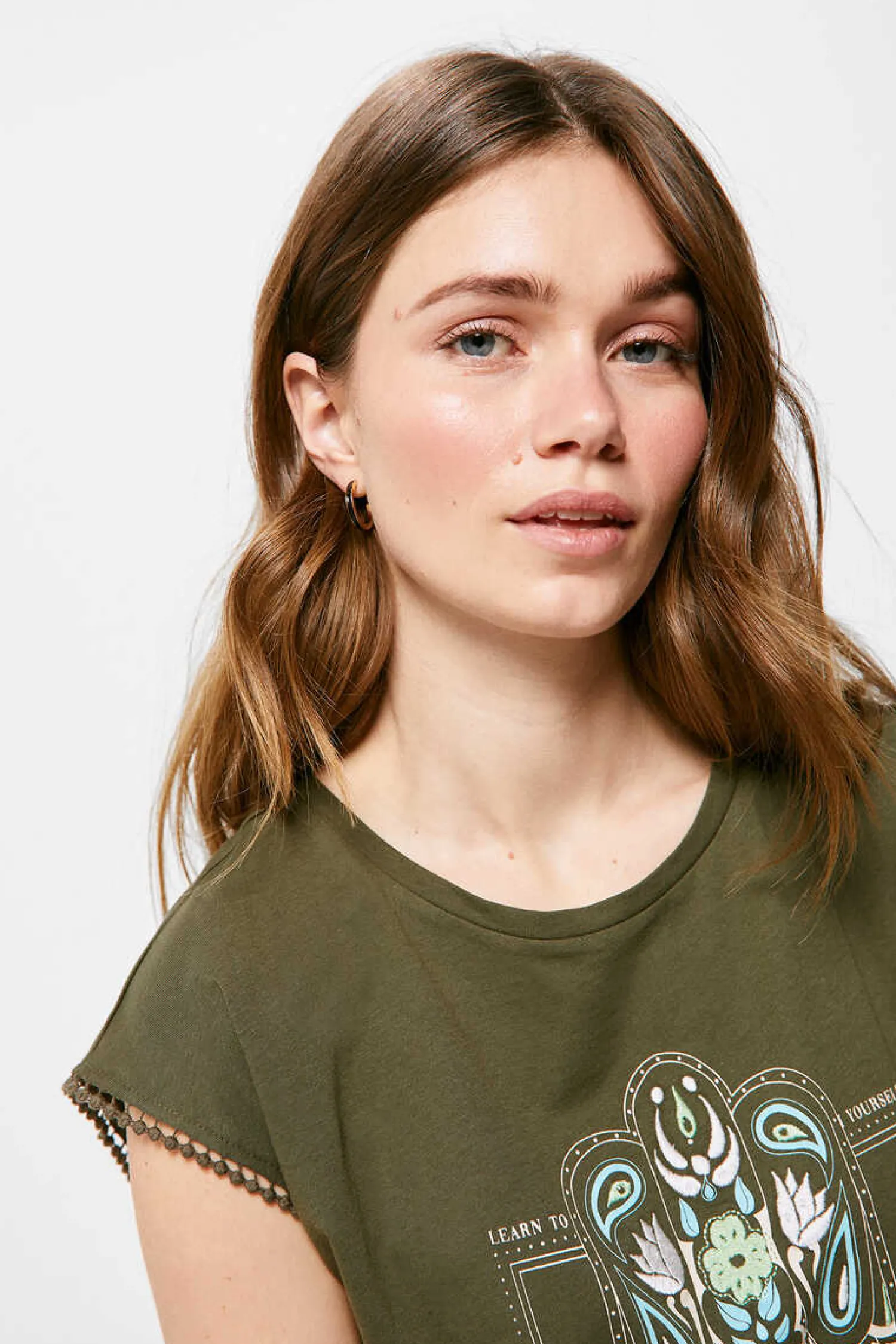 T-Shirt De Manga Descaida, Com Gola Redonda E Estampado Grafico Posicional De Desenho A Frente.