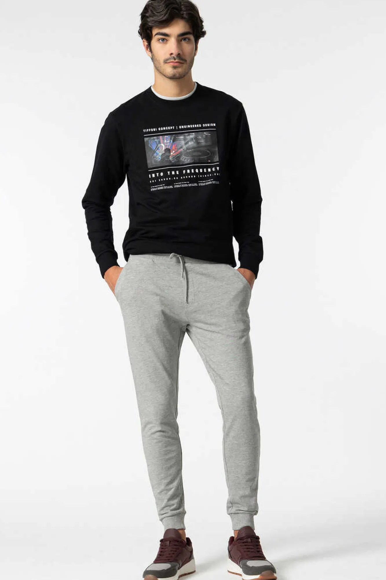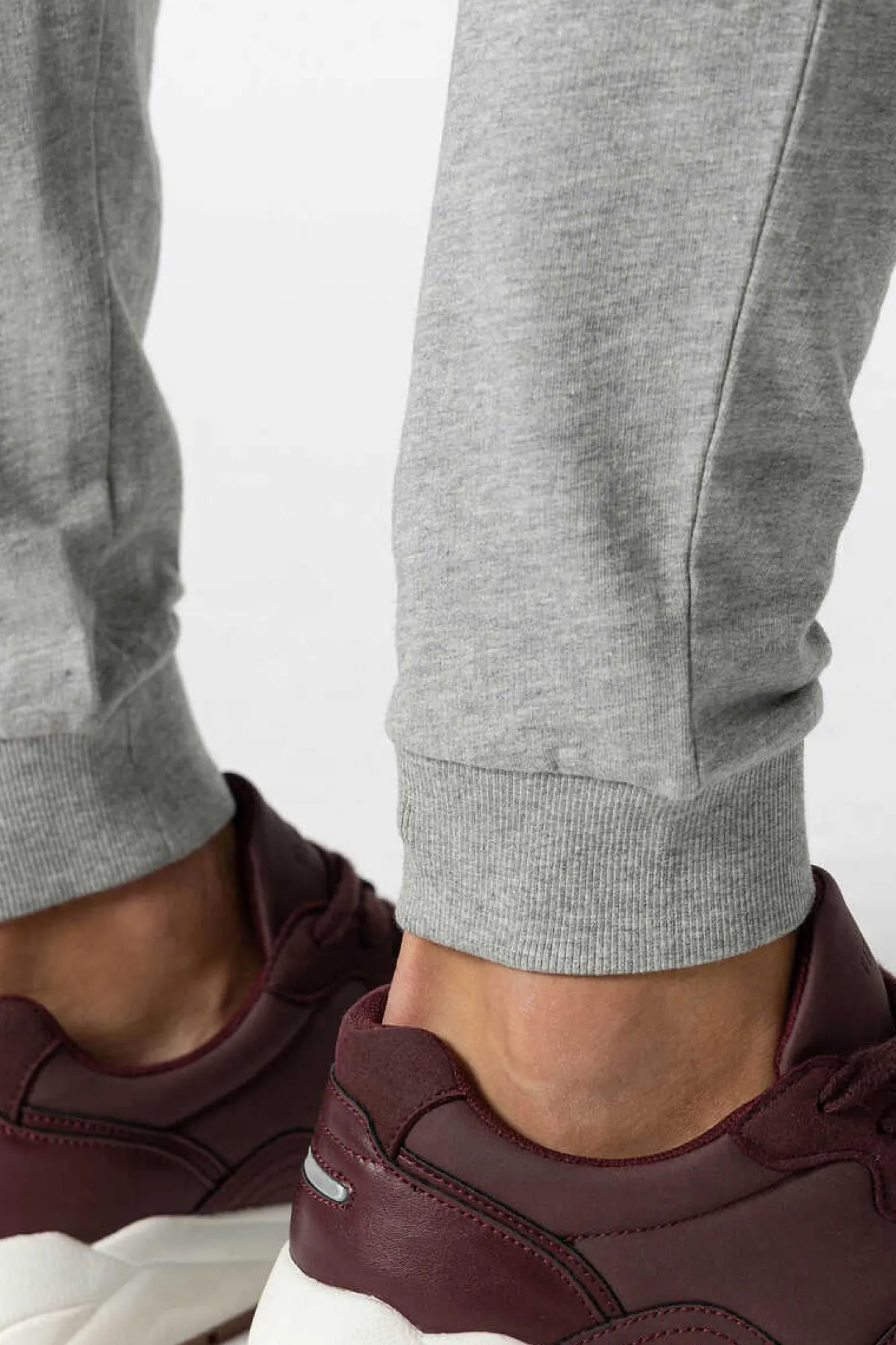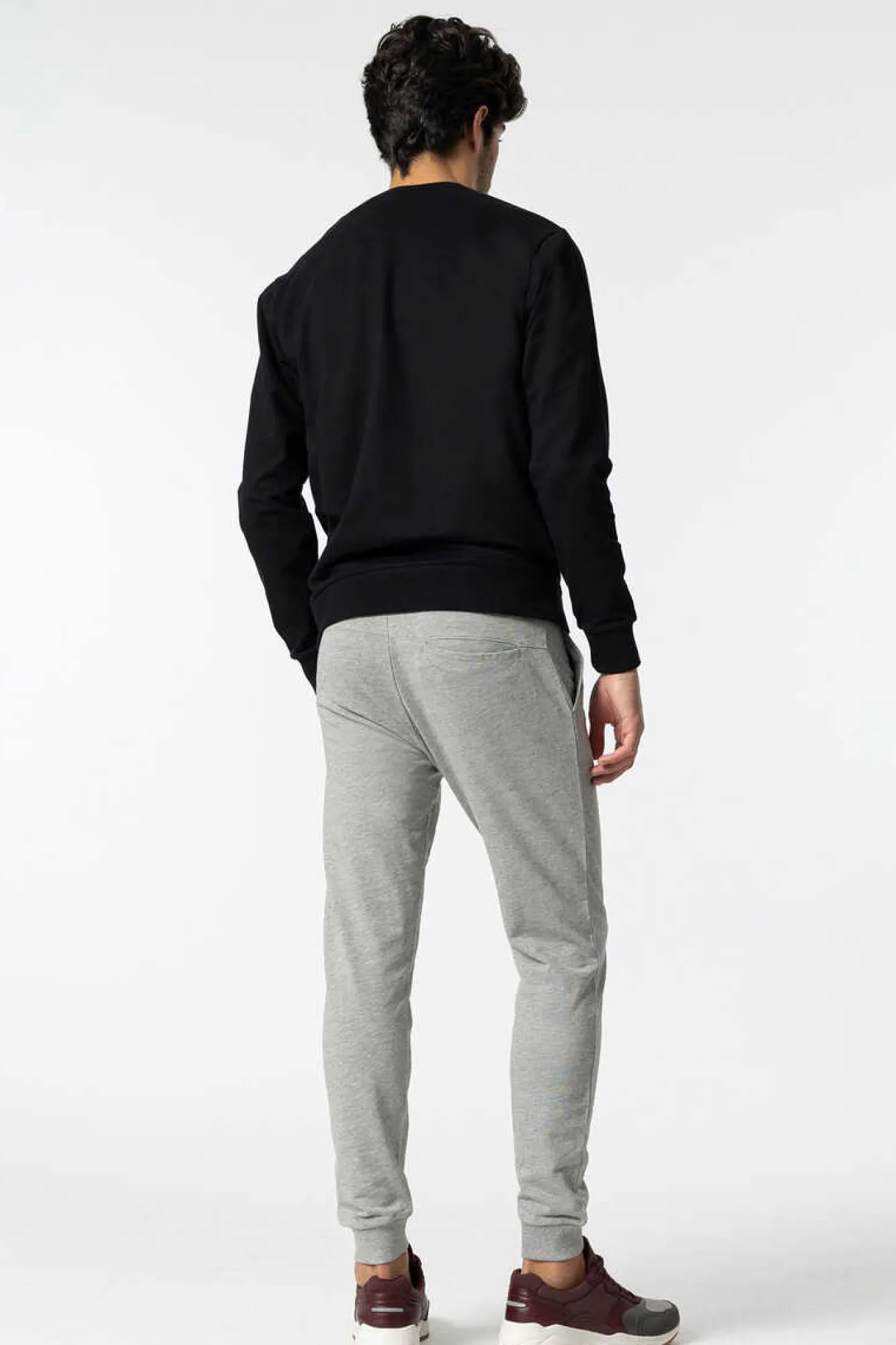 Calcas De Cintura Media Com Cintura Elastica E Acabamento De Punho Na Bainha.