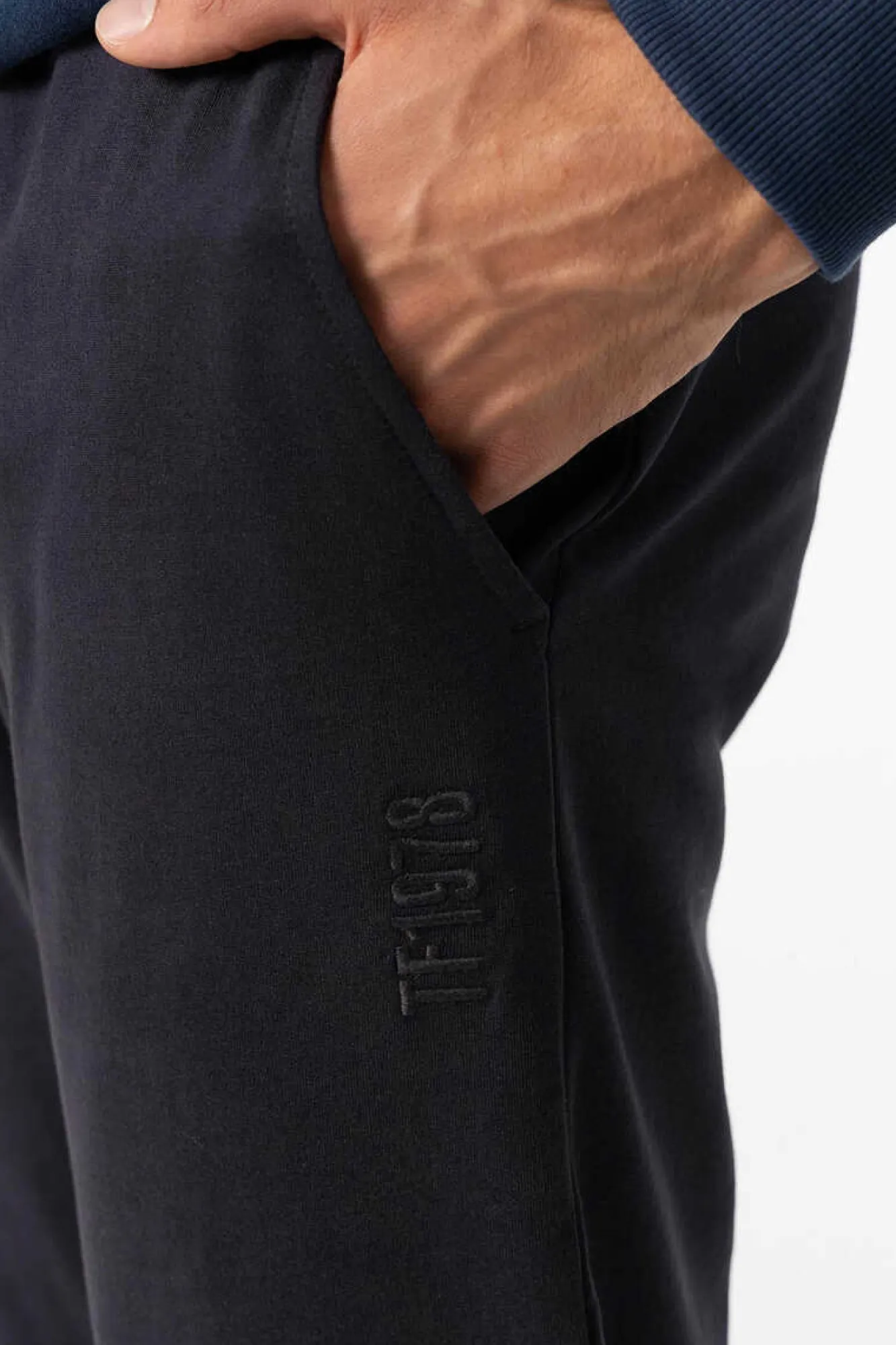 Calcas De Cintura Media Com Cintura Elastica E Acabamento De Punho Na Bainha.