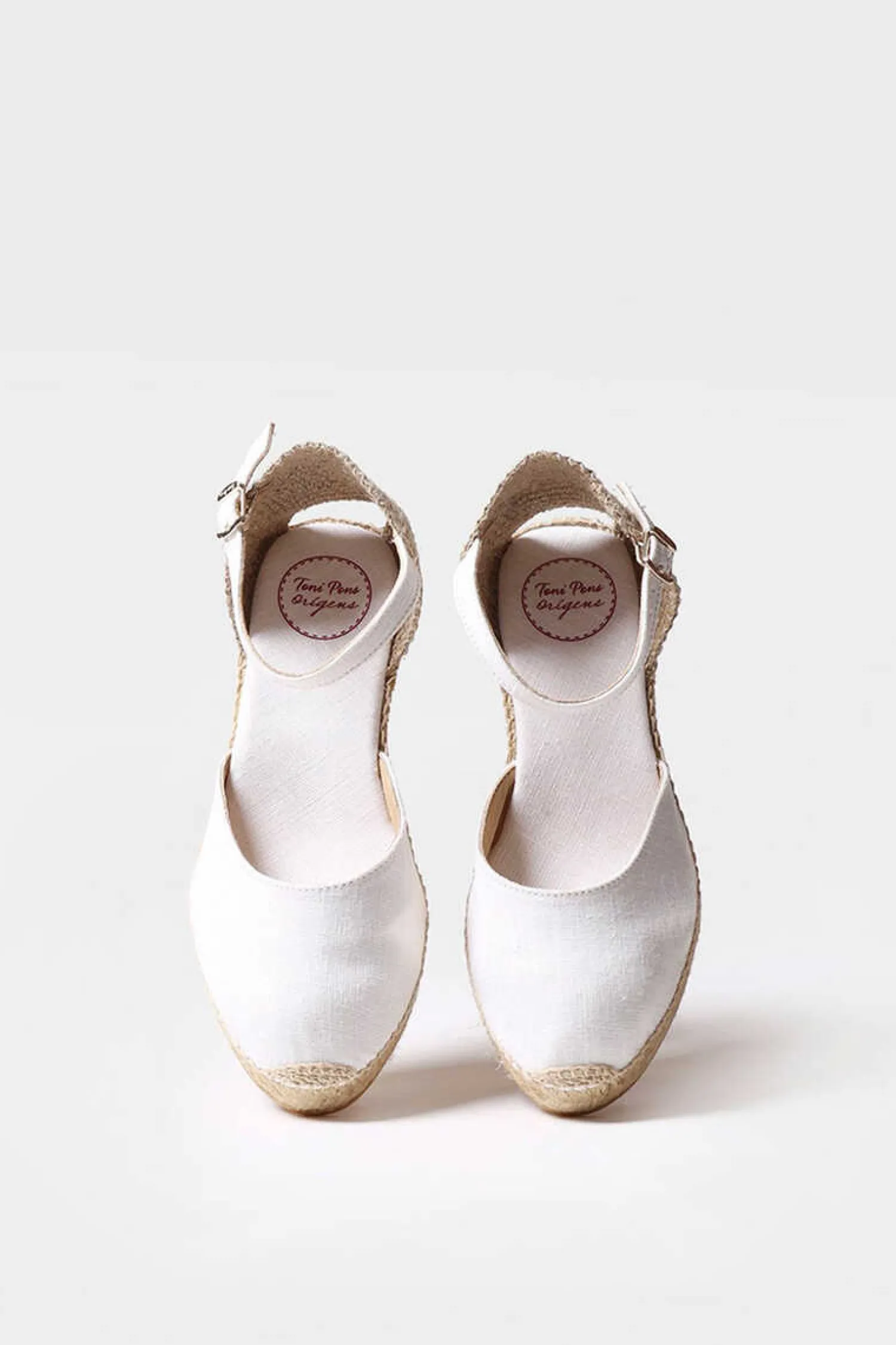 Caldes De Toni Pons. O Classico Da Elegancia. Alpercata De Mulher Em Linho, Elaborada Em Tons Lisos. A Cunha Tem Uma Altura Total De 7 Cm, Dos Quais 5 Cm Perten … Cem Ao Salto E 2 Cm A Sola. Toda A Cunha Exterior E Confecionada Em Juta E Borracha, A Sola Interior Esta Forrada Em Tecido. O Seu Salto Medio E O Favorito Das Nossas Clientes. A Uniao Do Linho E Sola Esta Cosida A Mao Com Um Fio De Algodao E Tem Um Reforco Na Biqueira Para Maior Fixacao.Ver Mais