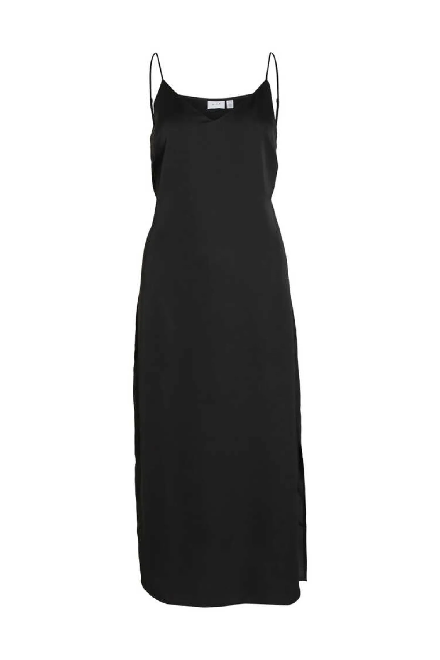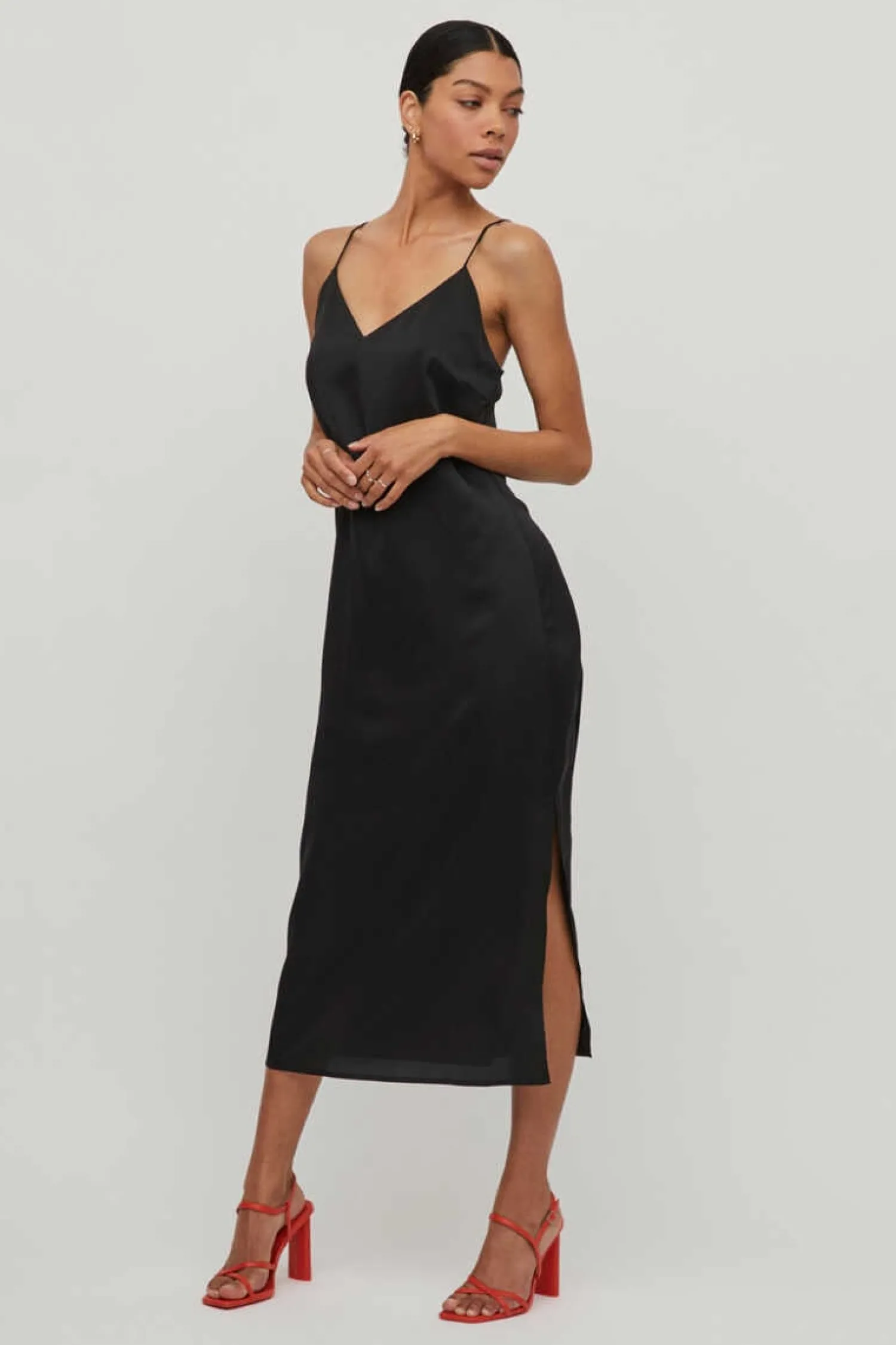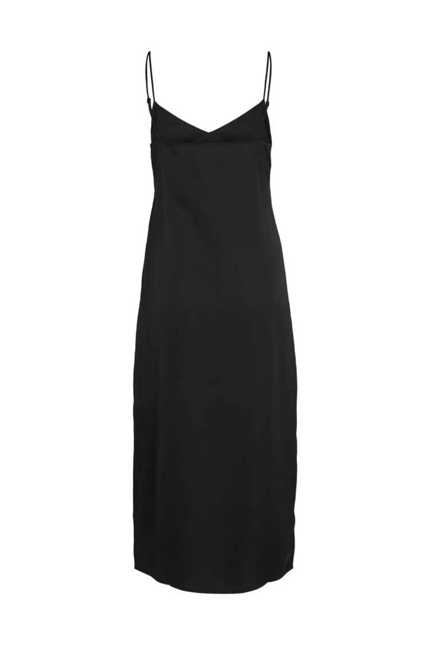 Vestido Comprido Acetinado Com Alcas Regulaveis. Decote Em Bico.