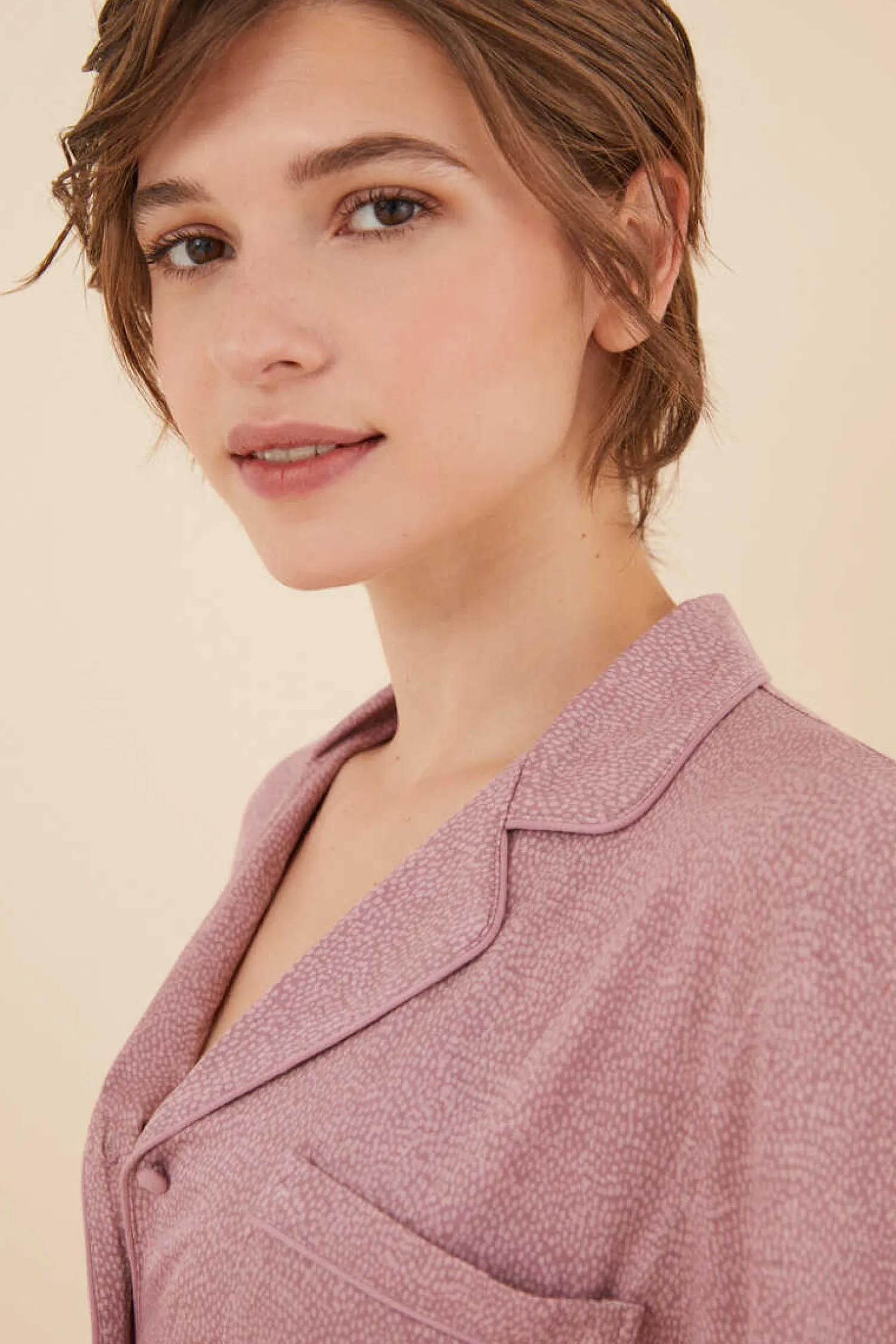 Pijama Camiseiro De Manga Comprida E Calcas Compridas, Com Estampado De Mancha, Confecionado Em Suave Viscose. Ideal Para Dormir Super Comoda E Estar Em Casa Se … M Perder Nem Um Pouco De Estilo.