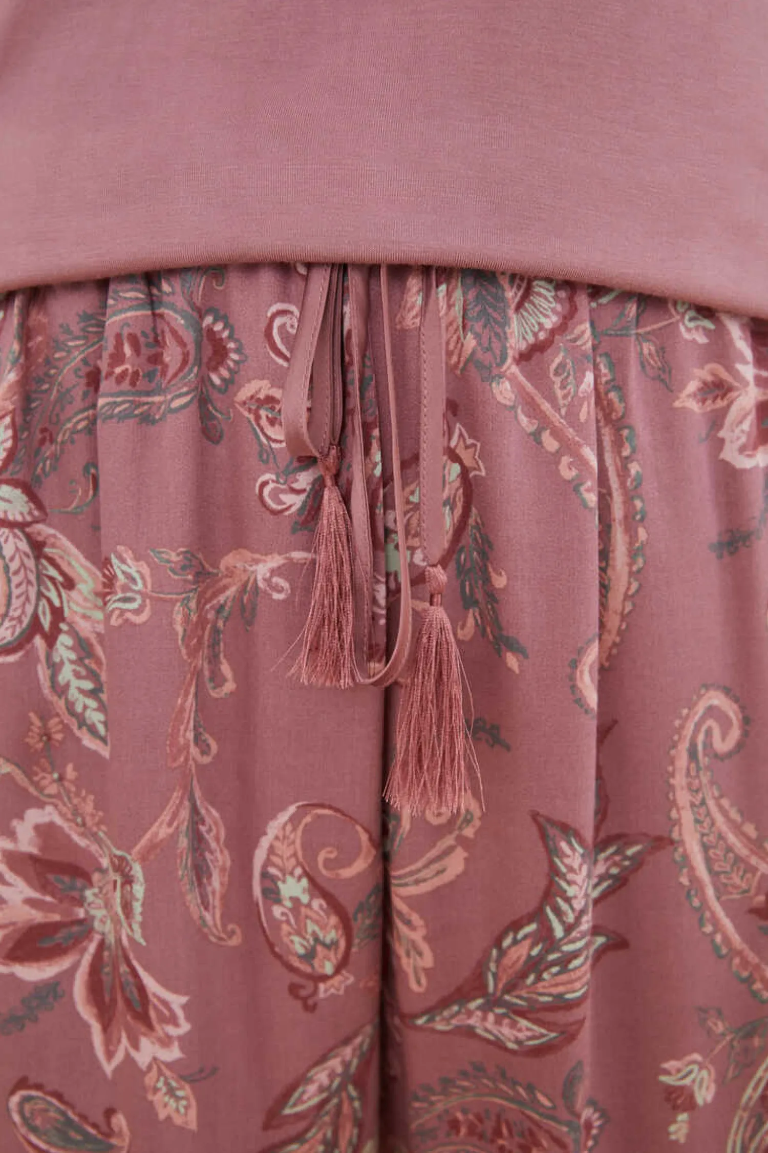 – Calcas De Estampado De Flores Com Cintura Elastica Regulavel Mediante Cordao Com Borlas No Tom.