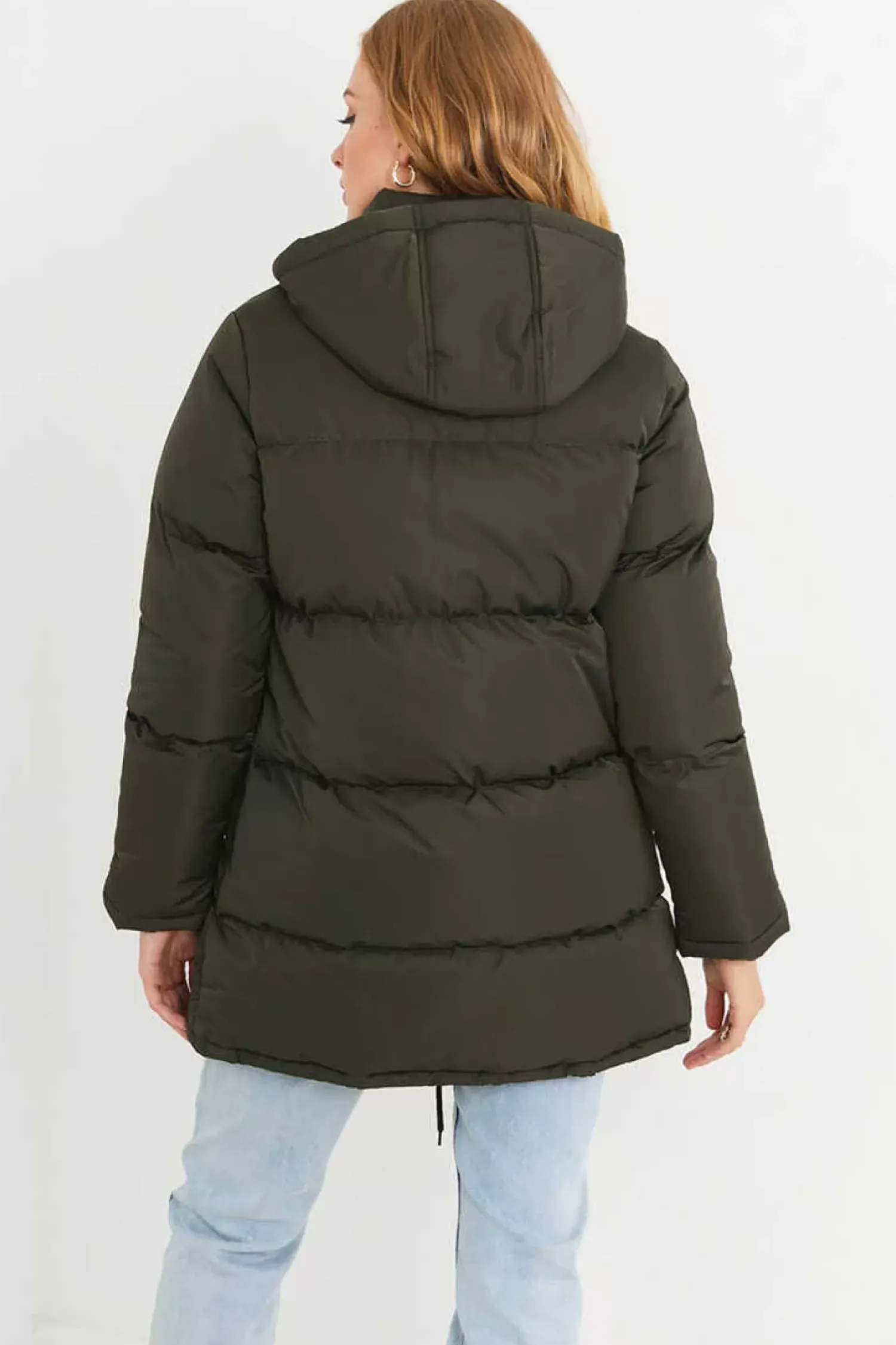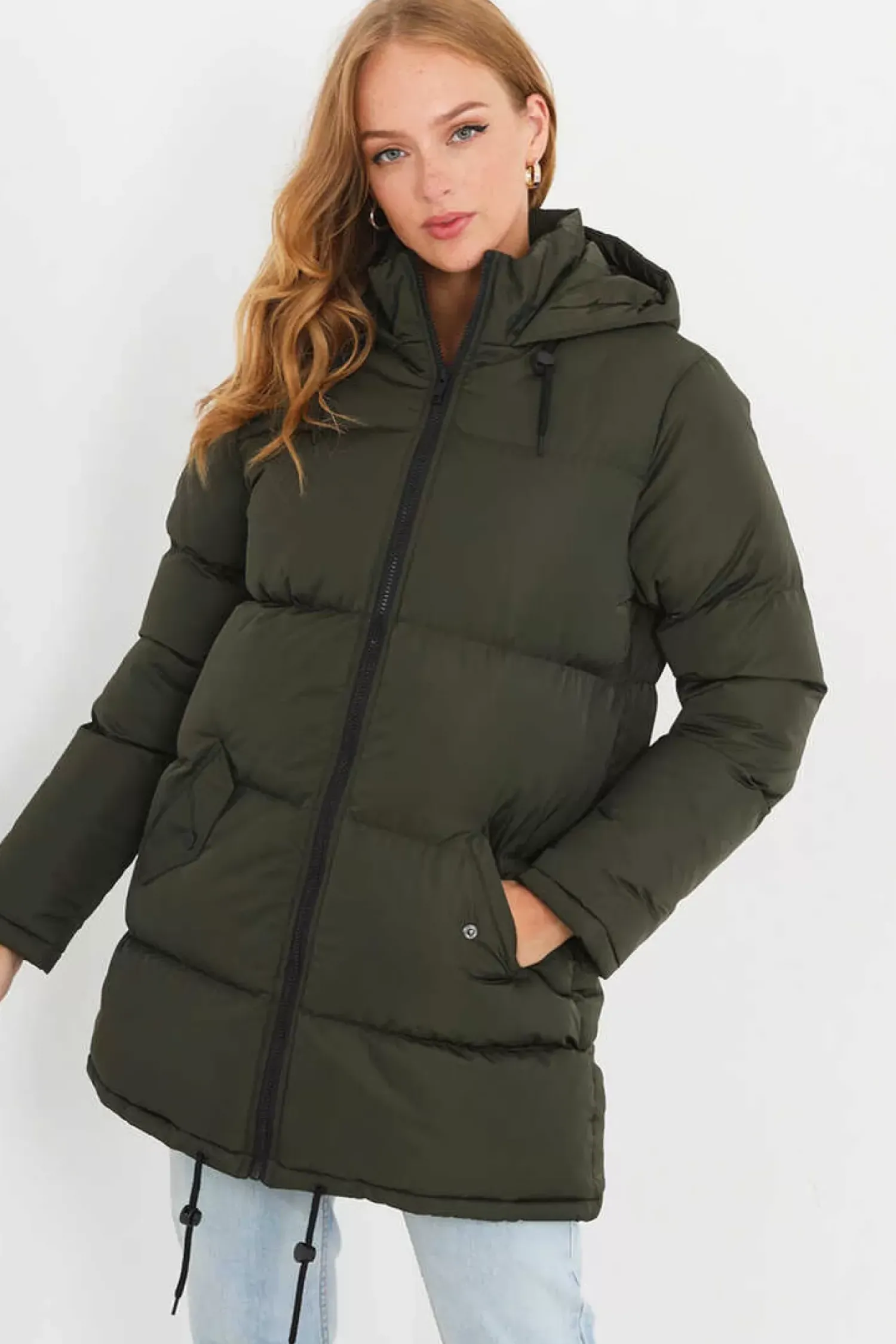 Casaco De Penas De Mulher, Comprido E Acolchoado Com Capuz. Fecho Mediante Fecho-Eclair E Botoes De Pressao. Dois Bolsos. Com Cordoes Ajustaveis No Capuz E Na B … AinhaVer Mais