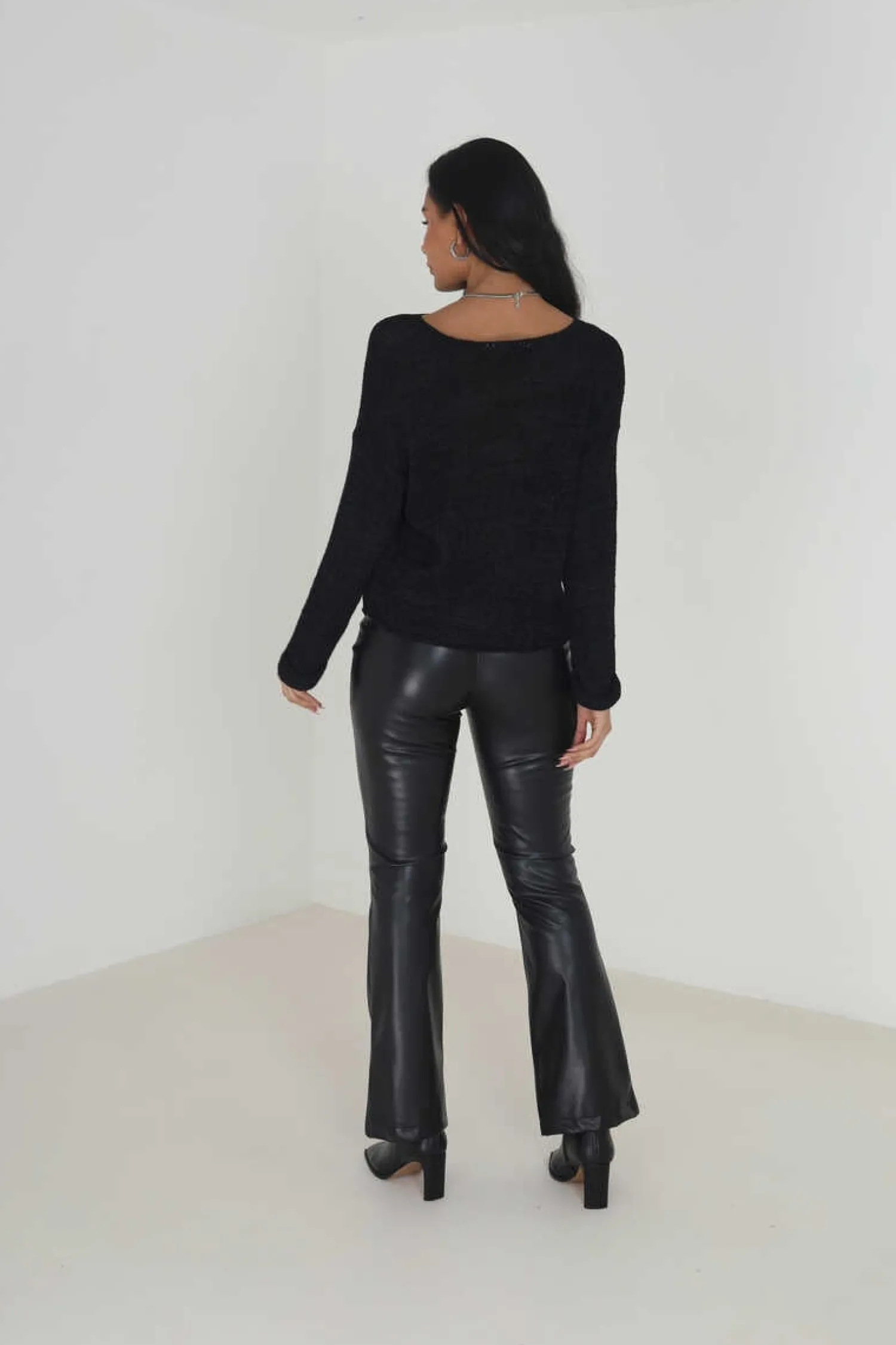 Camisola De Malha De Gola Redonda Com Dobra Na Manga