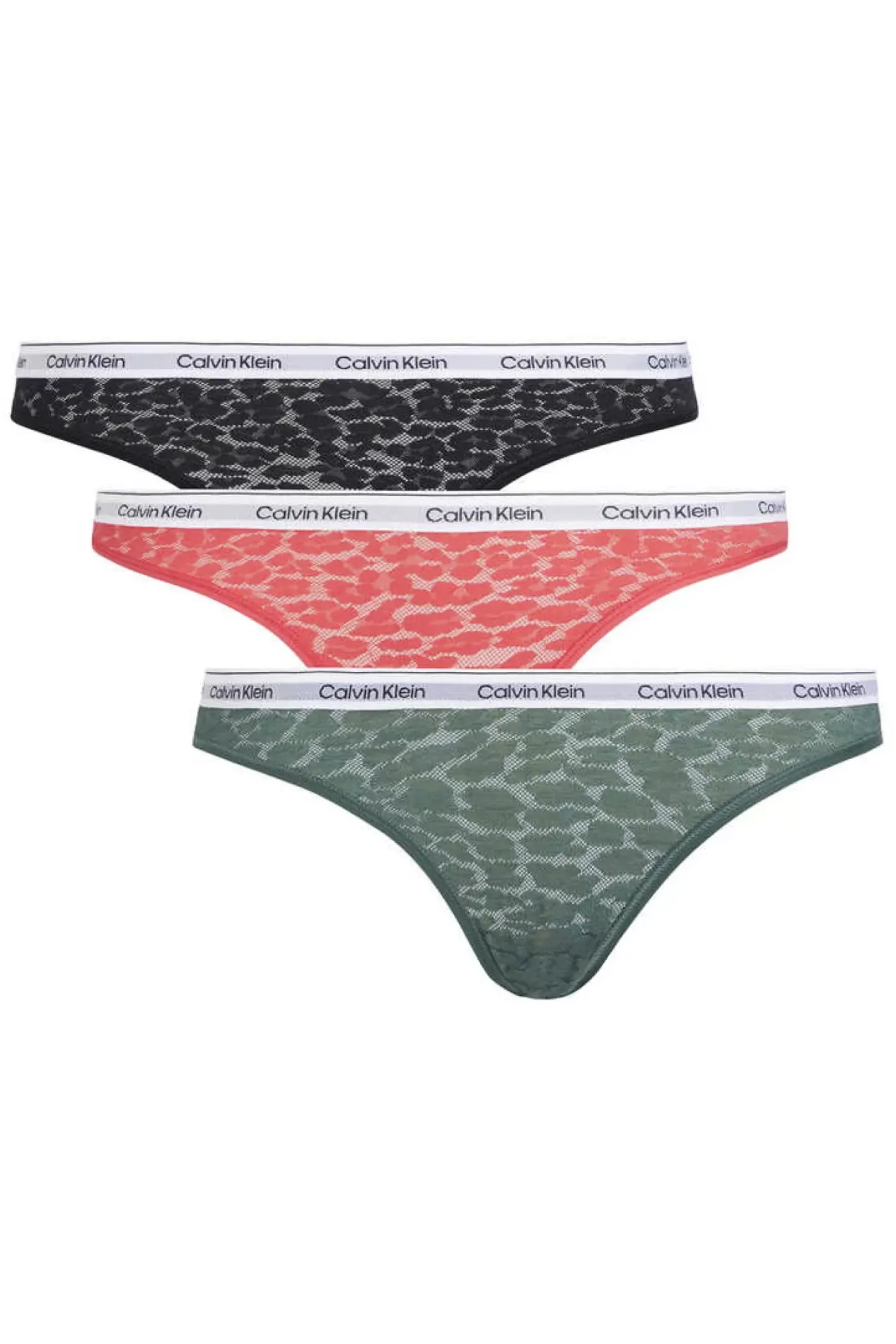 Conjunto De 3 Cuequinhas Medias Classicas De Renda Em Poliamida E Cintura Elastica Distintiva Da Calvin Klein.