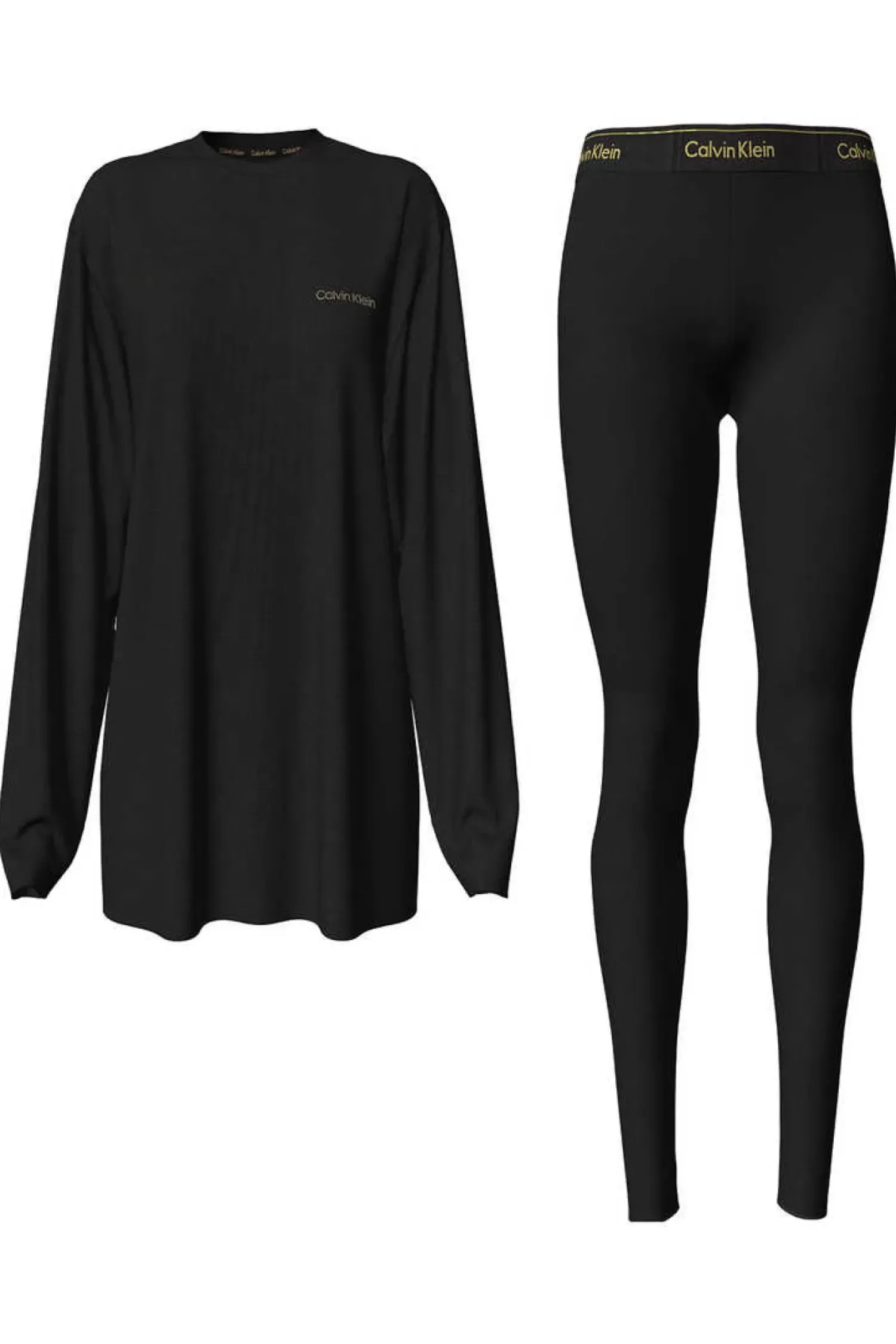 Conjunto De Pijama Comprido Em Mistura De Algodao E Modal. Conjunto De Leggings Com Cintura Elastica Distintiva Da Calvin Klein E T-Shirt De Manga Comprida Com … Logo Na Parte Esquerda Do Peito.Ver Mais