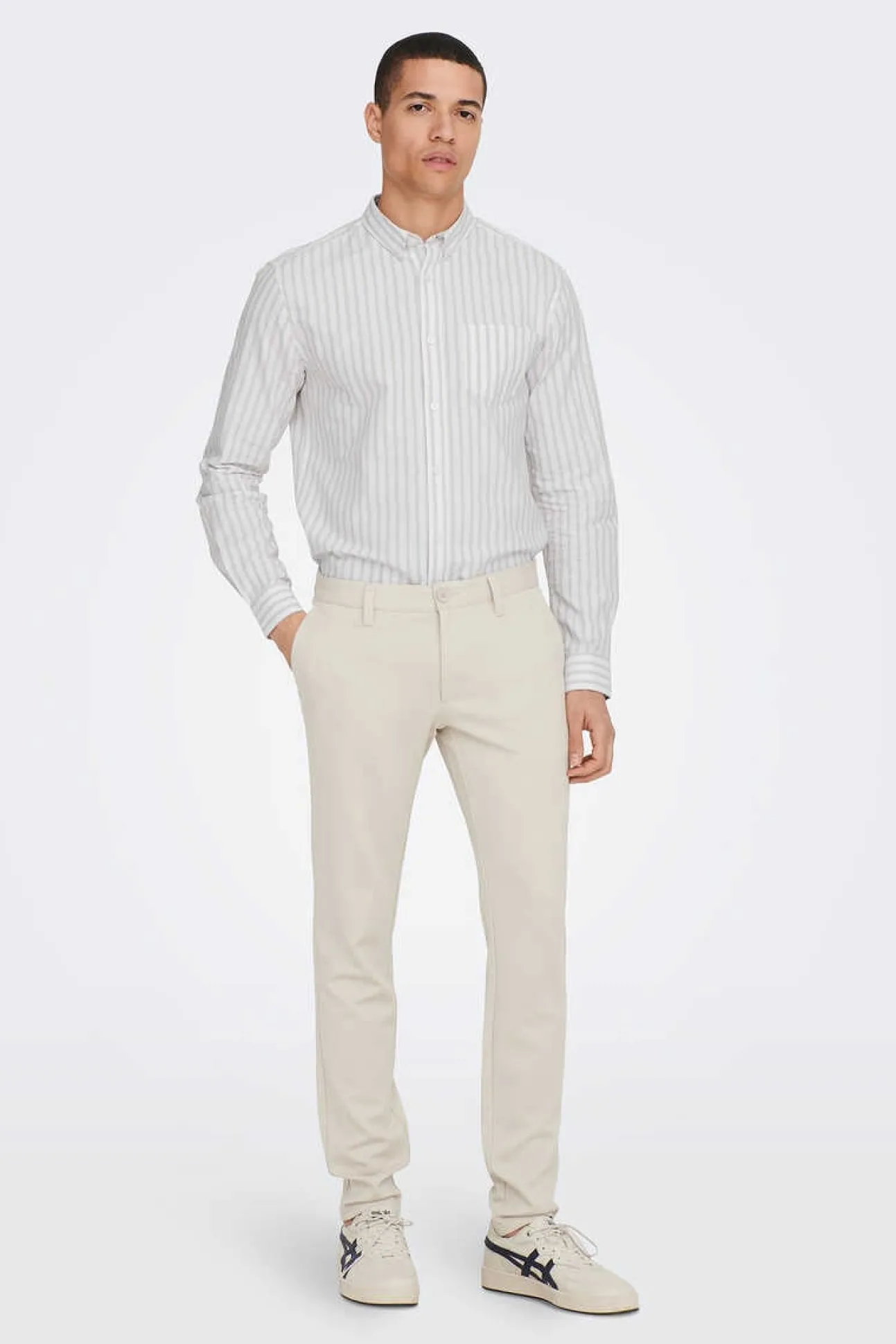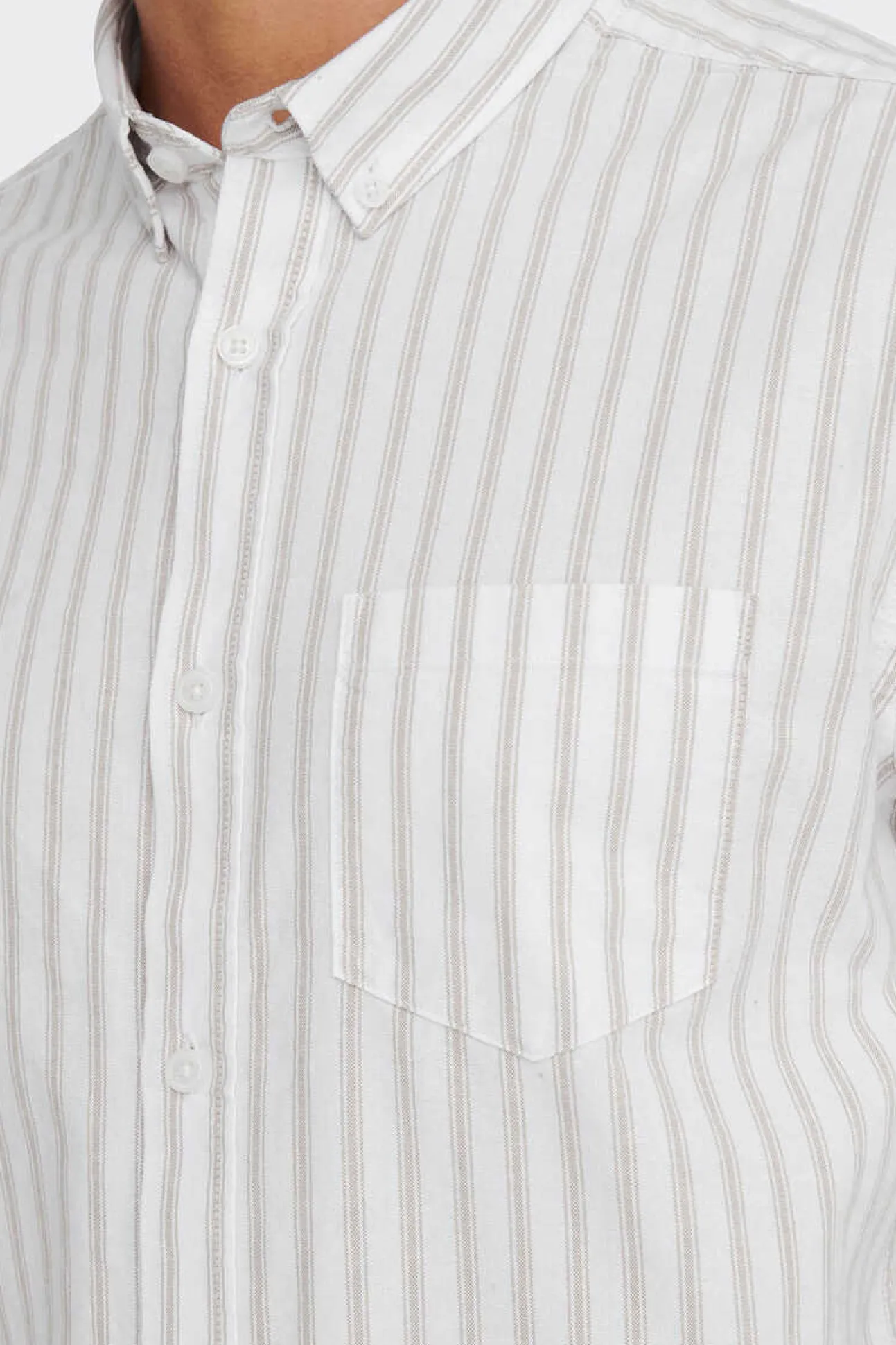 Camisa Oxford Riscas Com Gola Tipo Botao E Bolso Na Zona Do Peito. Uma Peca Versatil Para Qualquer Ocasiao. Ajuste Slim.