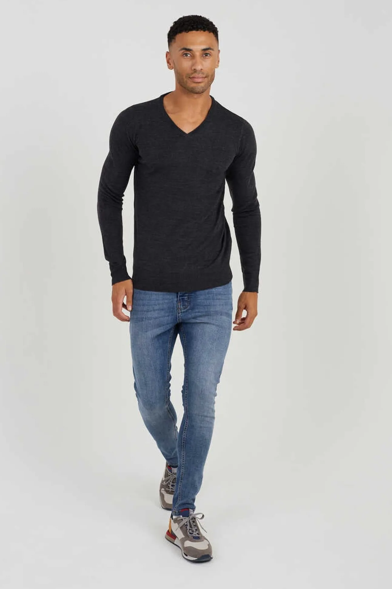 Camisola De Homem Basica Com Gola Em Pico. Tecido Plano. Gola, Bainha E Punhos Canelados