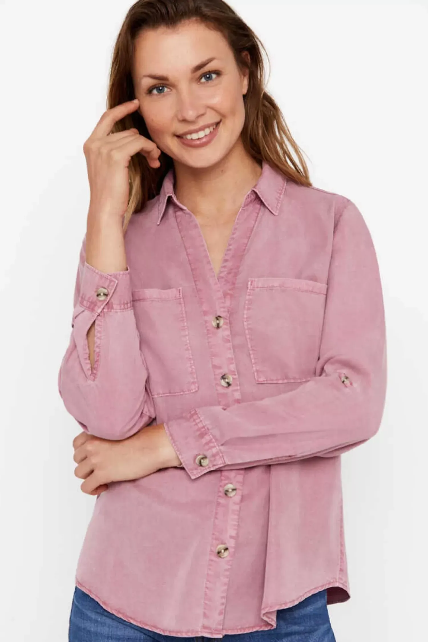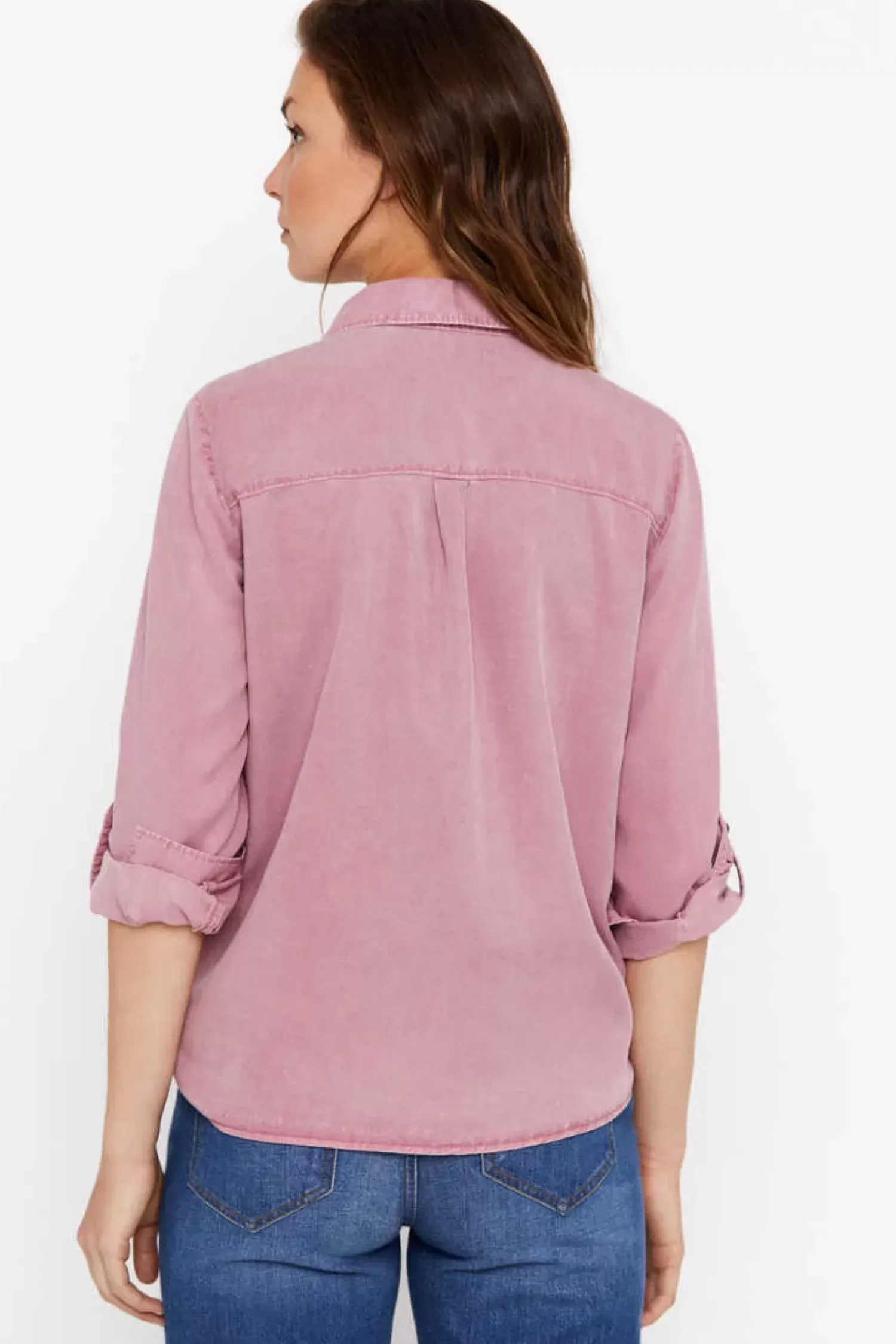 – Camisa 100% Tencel Cor E Denim- Fit Reto Com Bolsos Tipo Cargo, Abotoadura Frontal E Reguladores Para Ajustar O Comprimento Das Mangas-