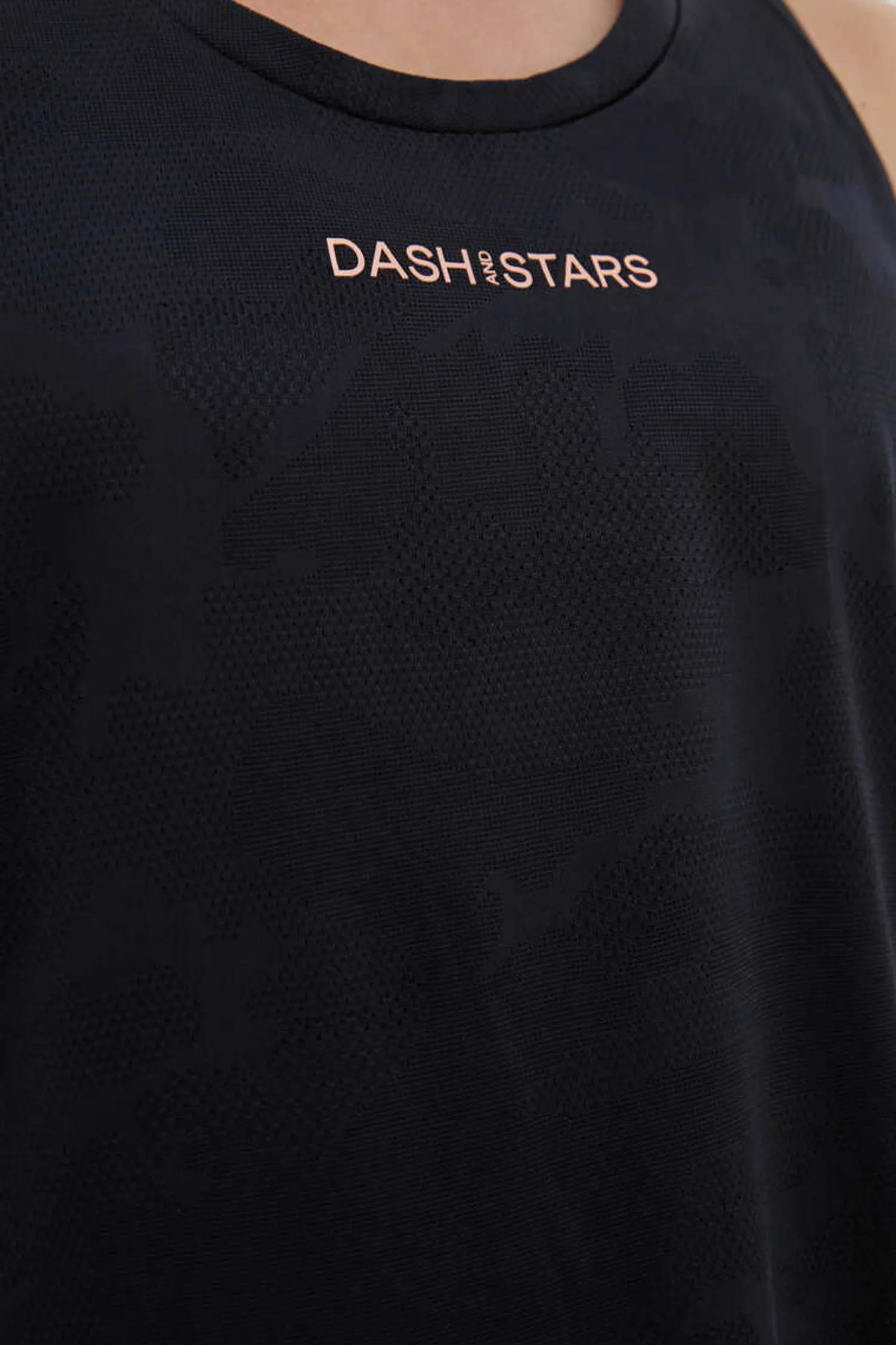 – T-Shirt De Alcas Tecnicas De Tipo Halter Em Cor Preta. Com Tecido Perfurado, Cava Baixa E Elastica Com Logo “Dash And Stars” Nas Costas, Esta T-Shirt E Mu … Ito Comoda Para Poder Realizar Qualquer Tipo De Exercicio, Seja Running Ou Training.