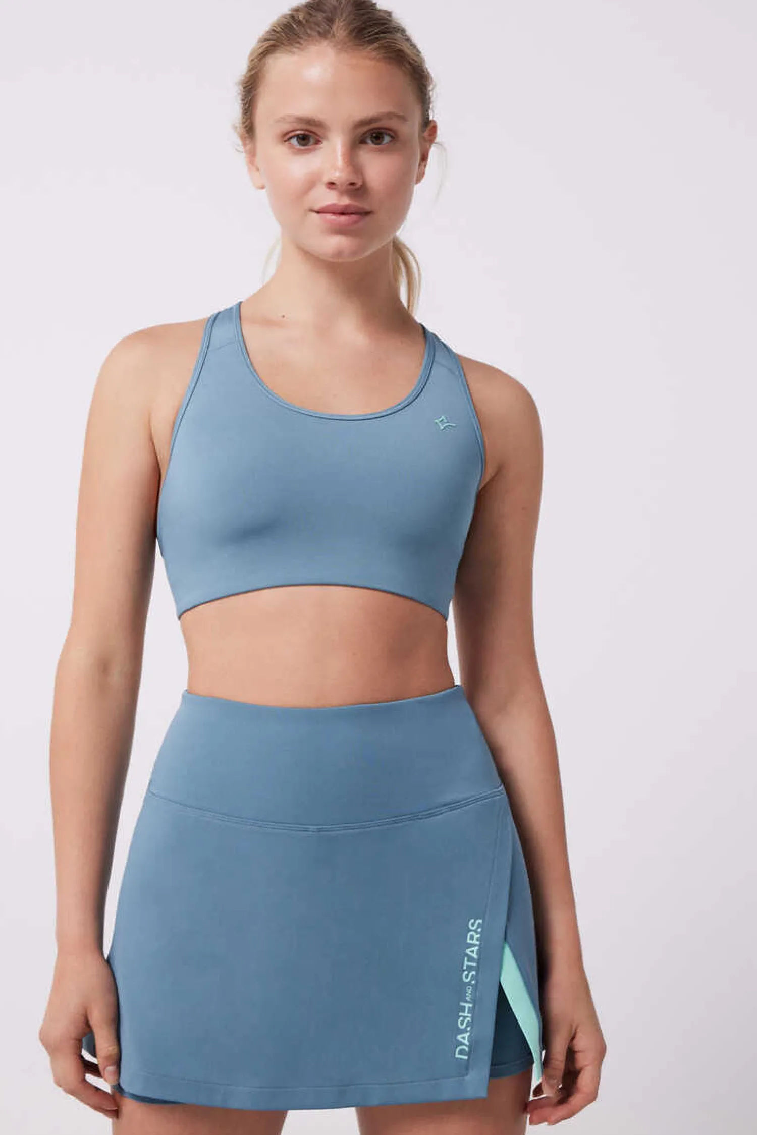 – Saia De Microfibra Com Comoda Malha Curta Interior Em Verde. Com Abertura Lateral E Detalhes De Cor Em Contraste.