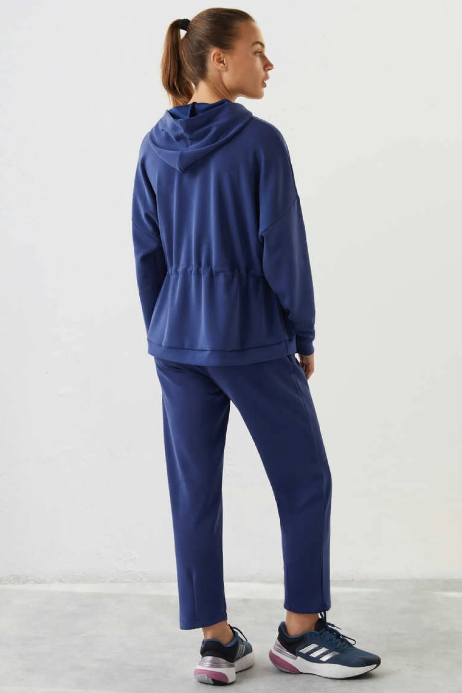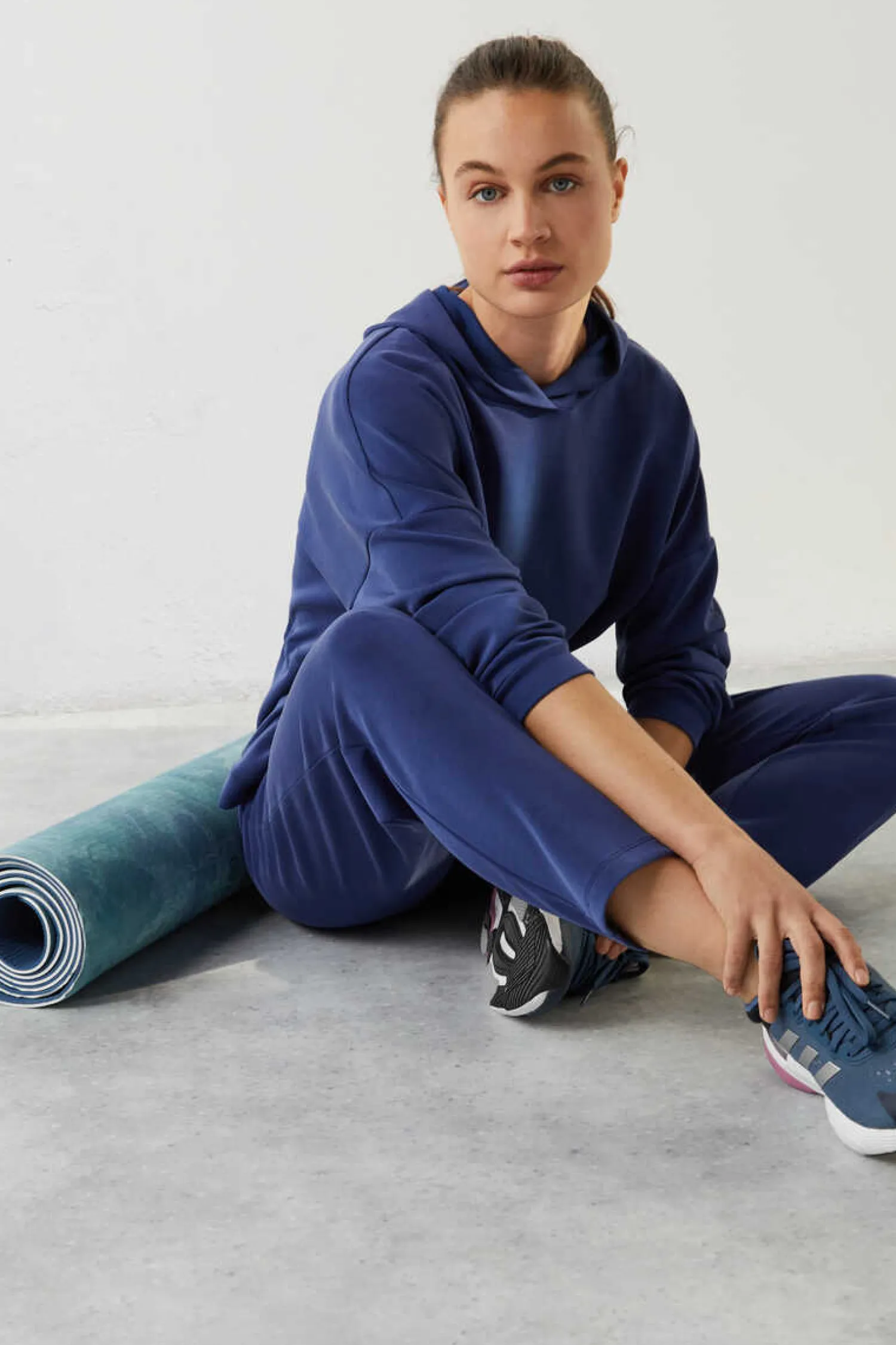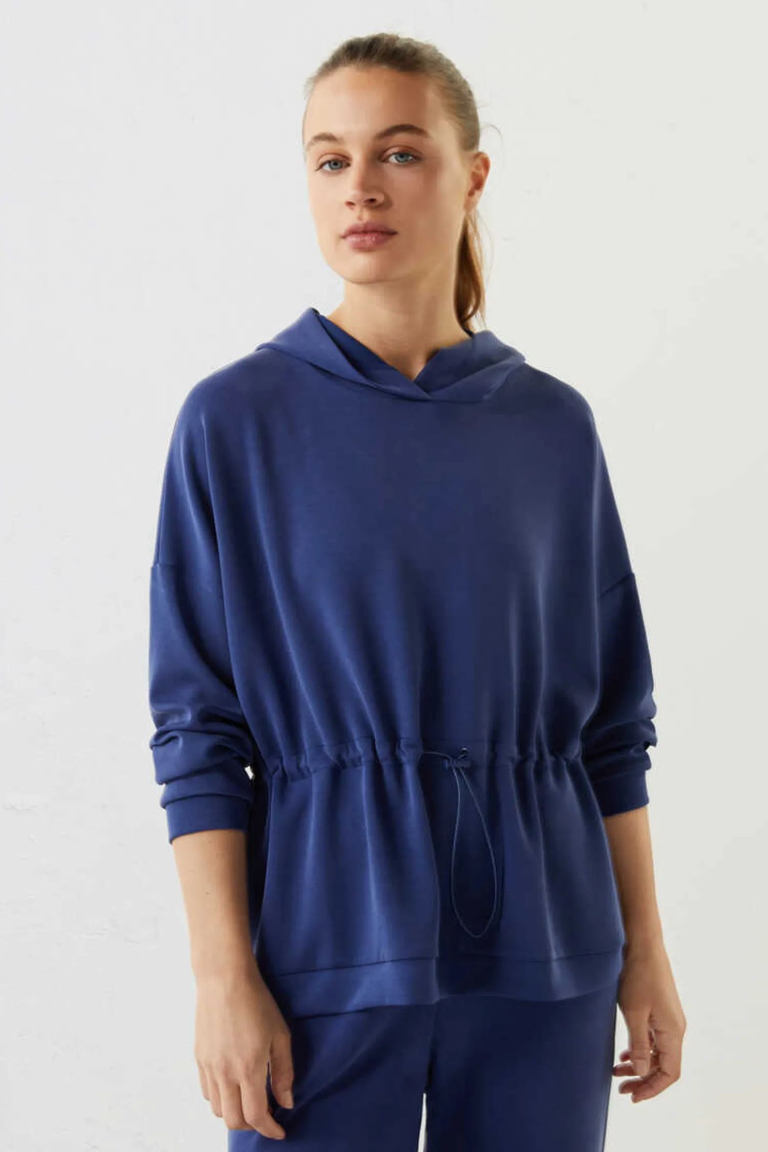 – Sweatshirt Com Tecido De Tato Suave, Super Agradavel, Numa Bonita Cor Azul-Escuro. Com Capuz, Punhos E Pormenor De Cintura Ajustavel Com Cordao Elastico I … Nterior.