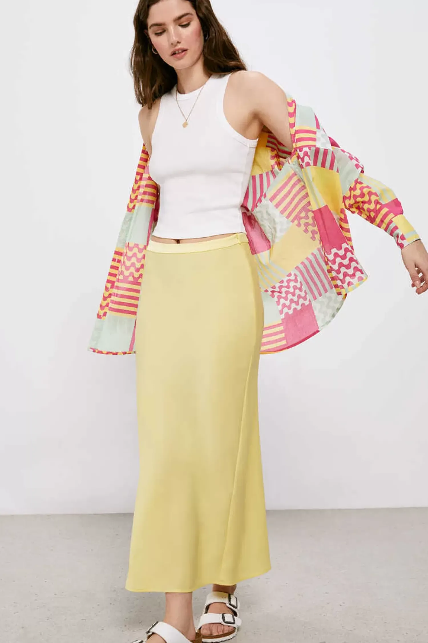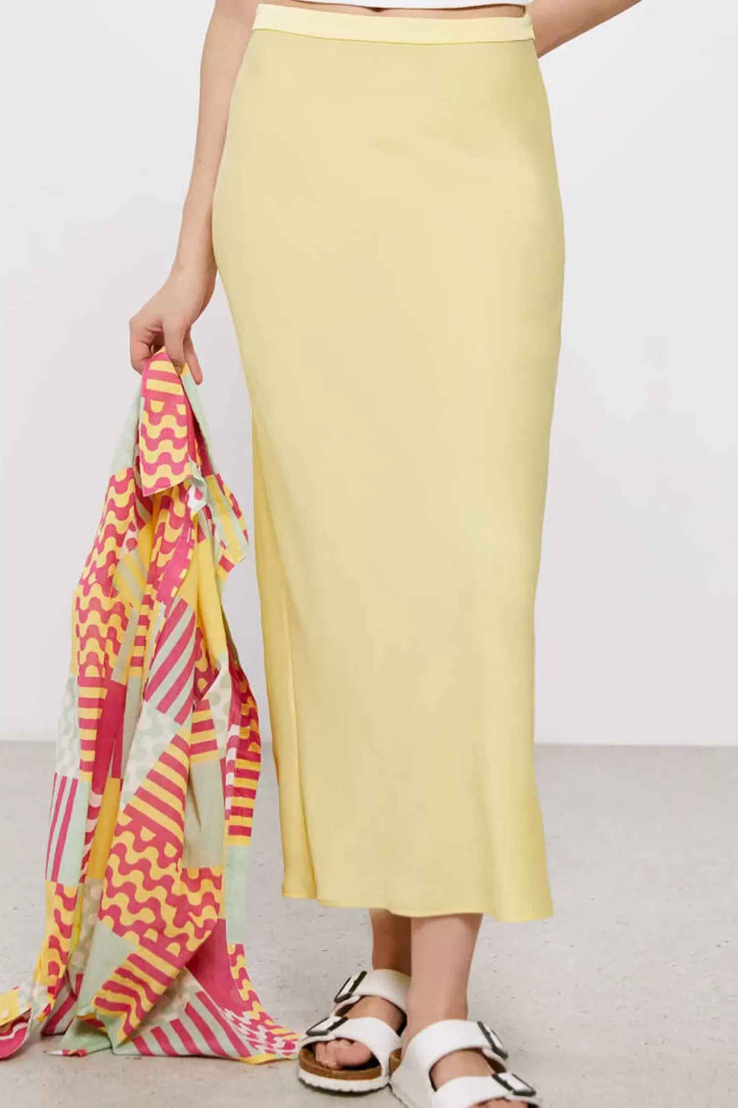 Saia Midi Com Fecho-Eclair Invisivel E Com Efeito Acetinado.