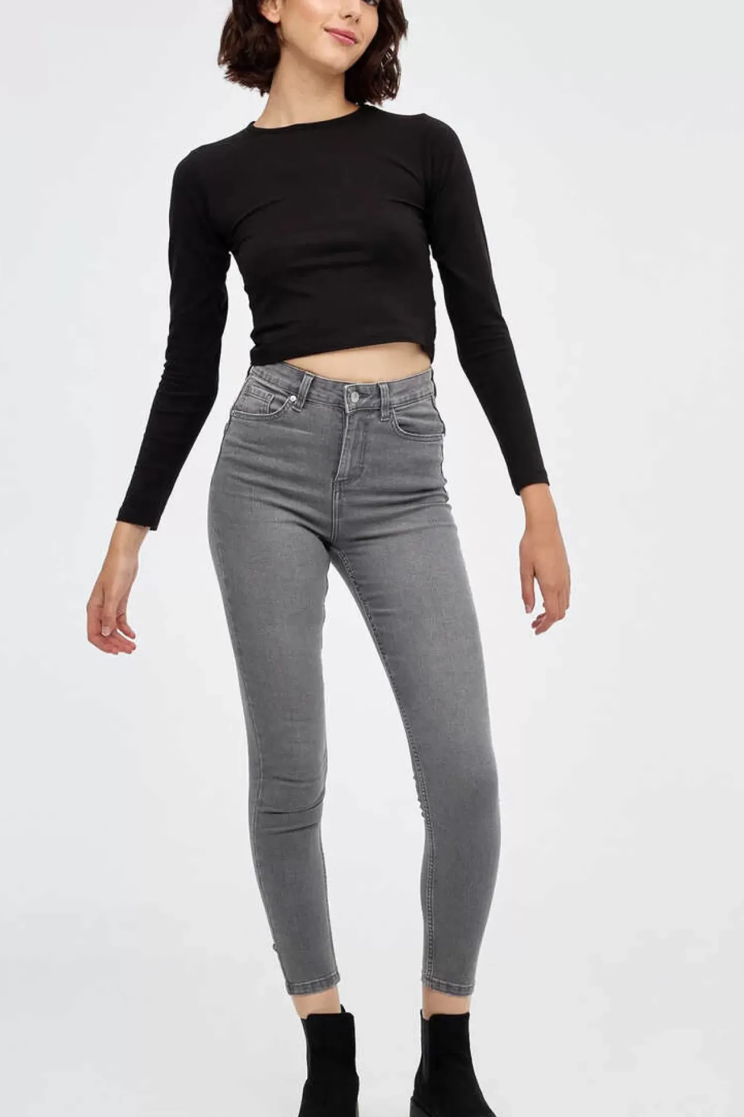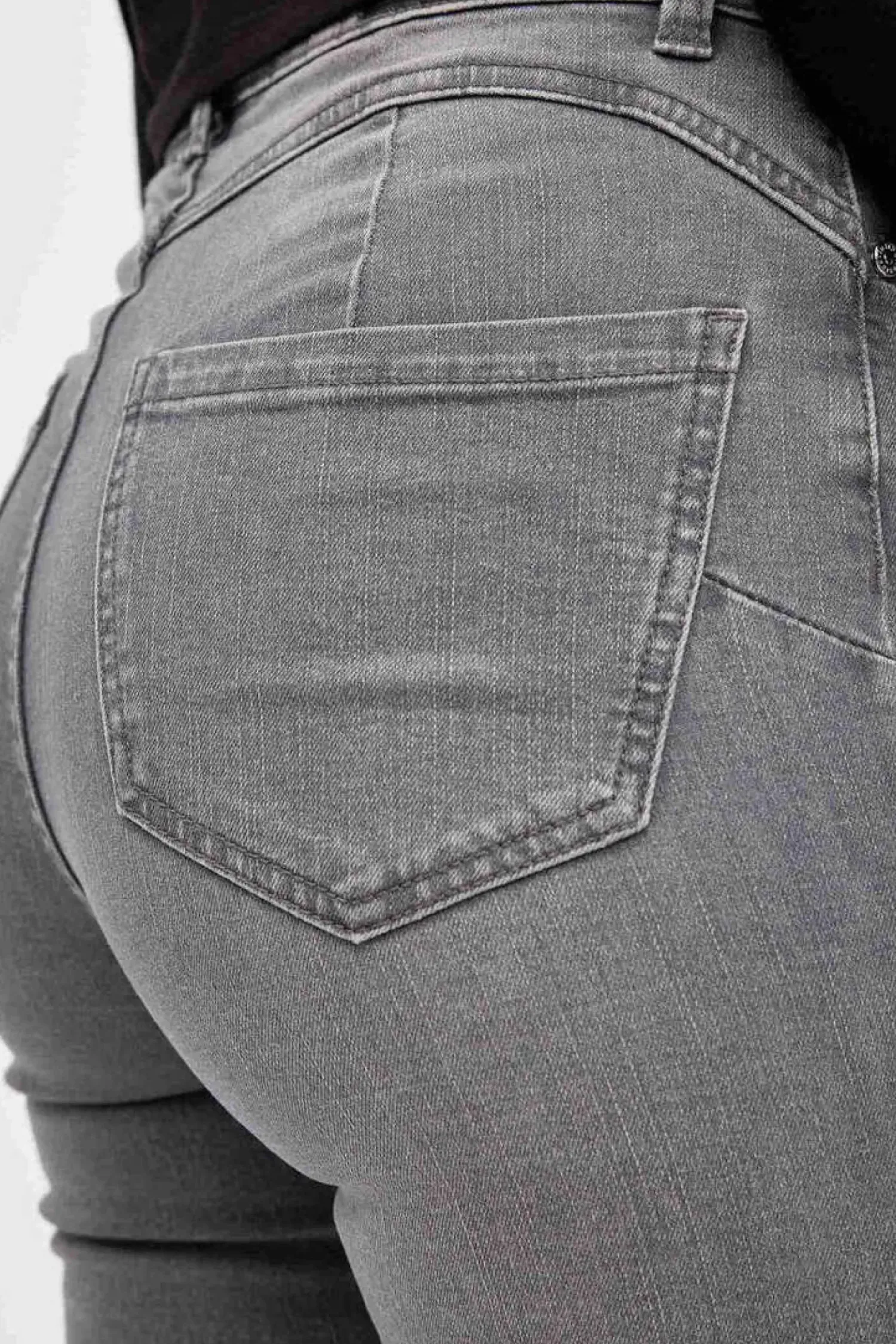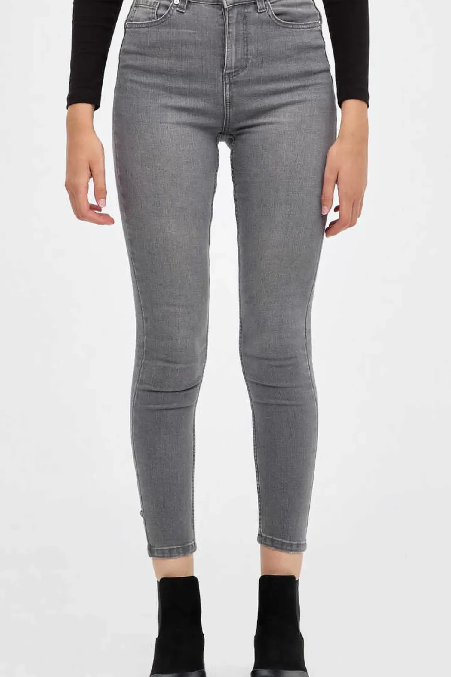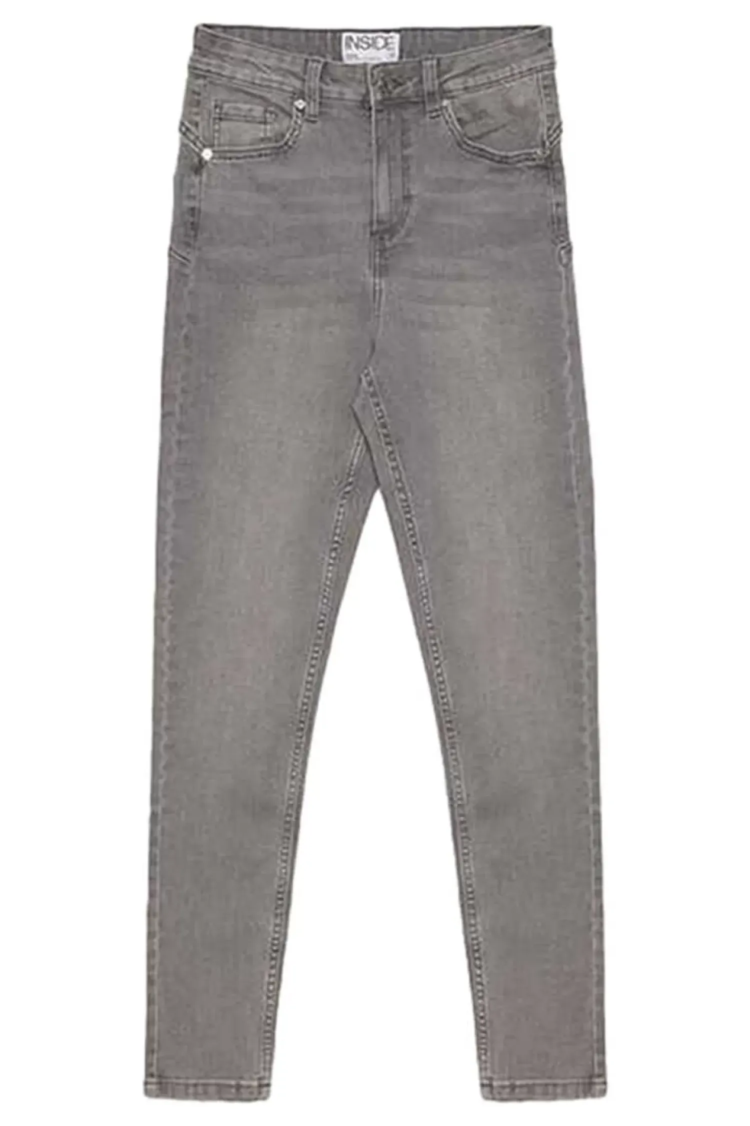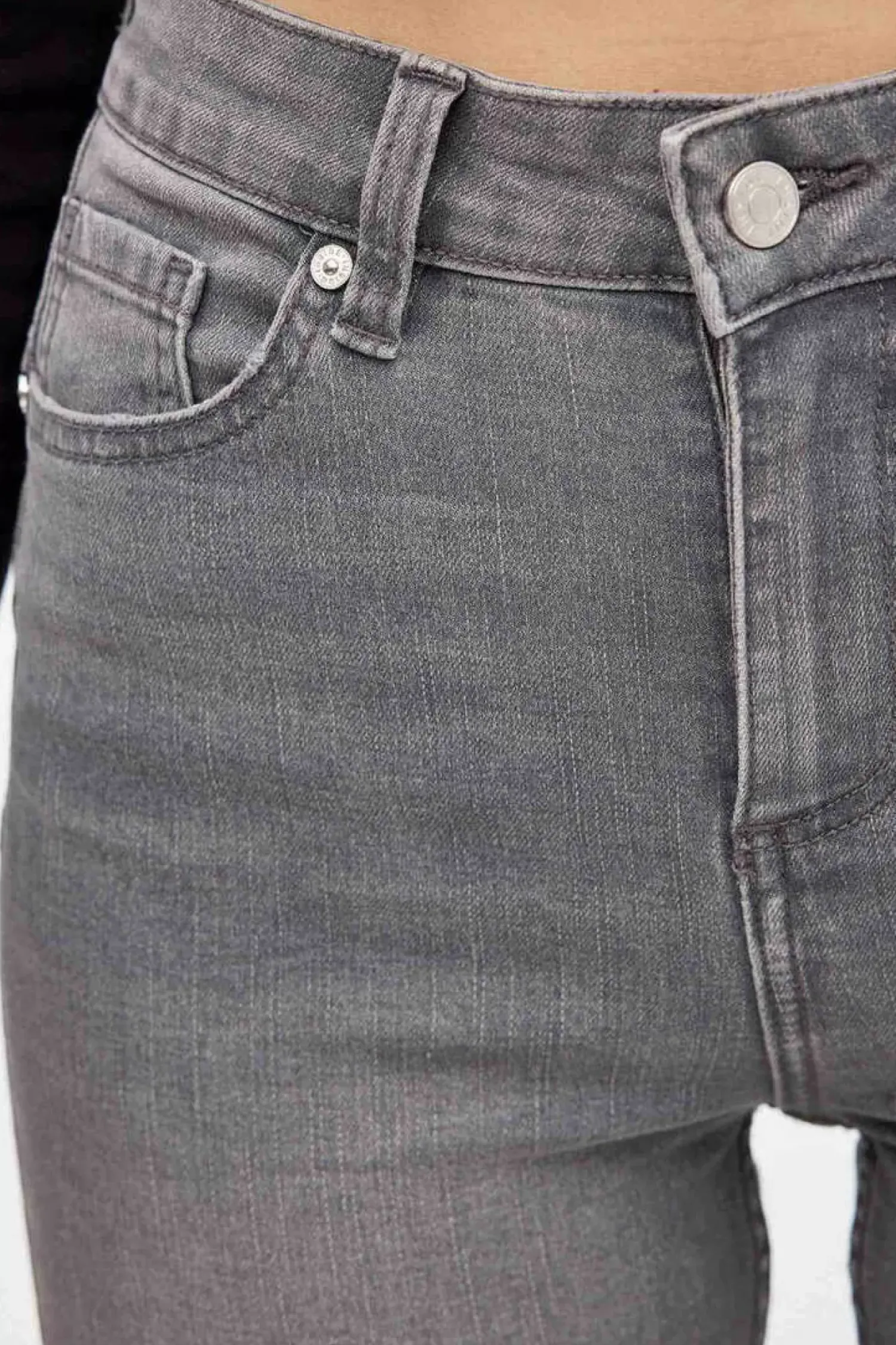 Jeans Skinny Efeito Push Up De Cintura Media De Tecido Denim Cinzento Com Bolsos E Fecho-Eclair Com Botao.