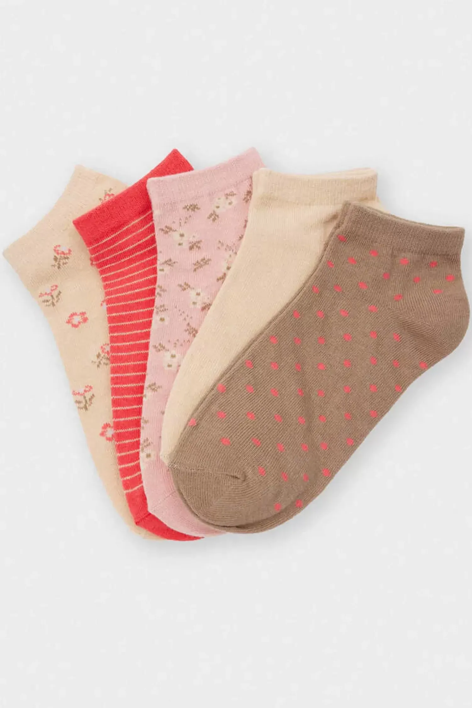 Conjunto De 5 Meias Pelo Tornozelo Com Varios Estampados.