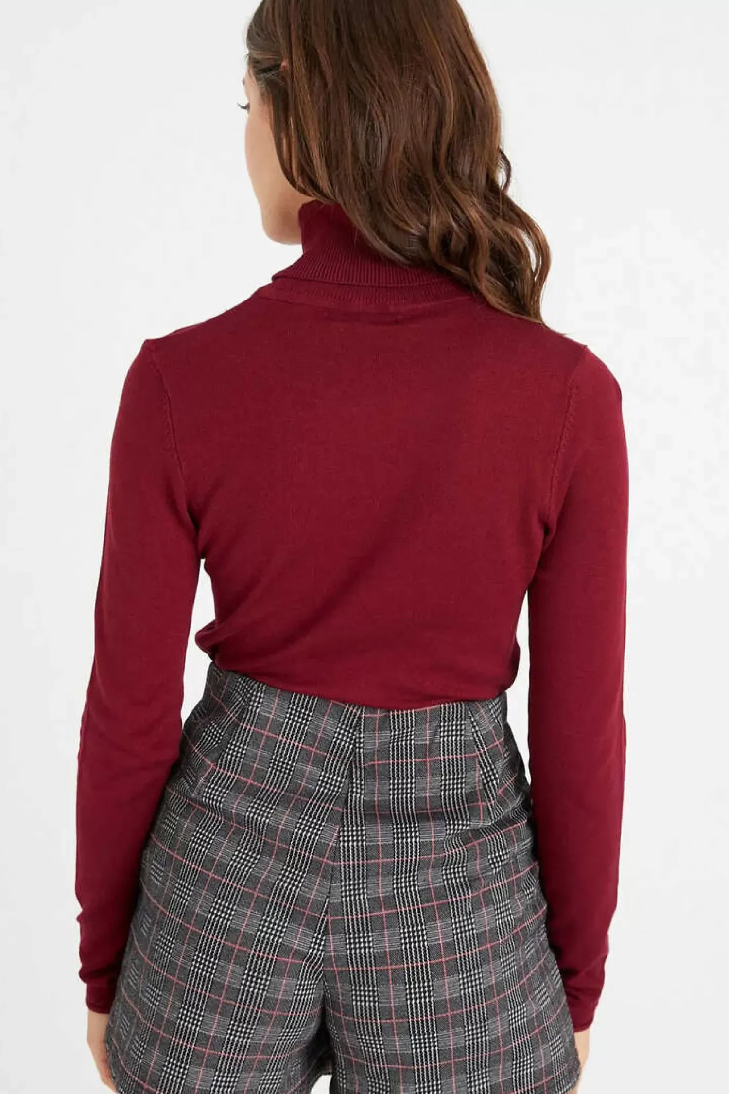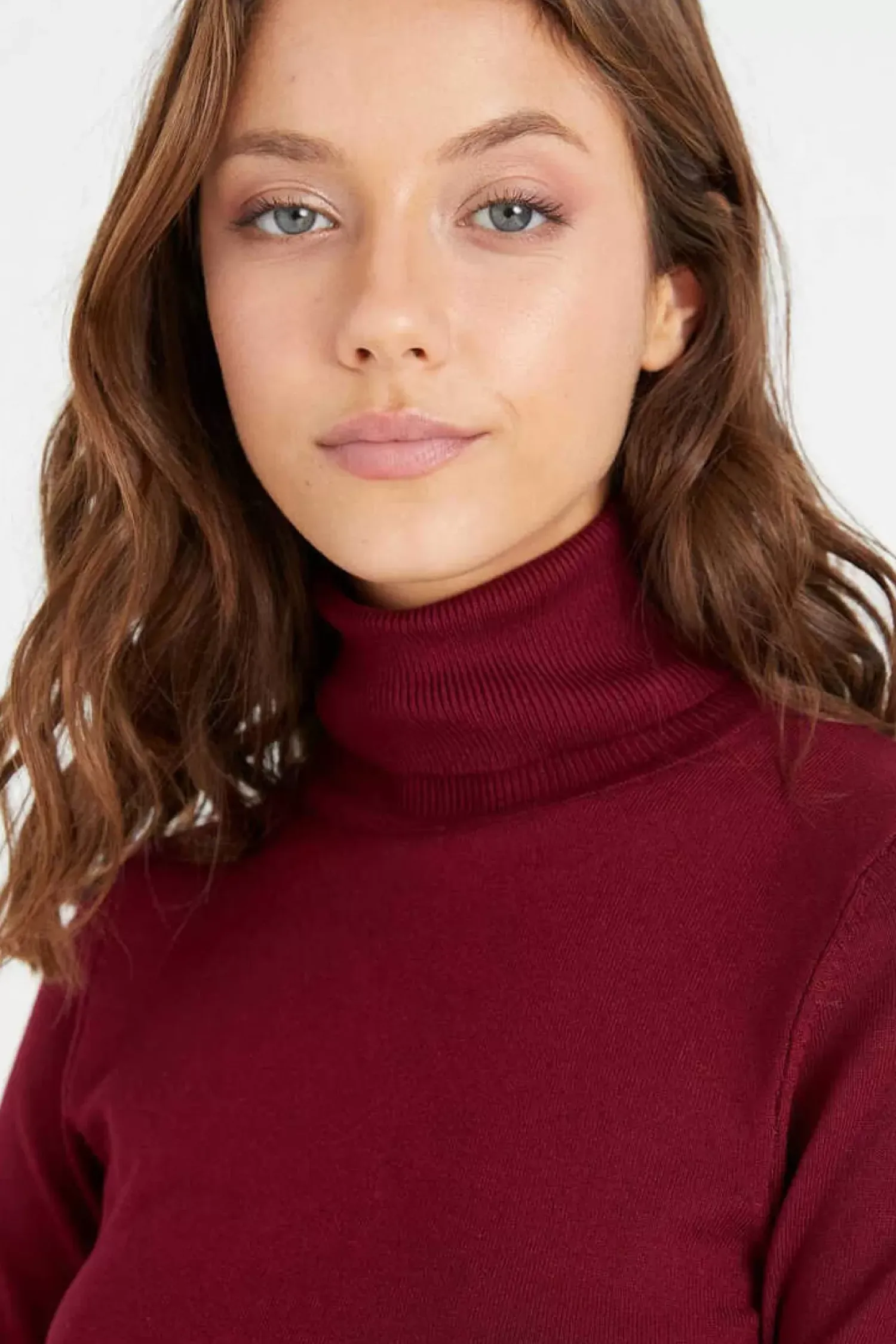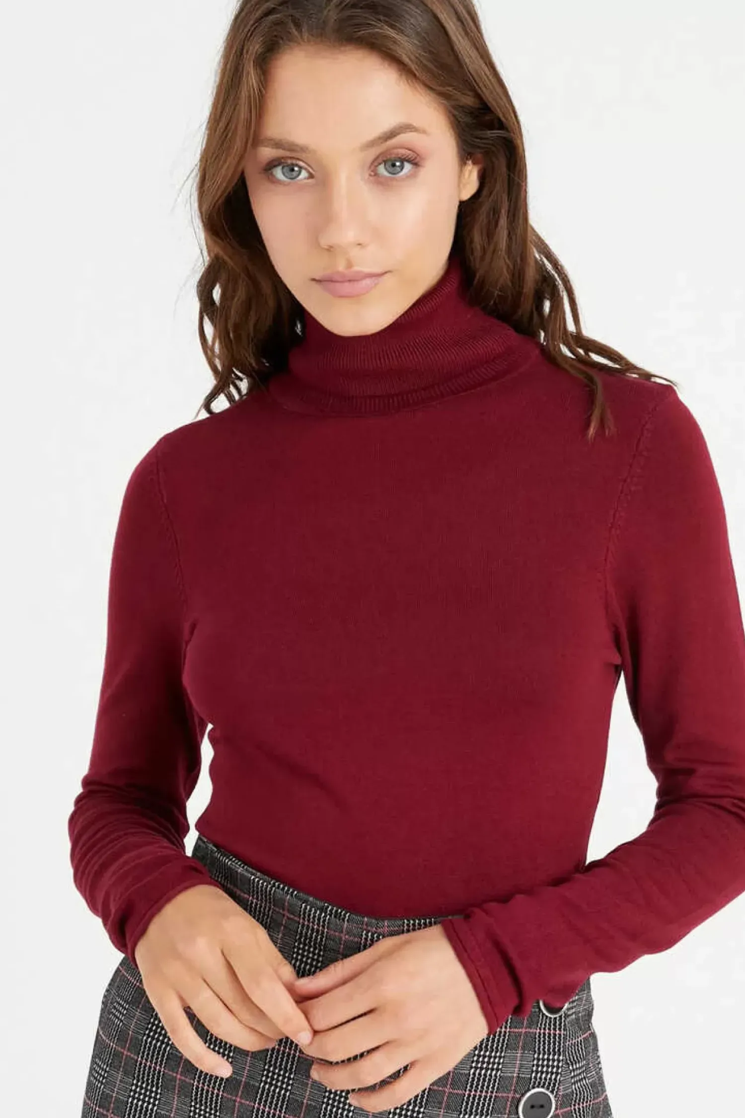 Camisola Slim De Malha De Manga Comprida E Gola Alta Em Varias Cores.