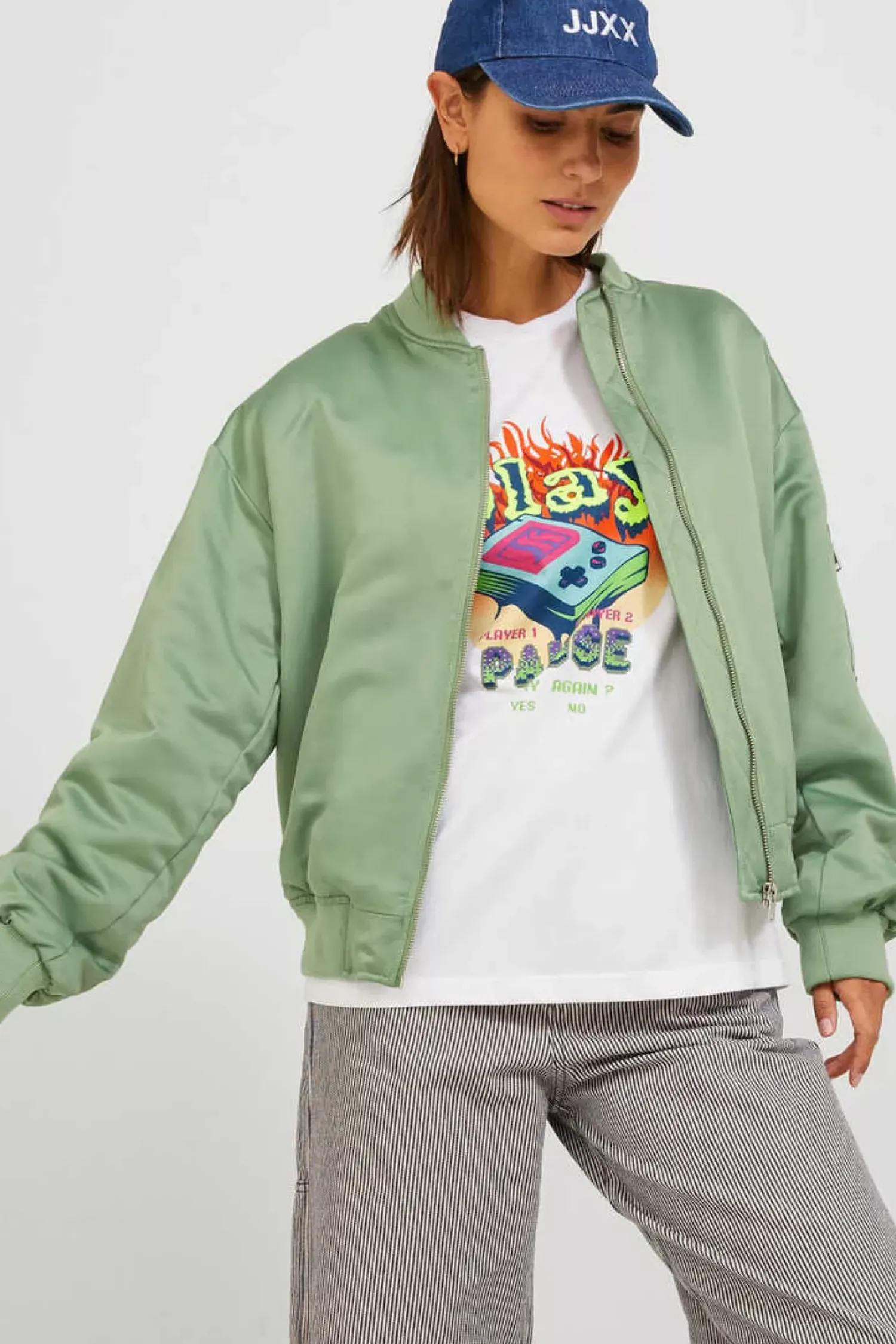 Blusao Bomber Acetinado. Gola Redonda. Punhos Canelados. Com Fecho-Eclair. Completamente Forrado Com Forro 100% Poliester. Resistente Ao Vento. A Modelo Leva O … Tamanho SVer Mais