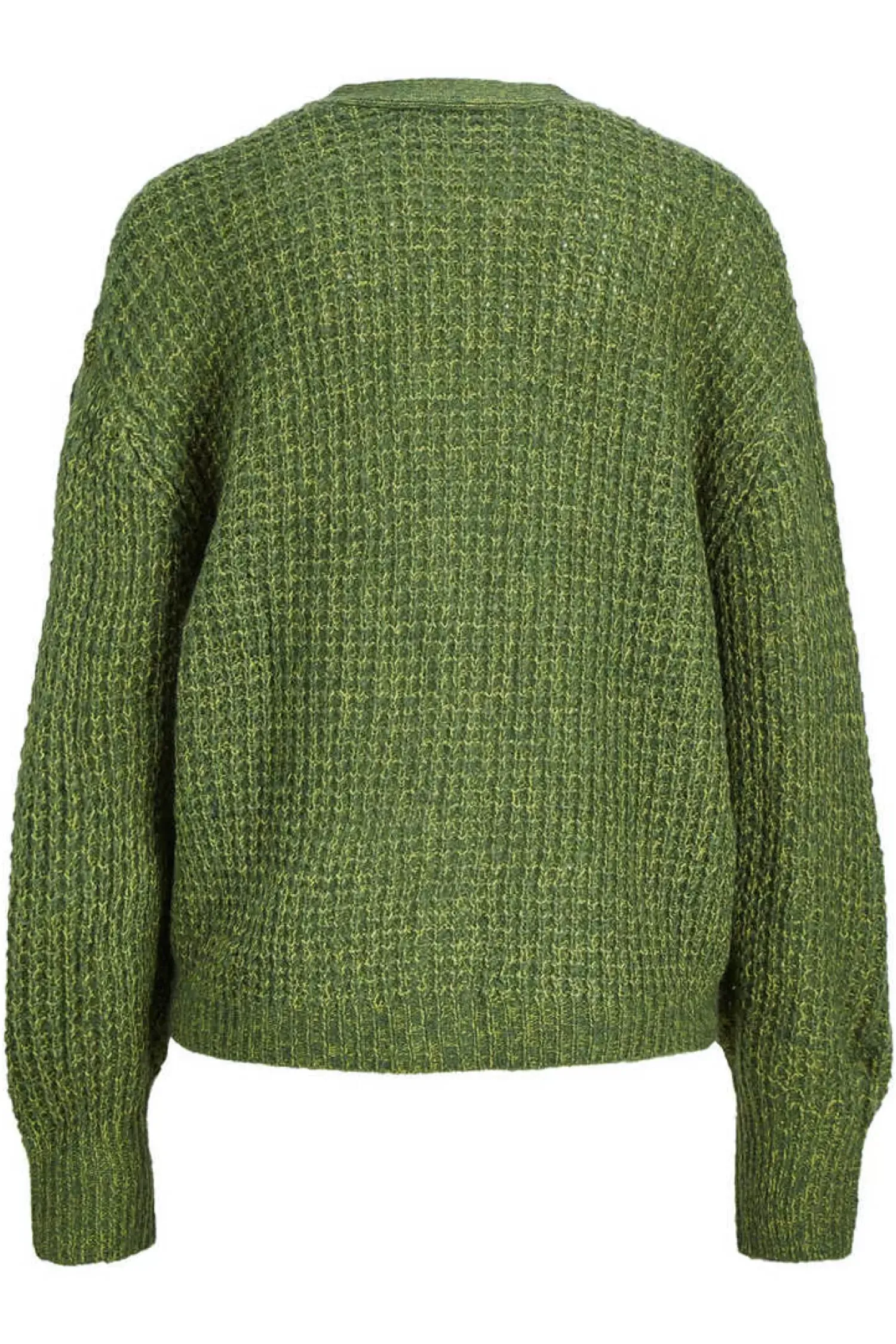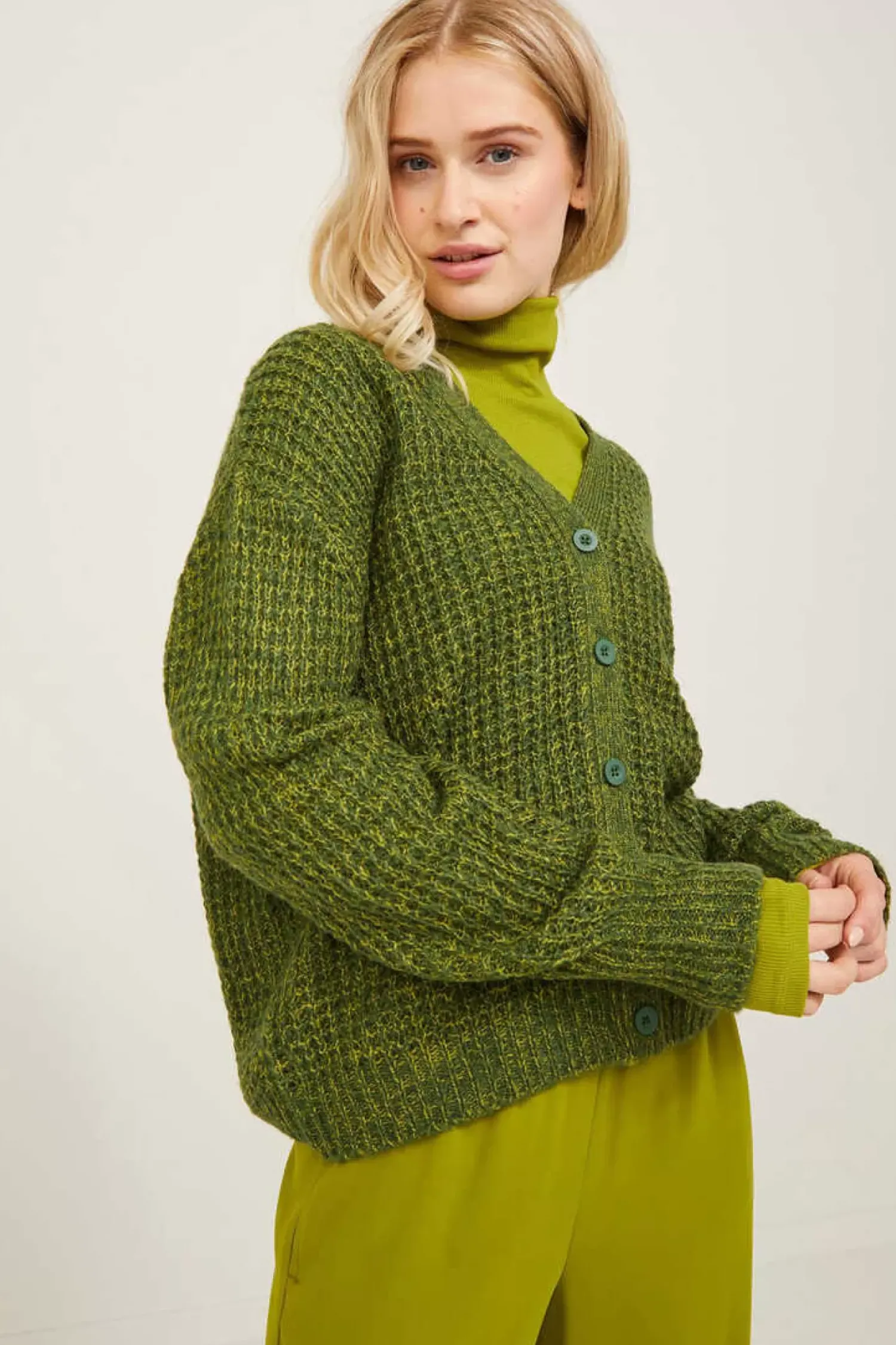Casaco De Malha Estruturado De Manga Comprida E Gola Em O. Fecho Com Botoes No Tom.
