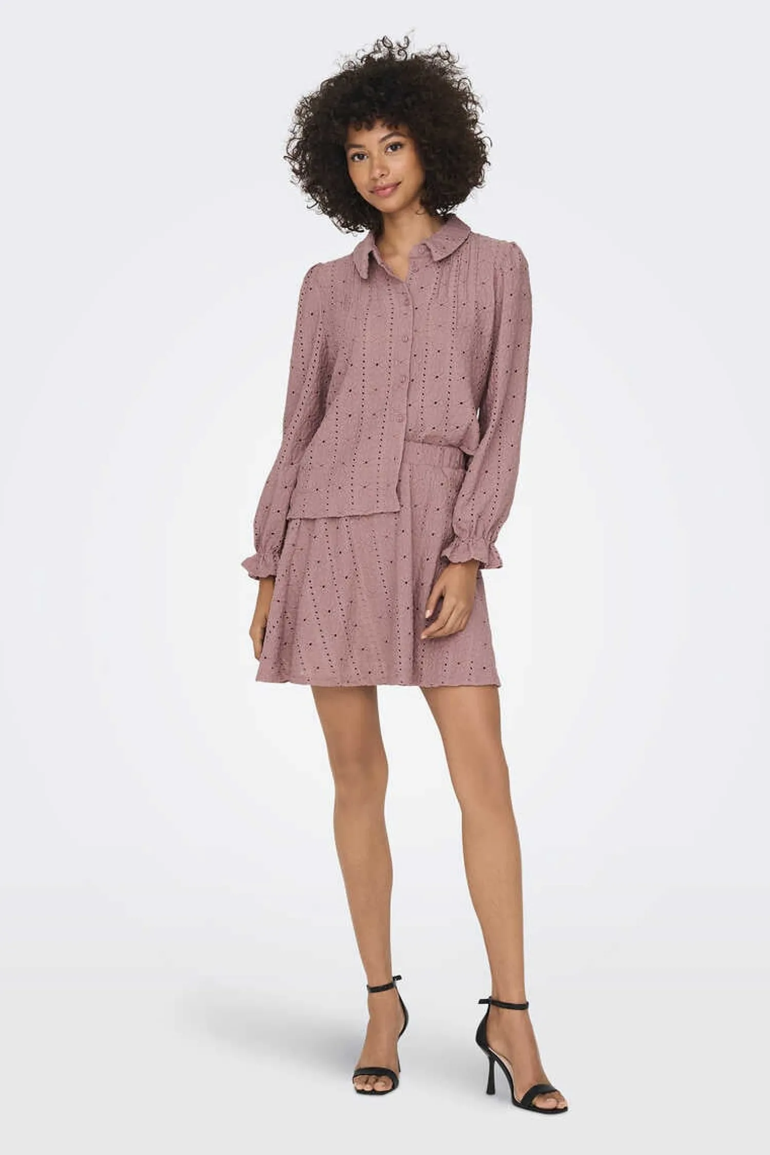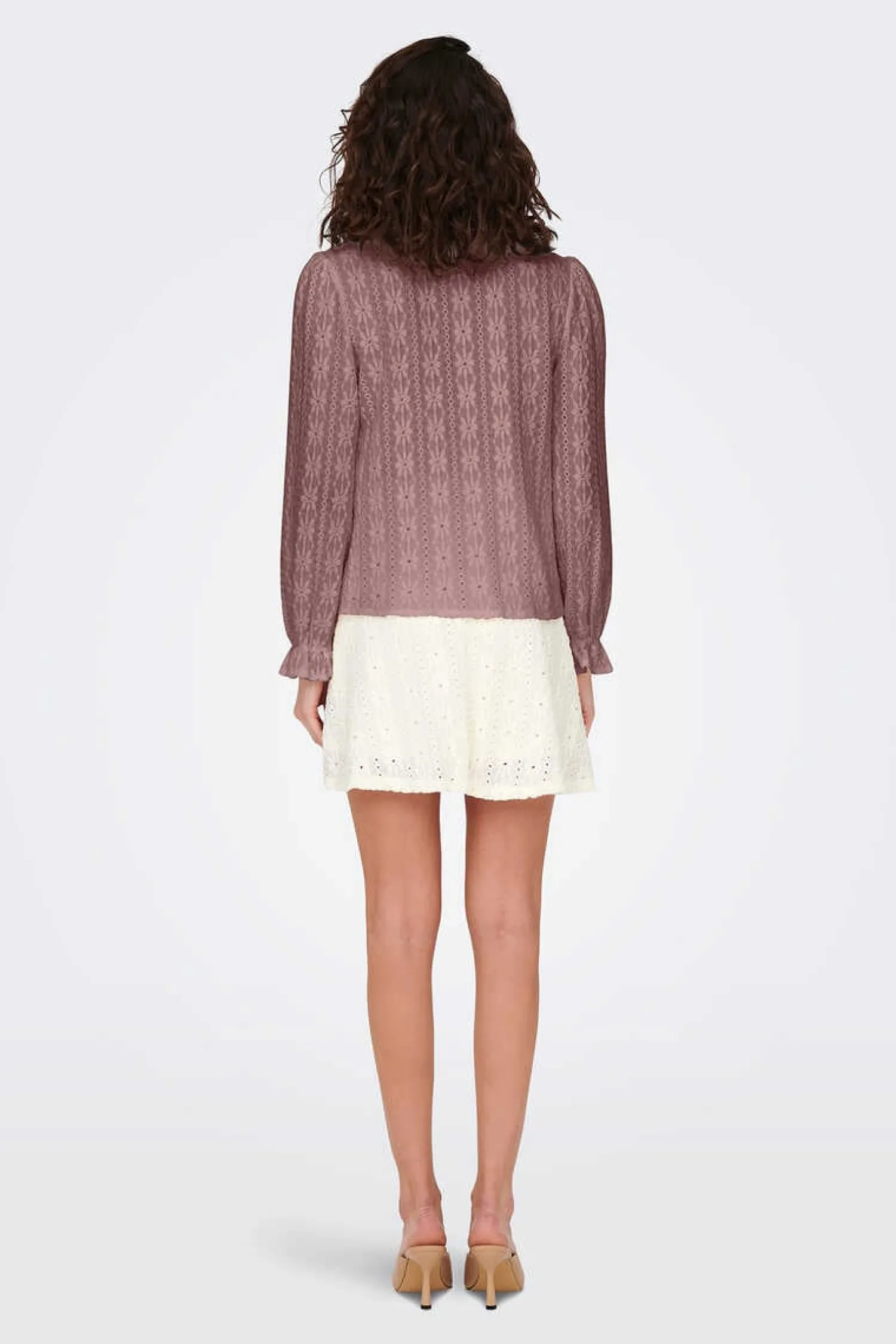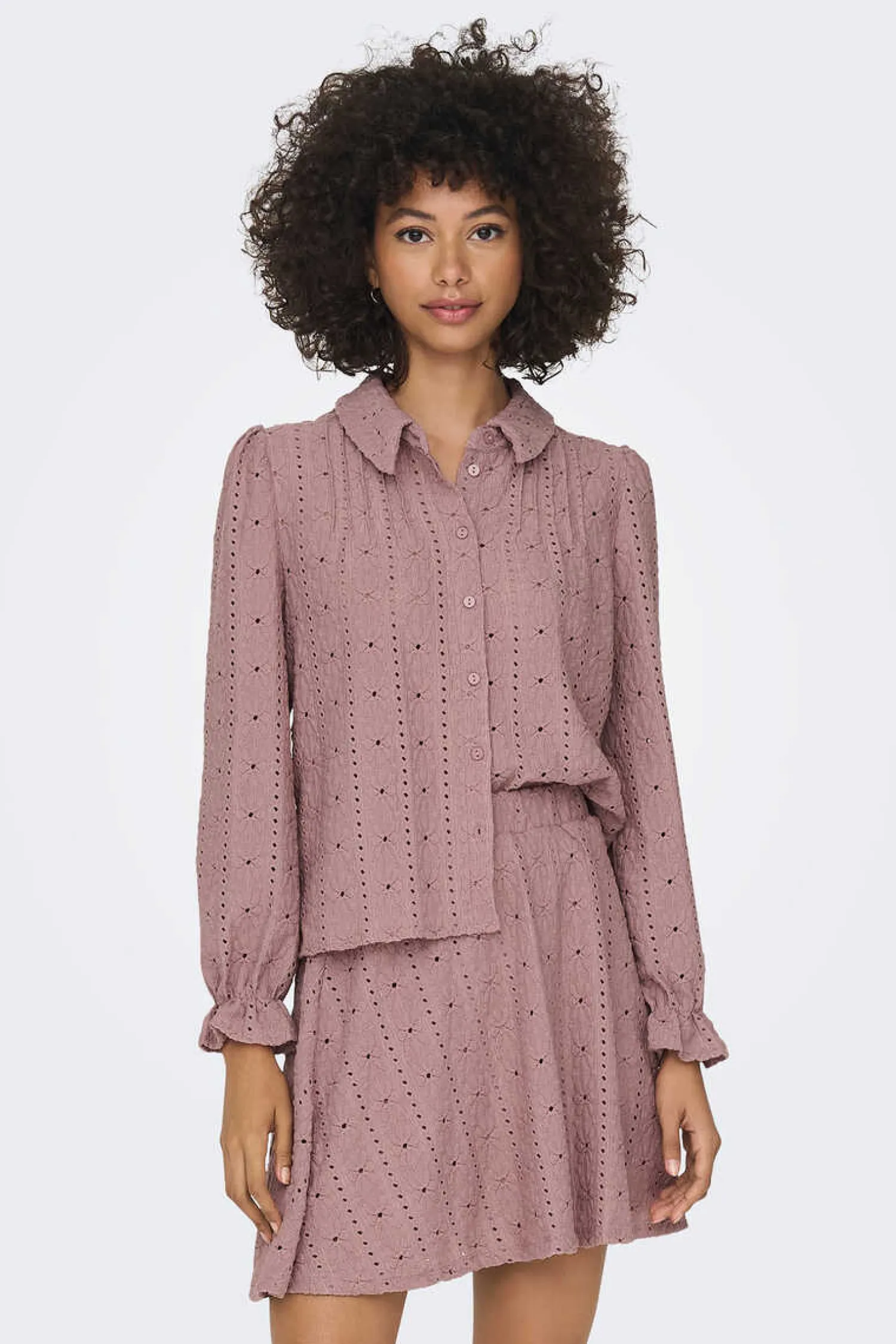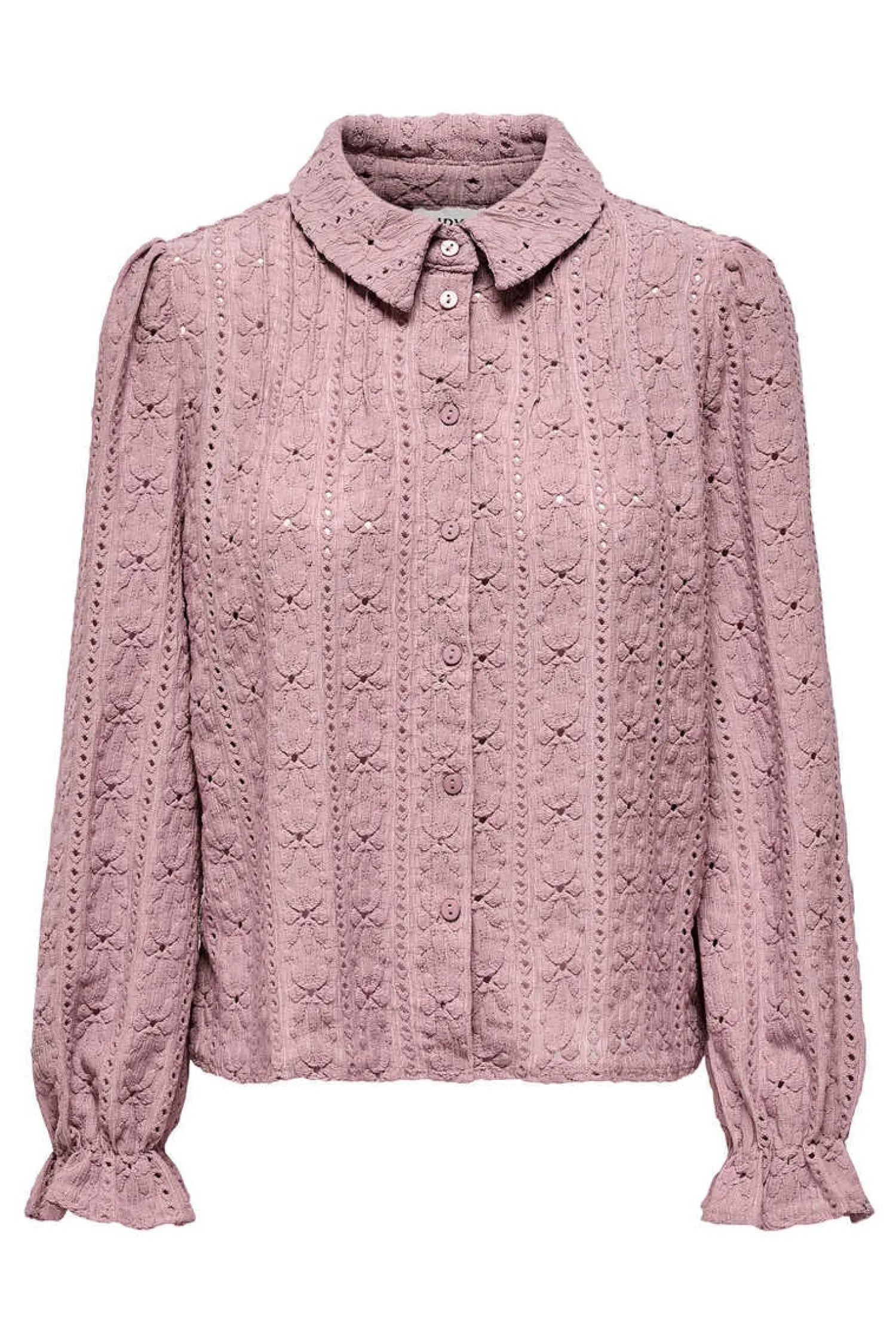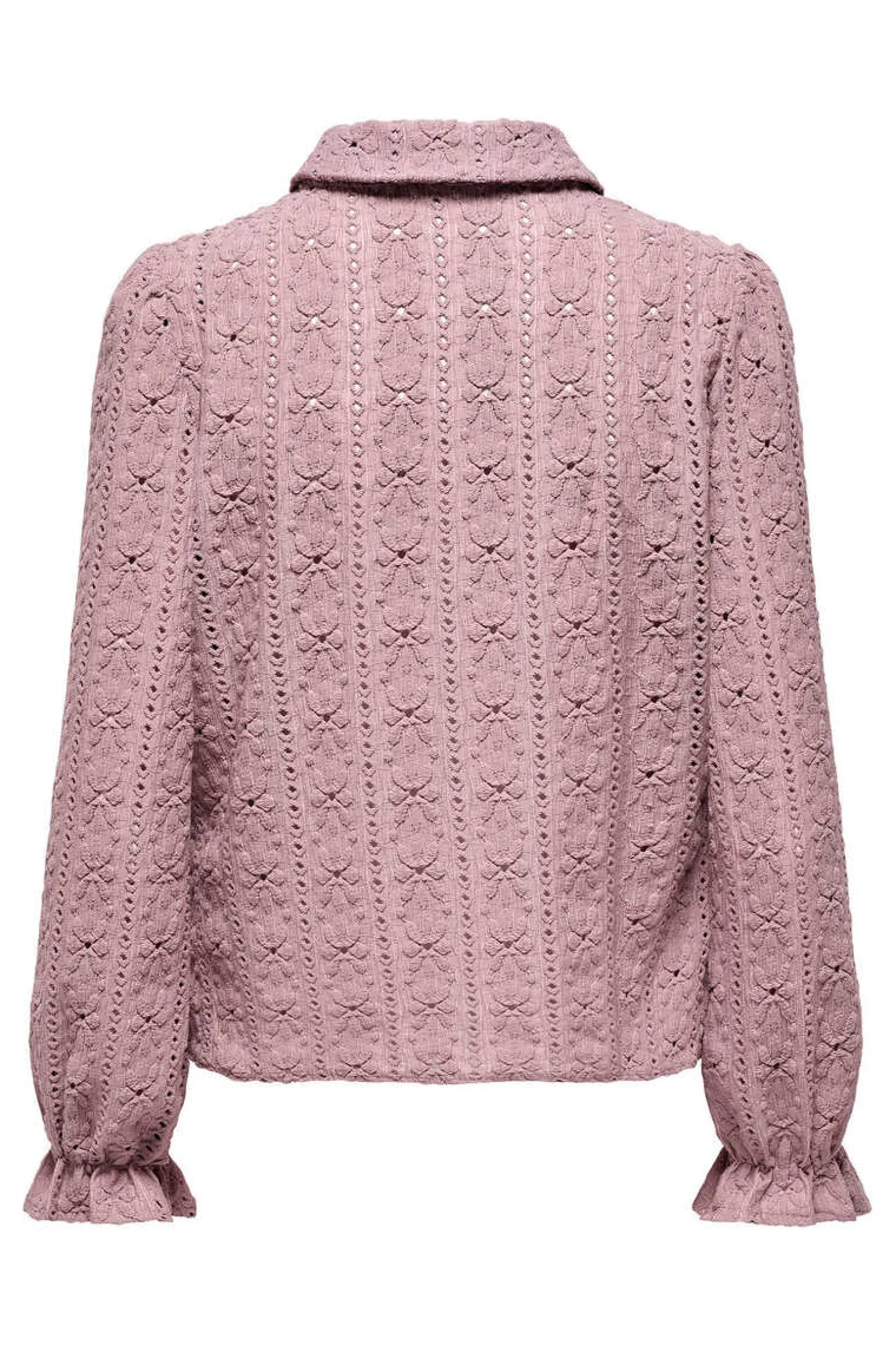 Camisa De Manga Comprida Abalonada Com Elastico No Punho E Detalhes Em Croche. Botoes Frontais.