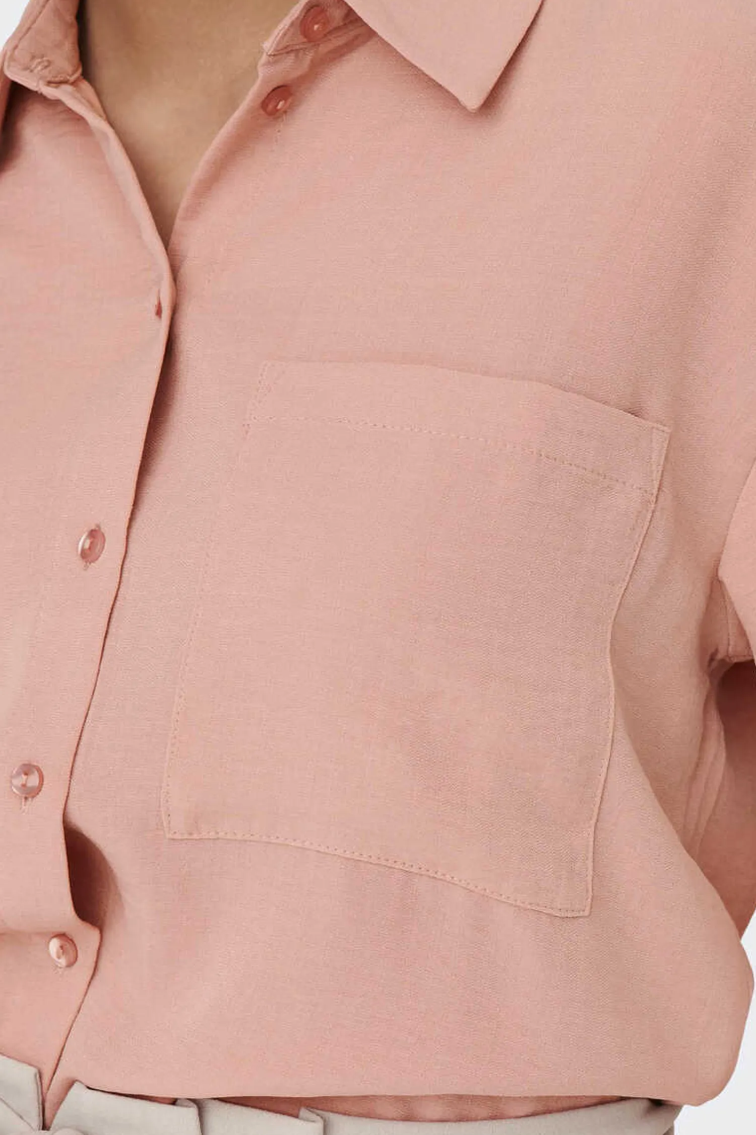 Camisa Com Manga 3/4, Gola Camiseira, Fecho Com Botoes Frontais E Bolso.