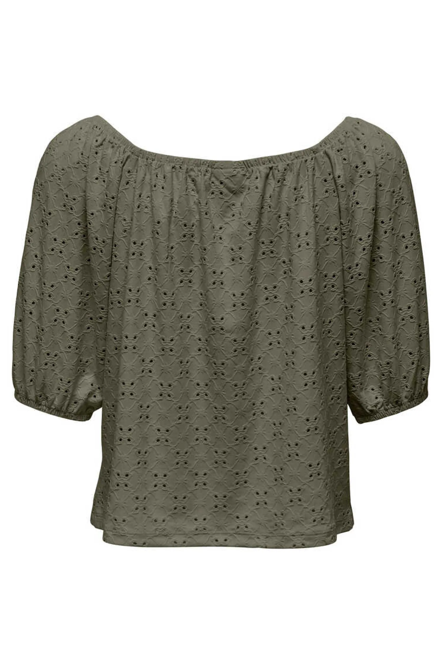Camisa Manga 3/4 Semi Abalonada, Gola A Barco E Detalhe Com Motivos Perfurados.