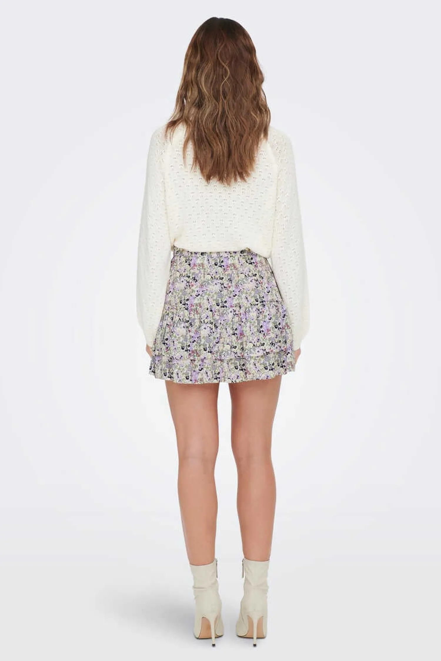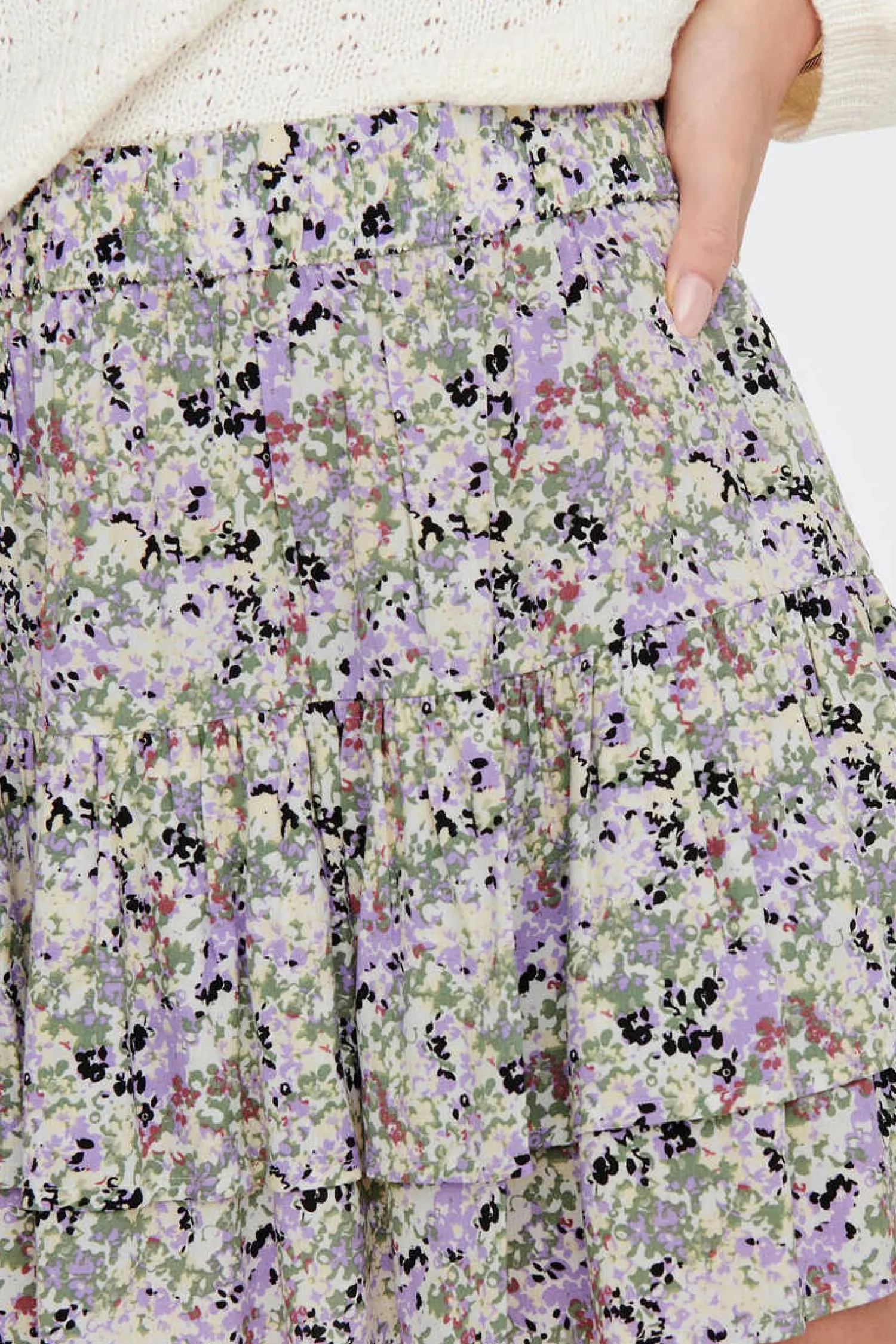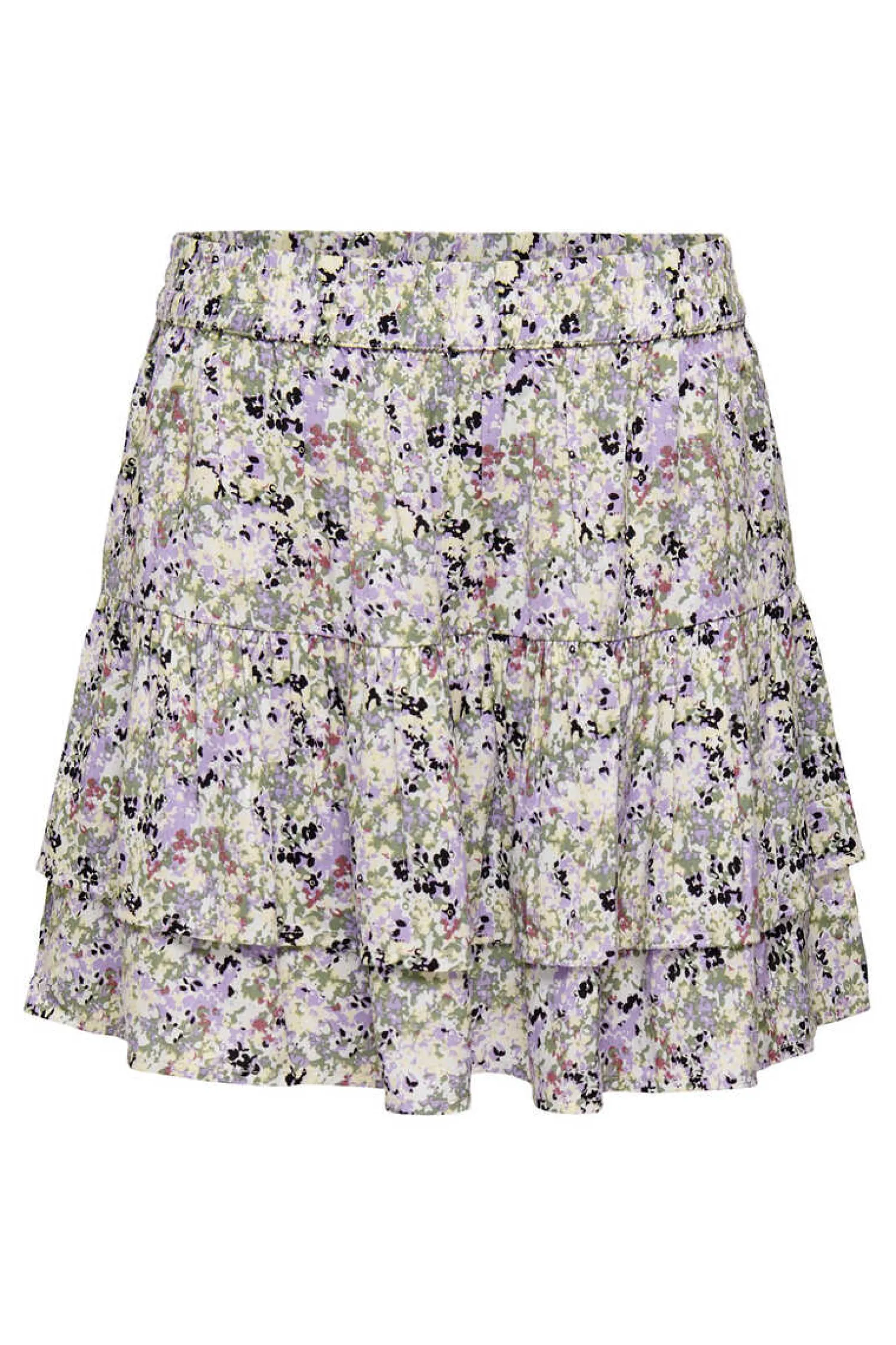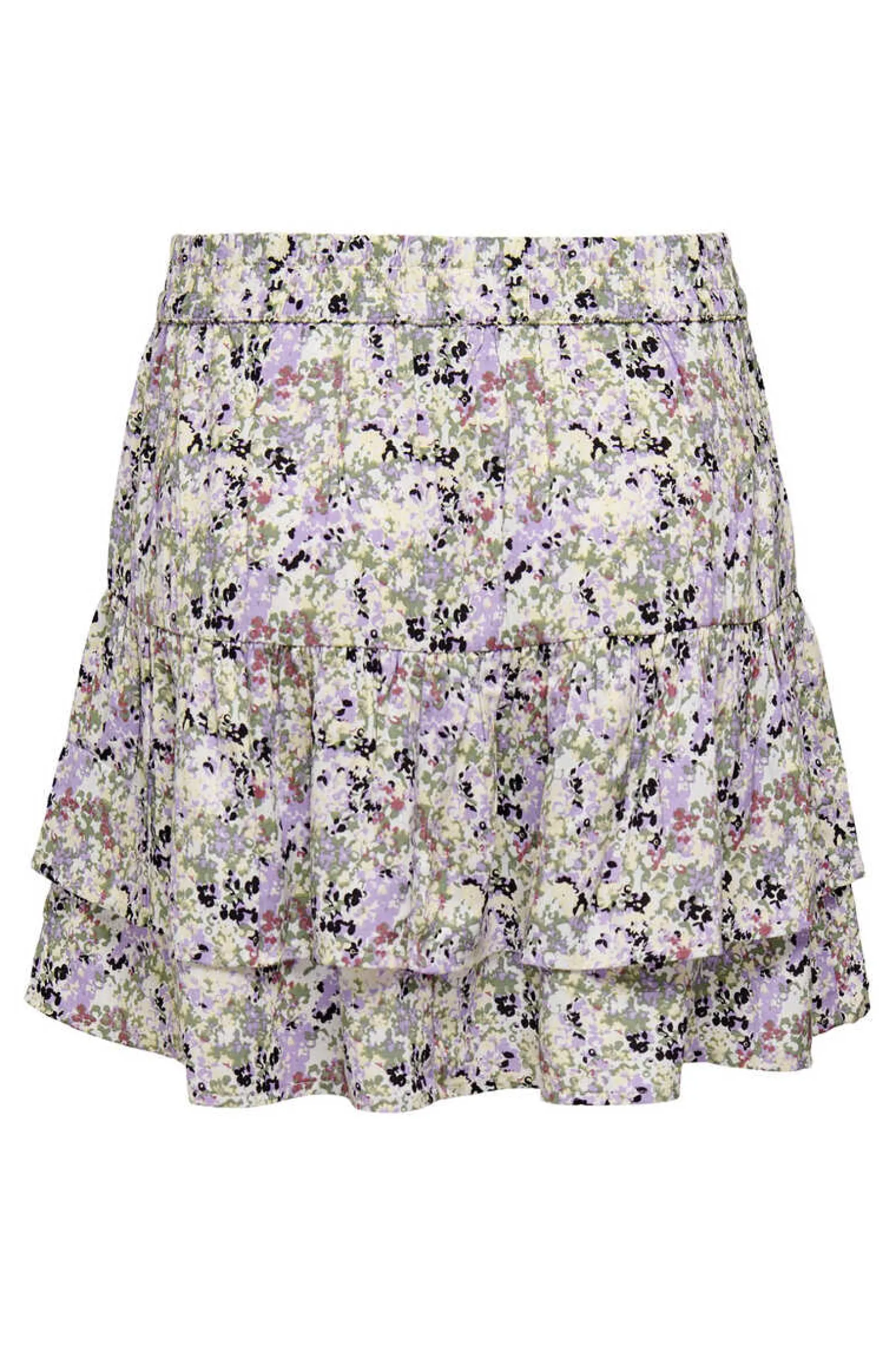 Minissaia Estampada Com Detalhes De Folhos. Cintura Elastica De Tecido Sustentavel.