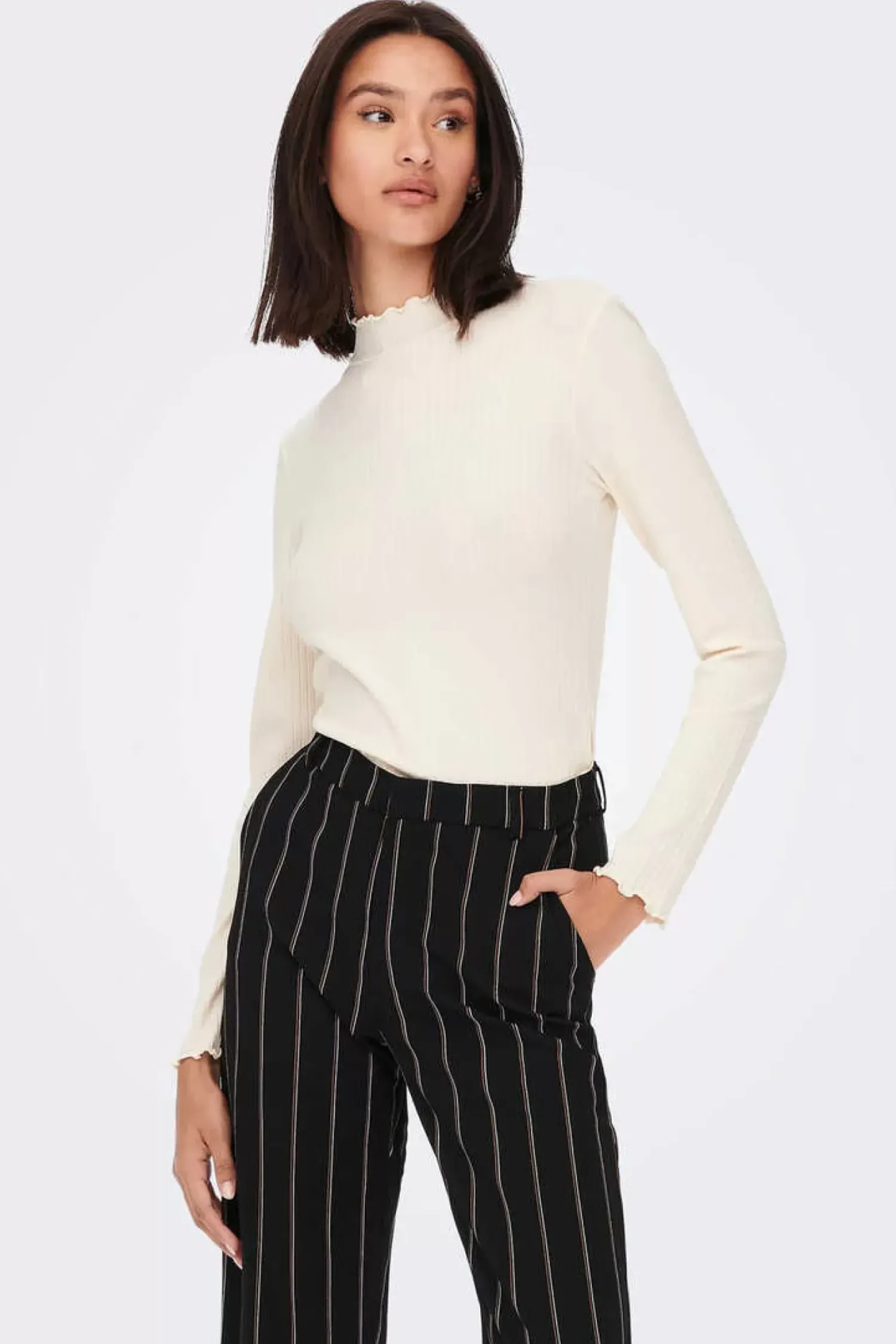 Tampo Com Tecido Nervurado, Mangas Compridas, Gola Perkins, Detalhe No Colarinho E Mangas.