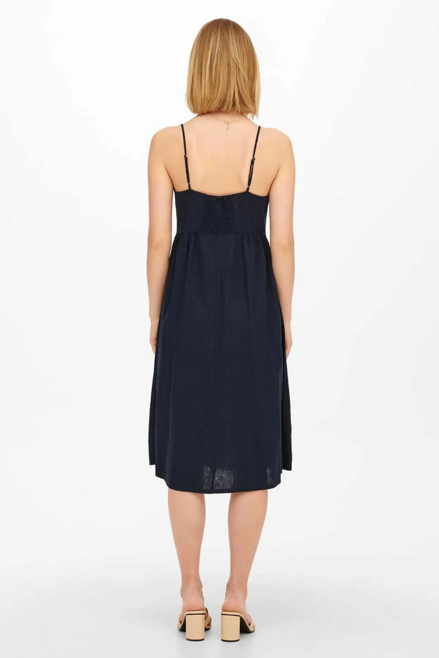 Vestido De Alcas Em Mistura De Linho. Fecho A Frente De Botoes.