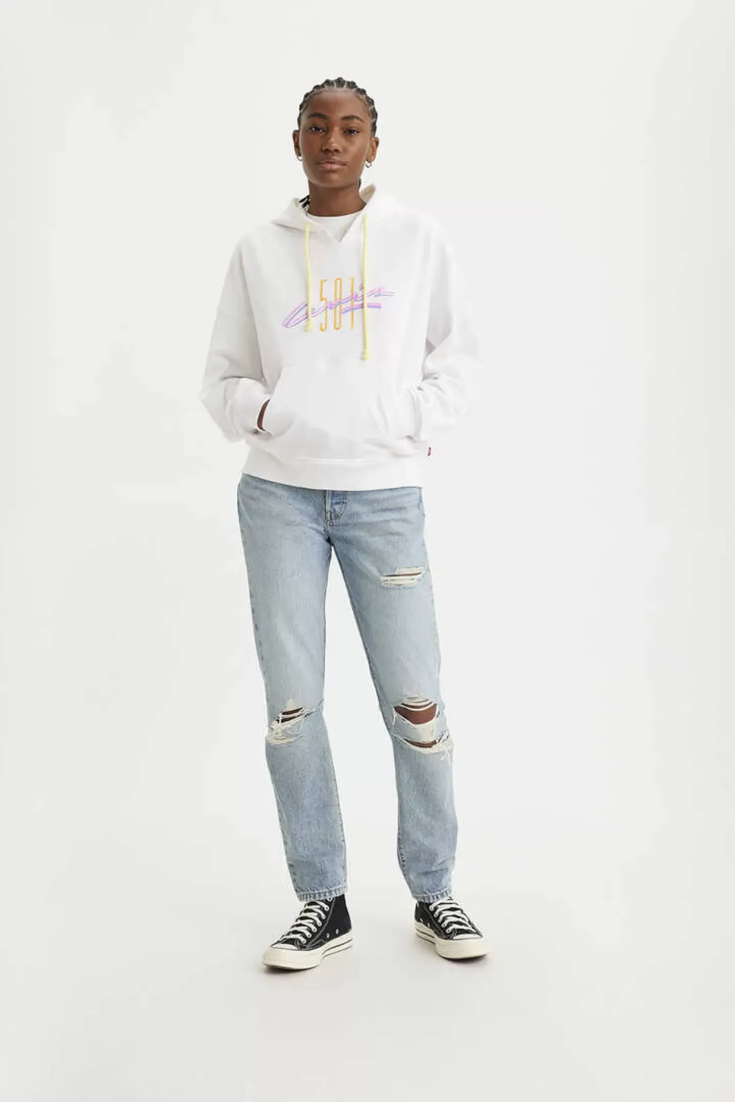 Sweatshirt De Algodao Com Capuz Branco. Tem Um Bolso Canguru E O Logotipo Levi’S® No Peito. Corte Padrao.