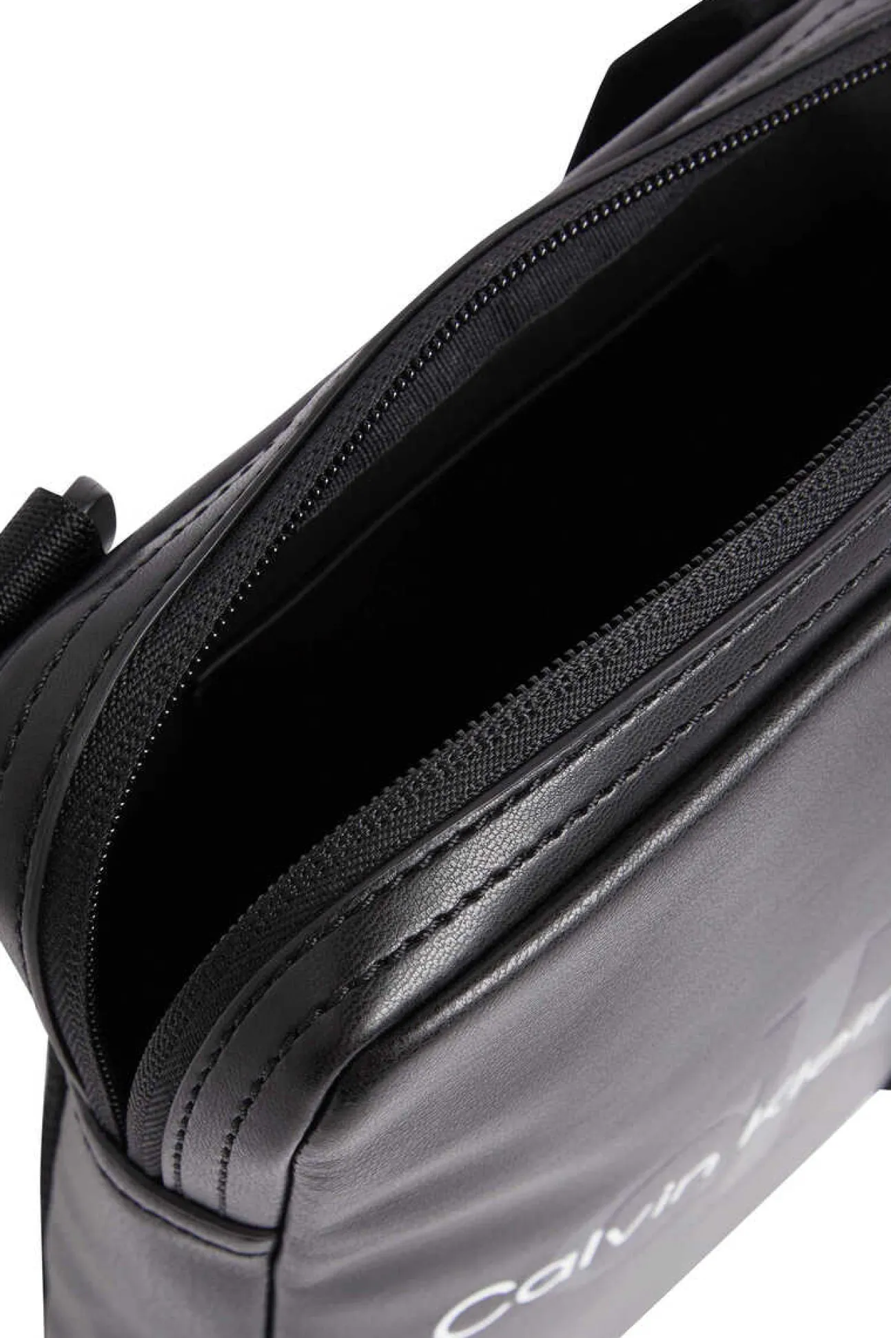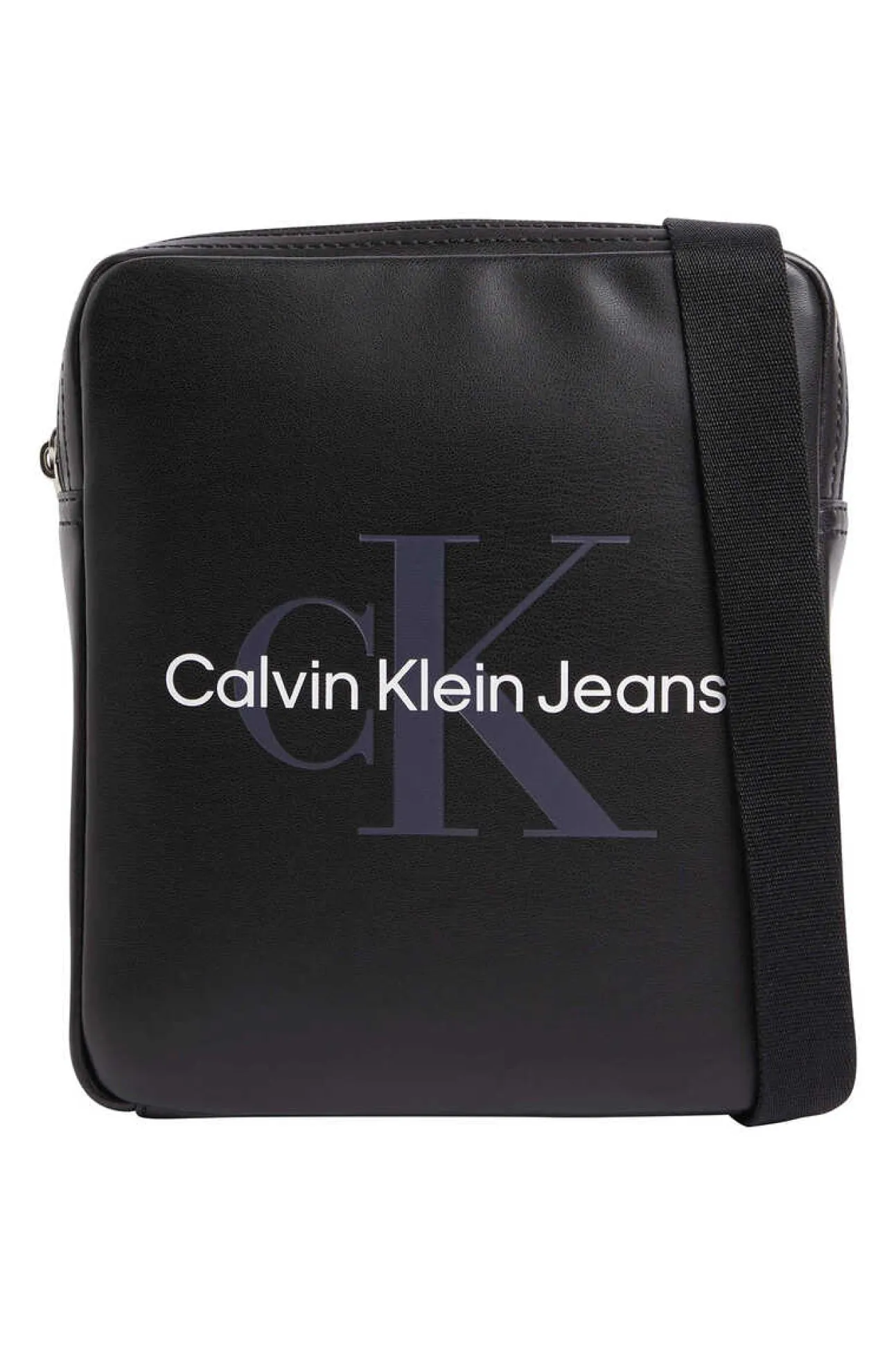 Mala De Tiracolo De Algodao Organico Ck De Homem, Cor Preta E Logo Frontal Em Azul E Branco