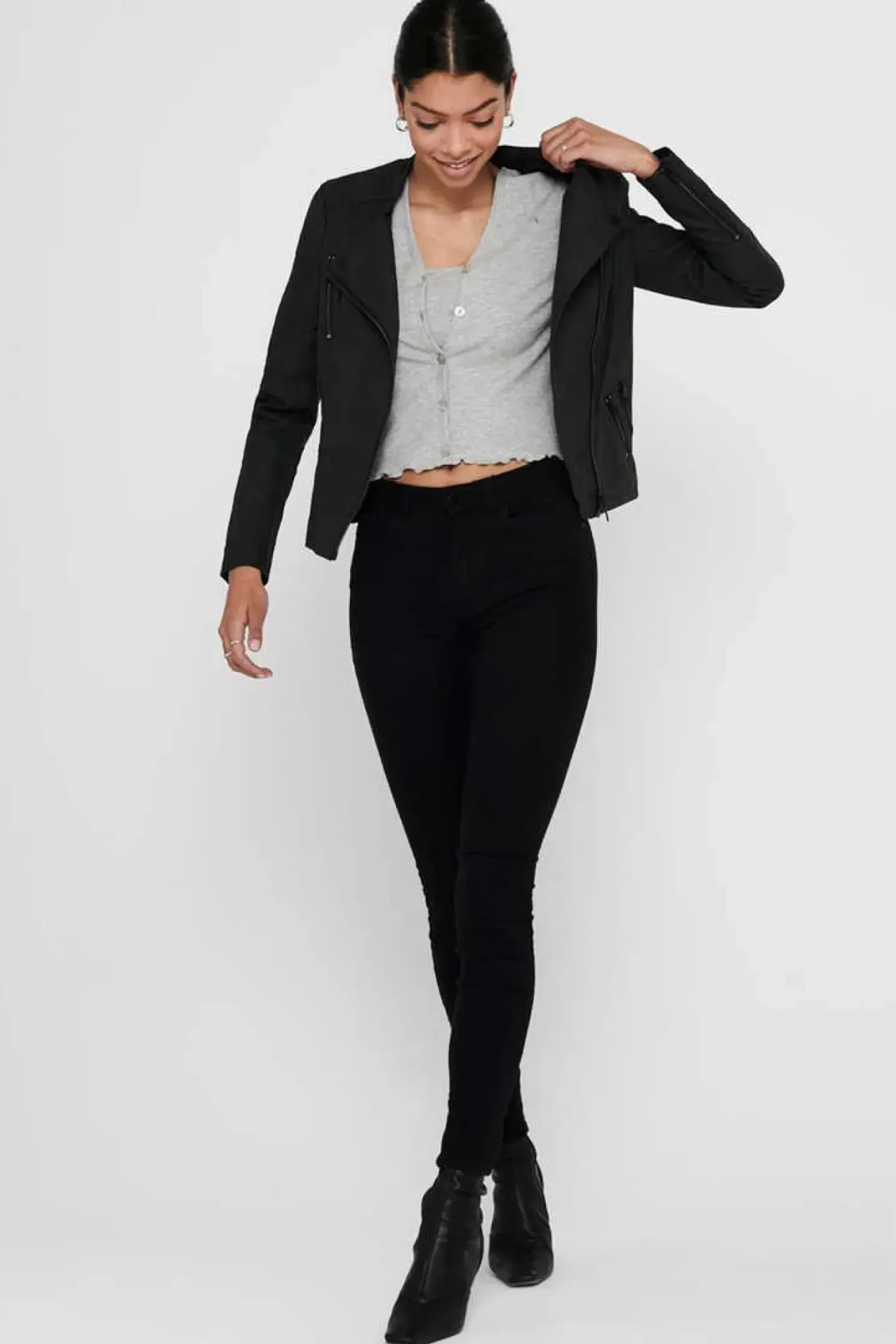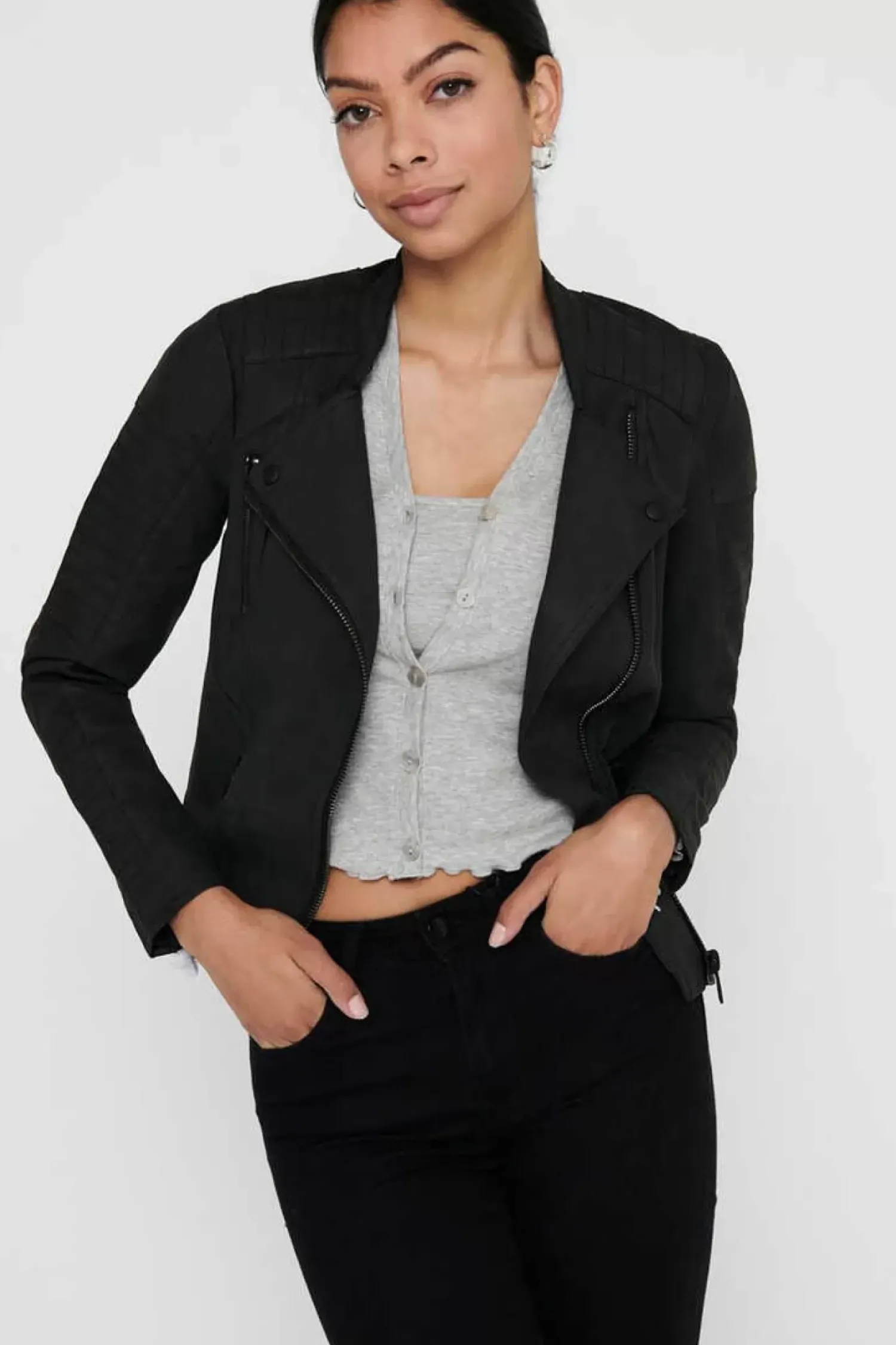 Bikerjacke Mit Asymmetrischem Reisverschluss Und Reisverschlusstaschen.