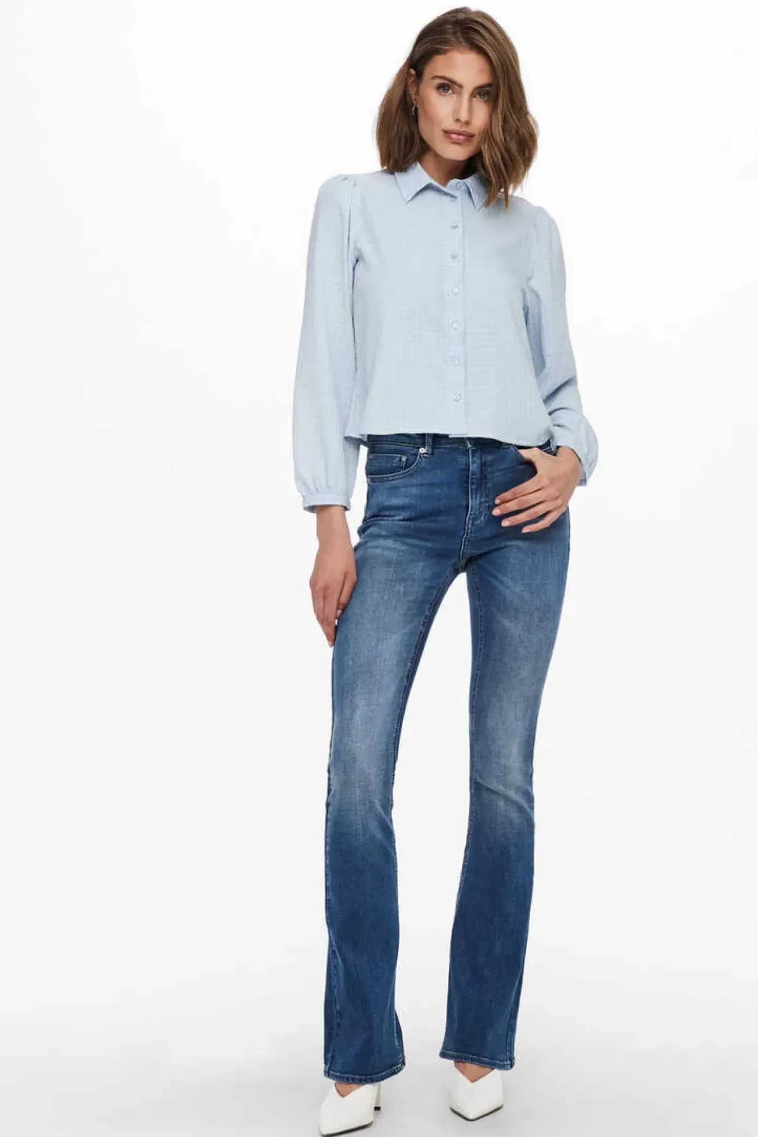 Jeans De Corte Flare, Cor Lisa, E 5 Bolsos.