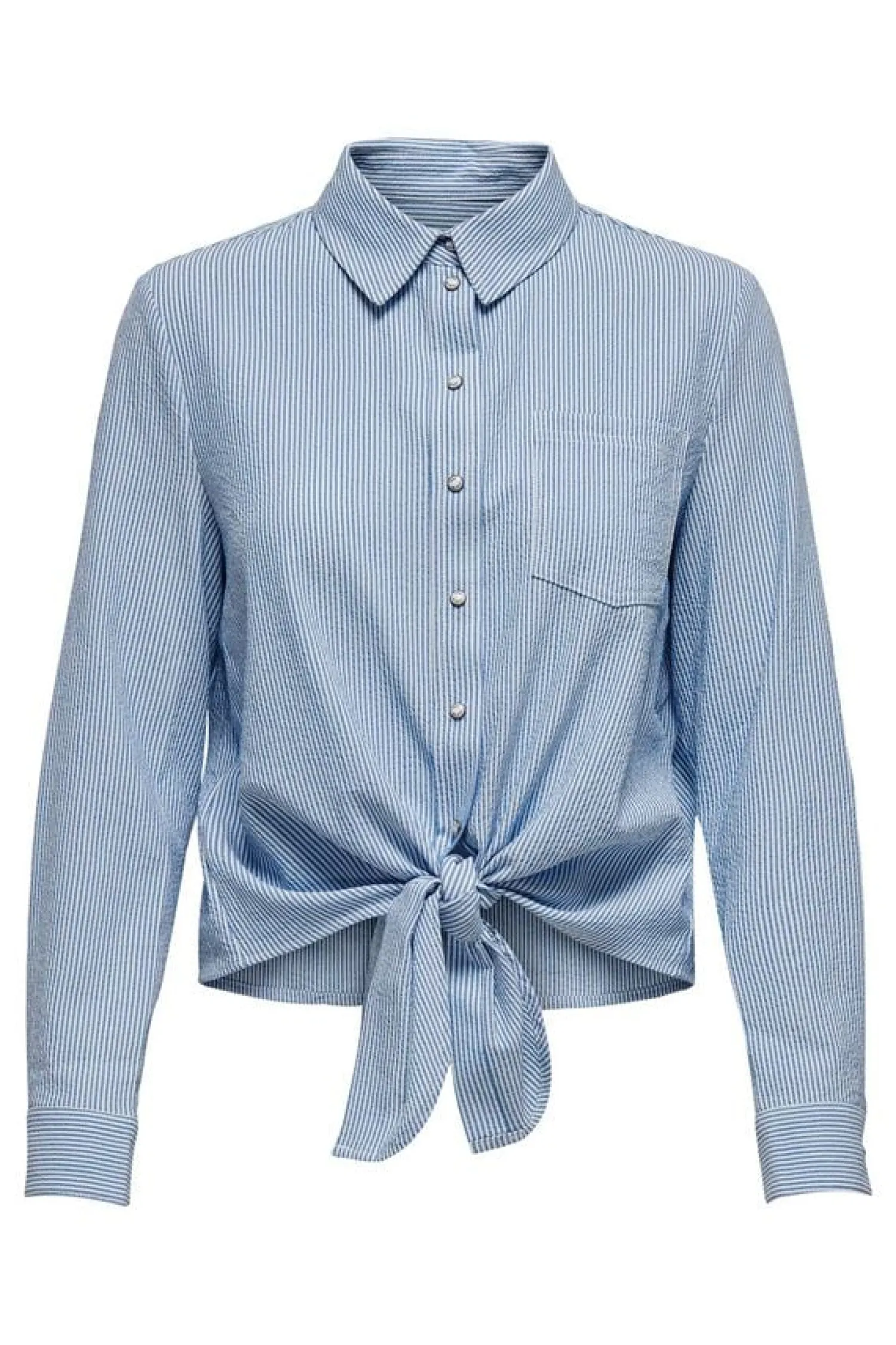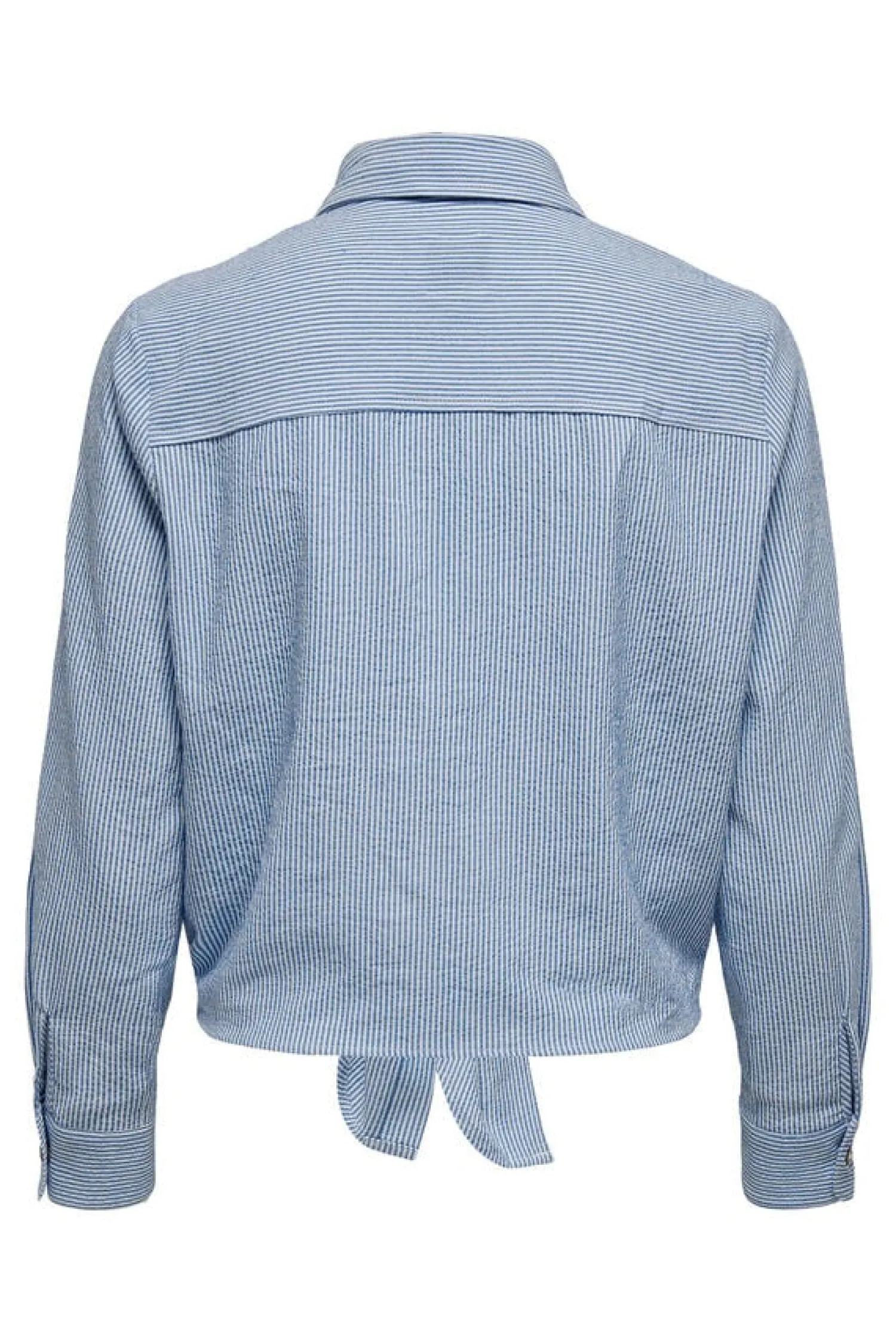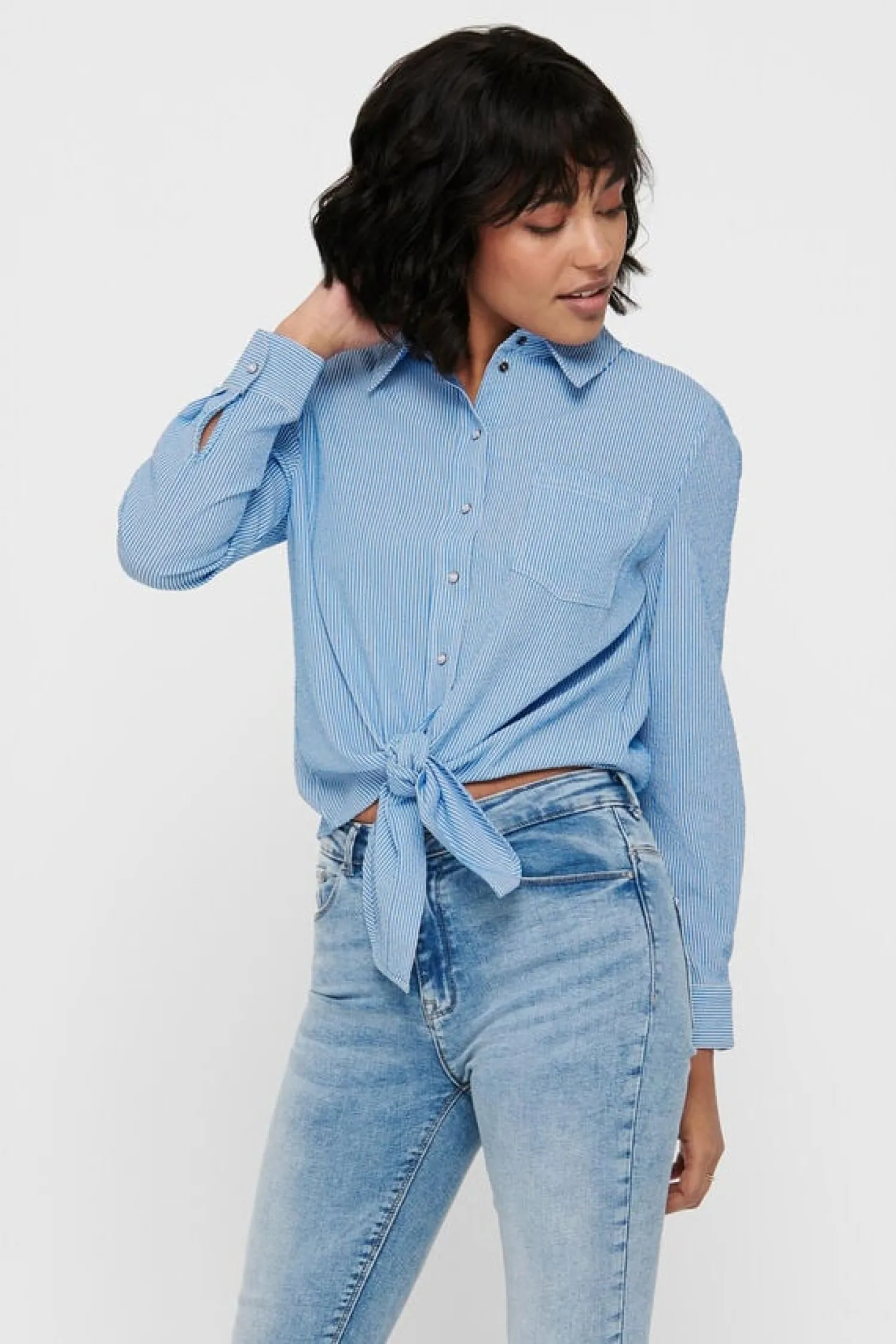 Camisa De Riscas Com Lacada No Cos A Frente. Fecho A Frente Com Botoes De Broches De Pressao E Um Bolso A Frente.