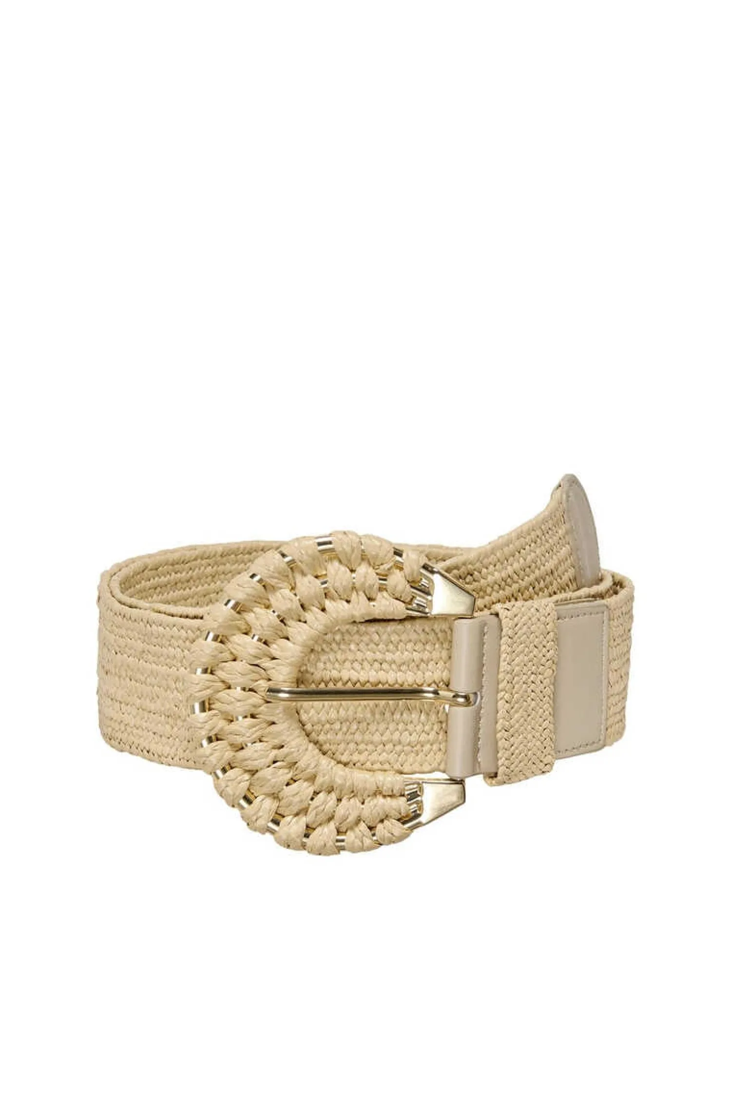 Cinto Trancado Com Fivela Redonda Com Detalhes Dourados.