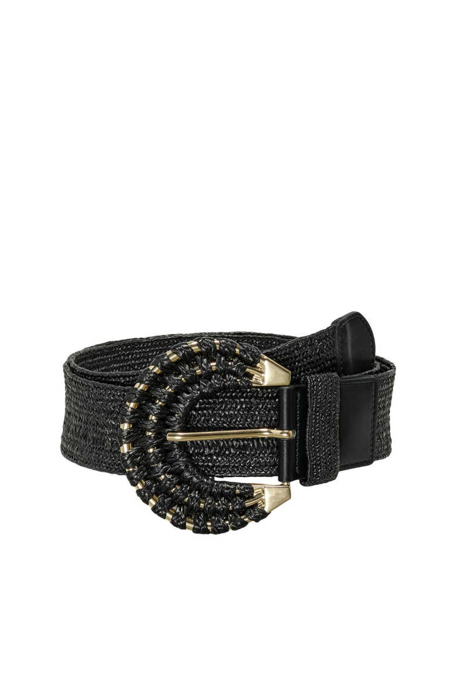 Cinto Trancado Com Fivela Redonda Com Detalhes Dourados.