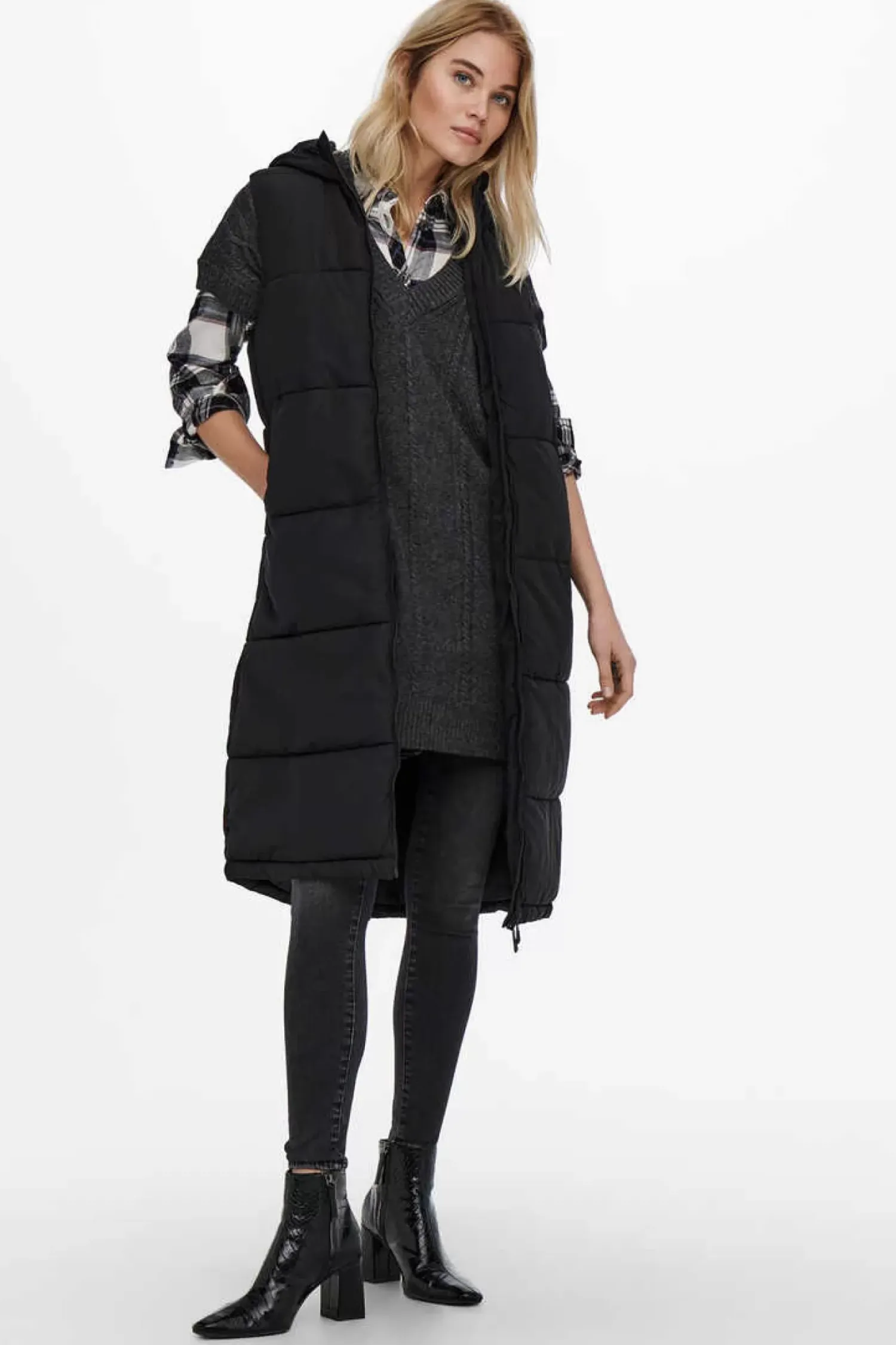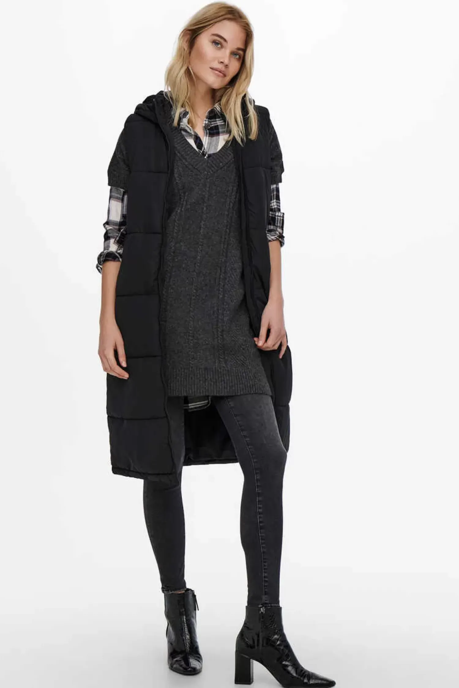 Camisola De Malha Com Decote Em Bico, Mangas Compridas E Tecido Elastico.