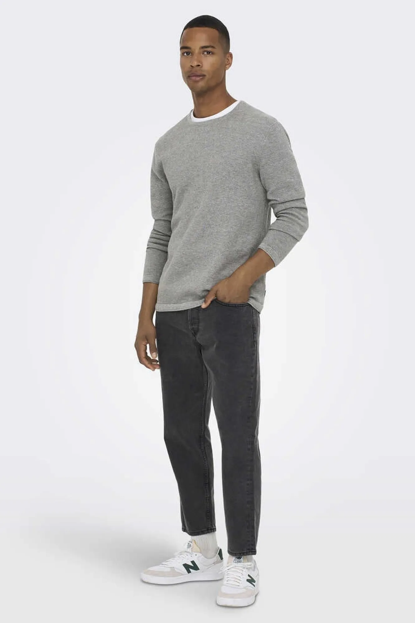 Camisola Com Gola Caixa, Malha Leve E Manga Comprida. Regular Fit, Fabricado Com Materiais Reciclados.
